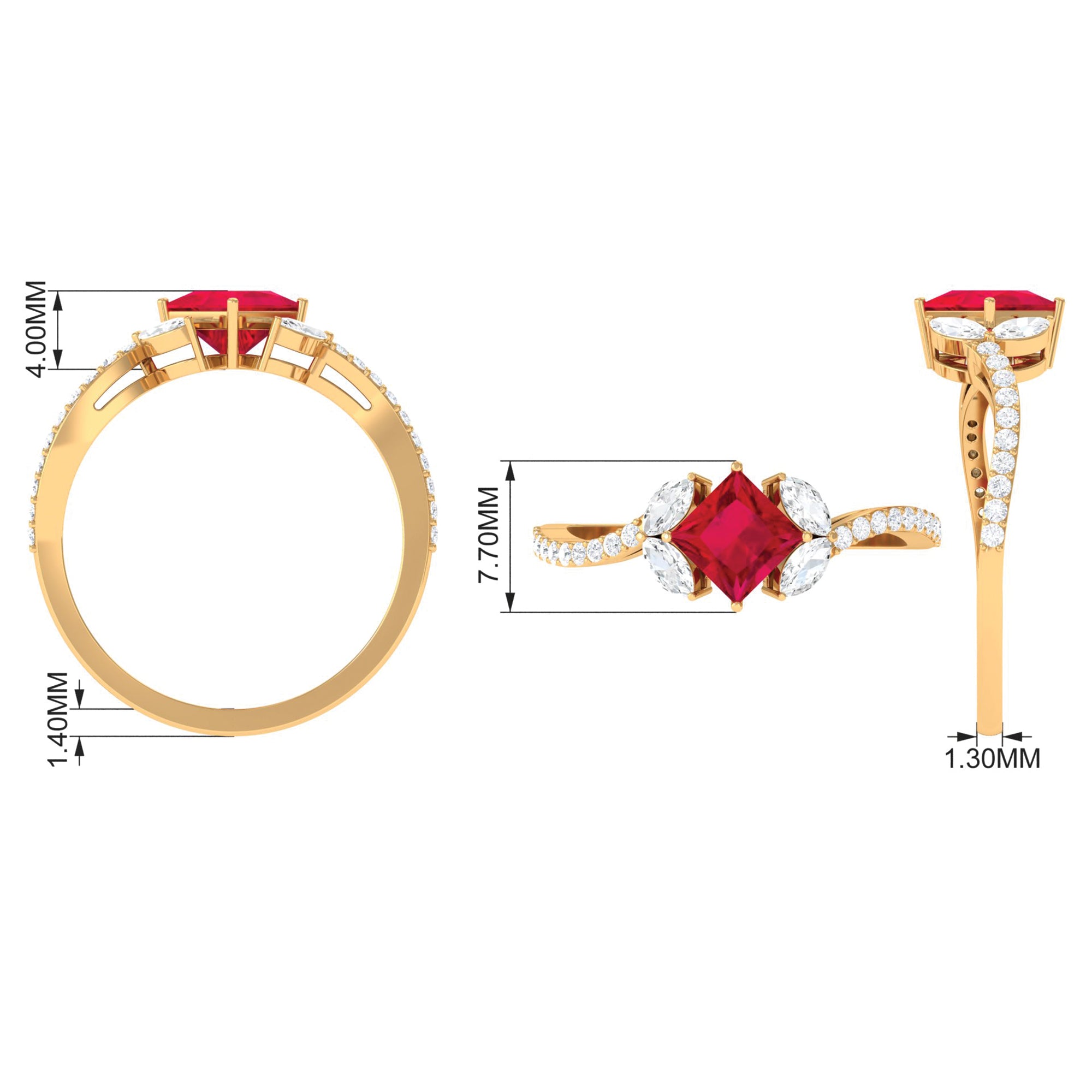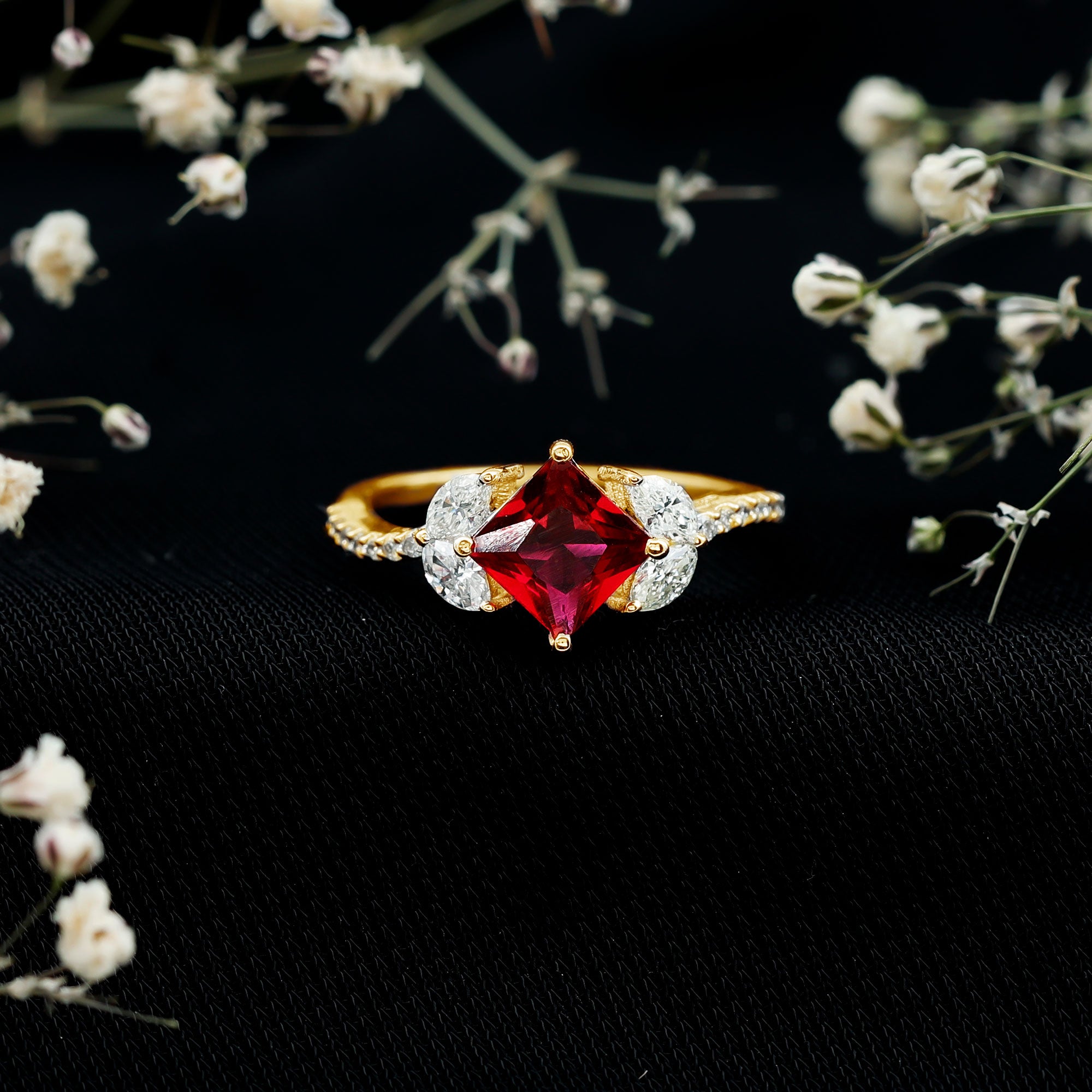 Solitaire Rings: Classic and timeless, lab-created ruby solitaire rings showcase a single, brilliant synthetic ruby. While it is a timeless and classic symbol of love for any bride-to-be, it also shows great style. A round, pear, marquise, or princess cut lab-grown ruby looks so pretty and fascinating. Emerald-cut ruby rings are also one the best pieces of jewelry with appealing red hue.