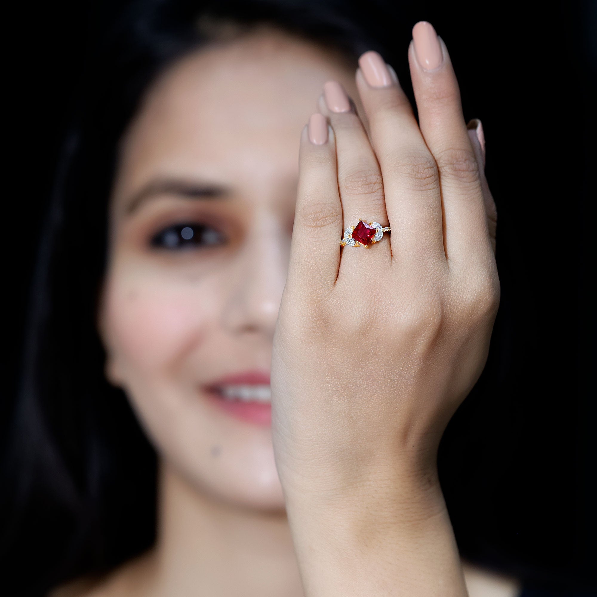 Heart Rings: Romantic lab-grown ruby rings shaped into heart designs. When you want to take your relationship to the next level consider a heart shape lab grown ruby ring