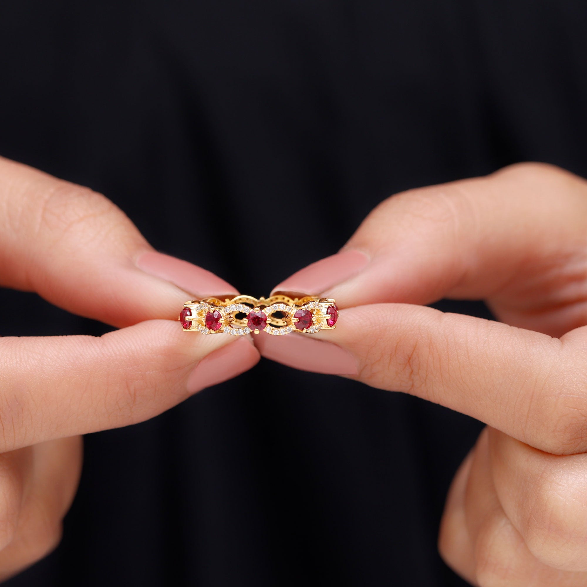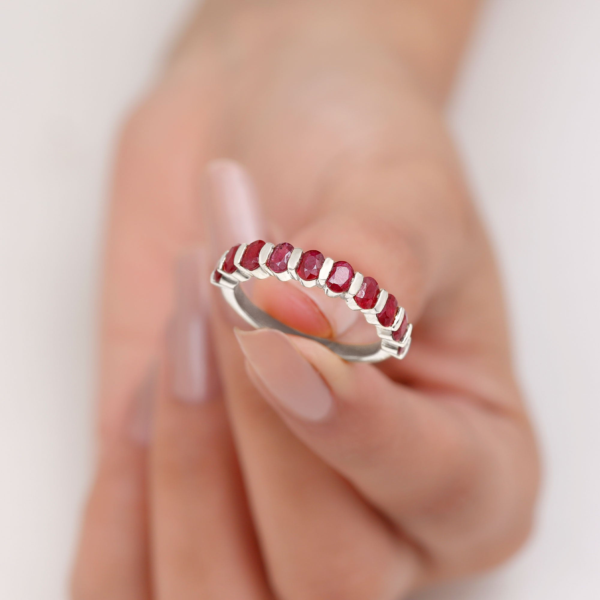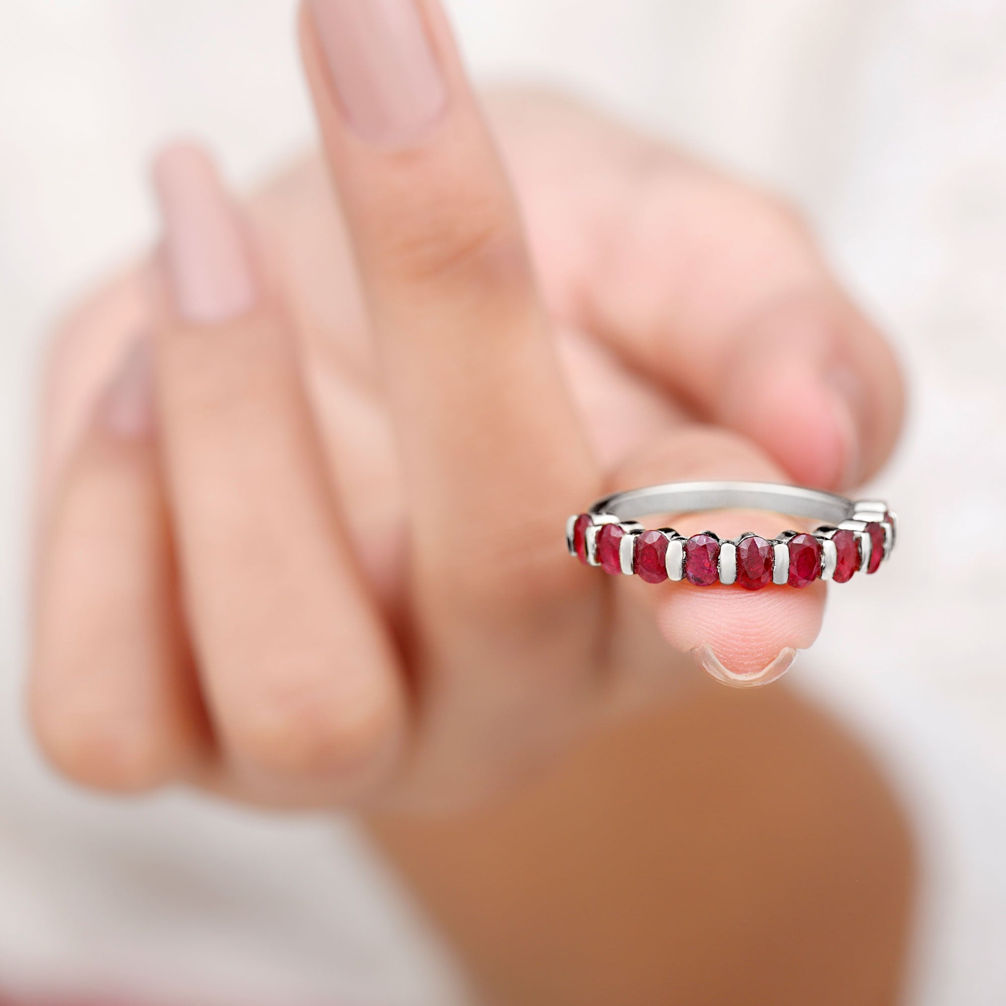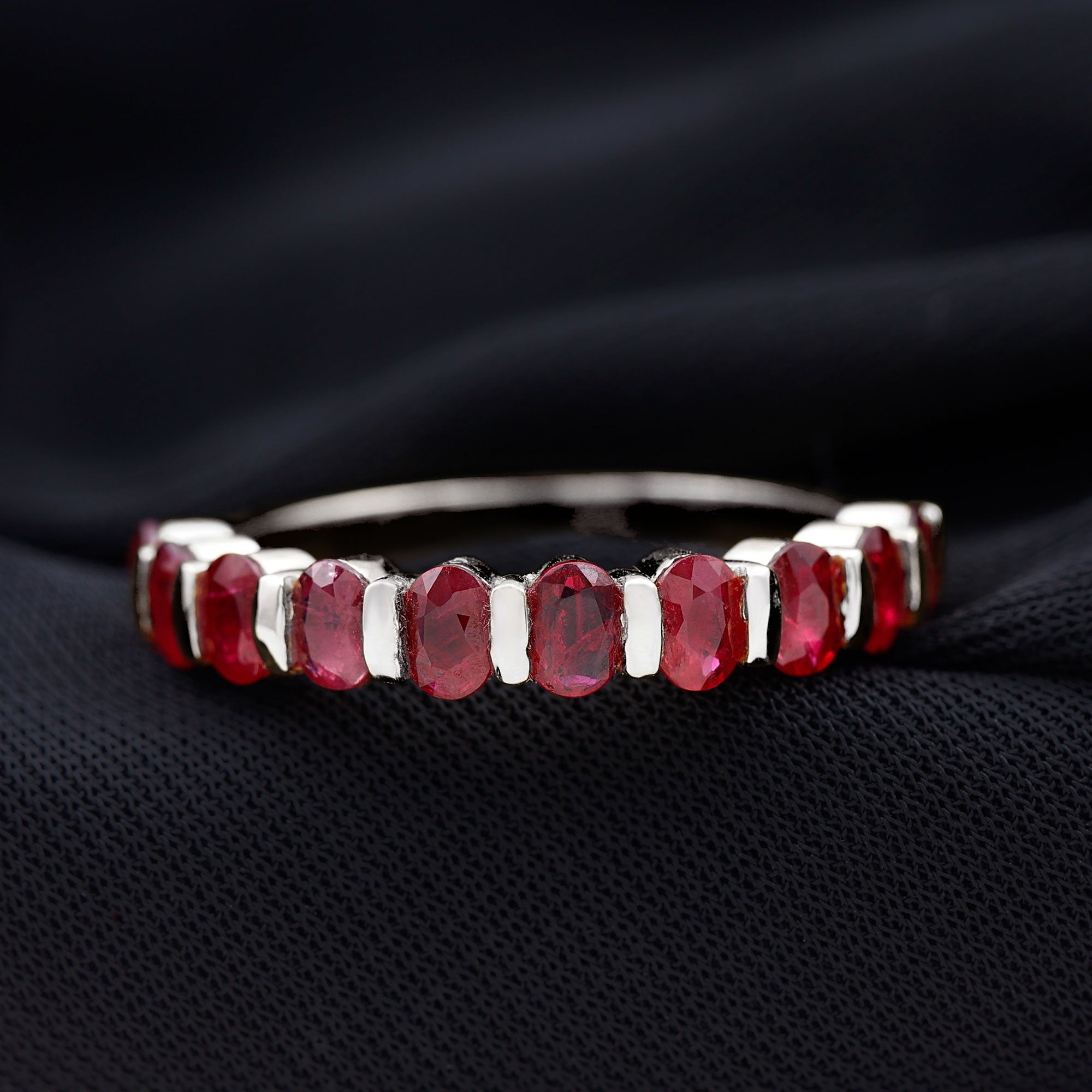1. Eternity Rings: Eternity rings are complete circles of precious metals and lab-grown rubies without any endpoints. Eternity rings are popular choices for major milestones like anniversaries and weddings. the presence of lab-grown ruby all the way round to synthetic ruby ring with identical shape looks appealing.