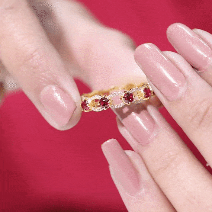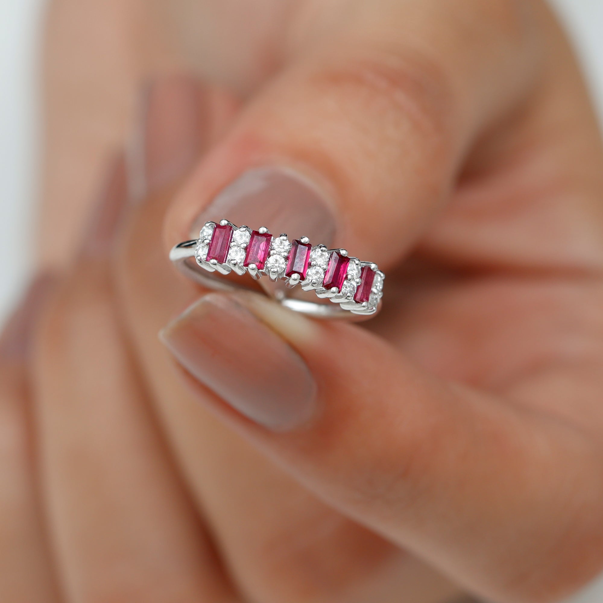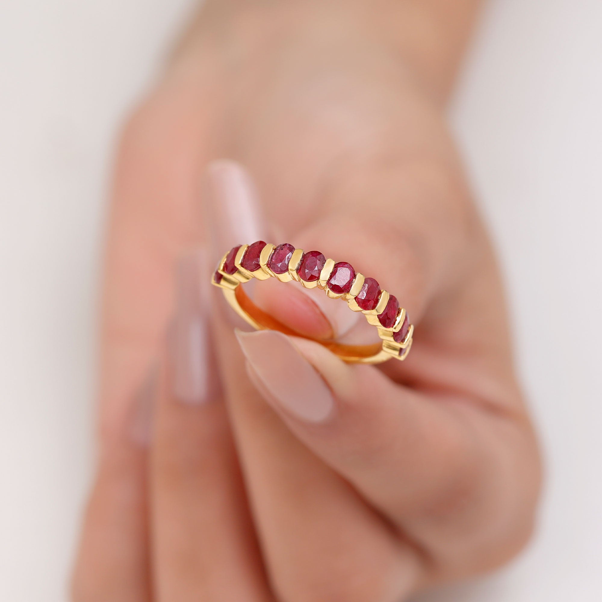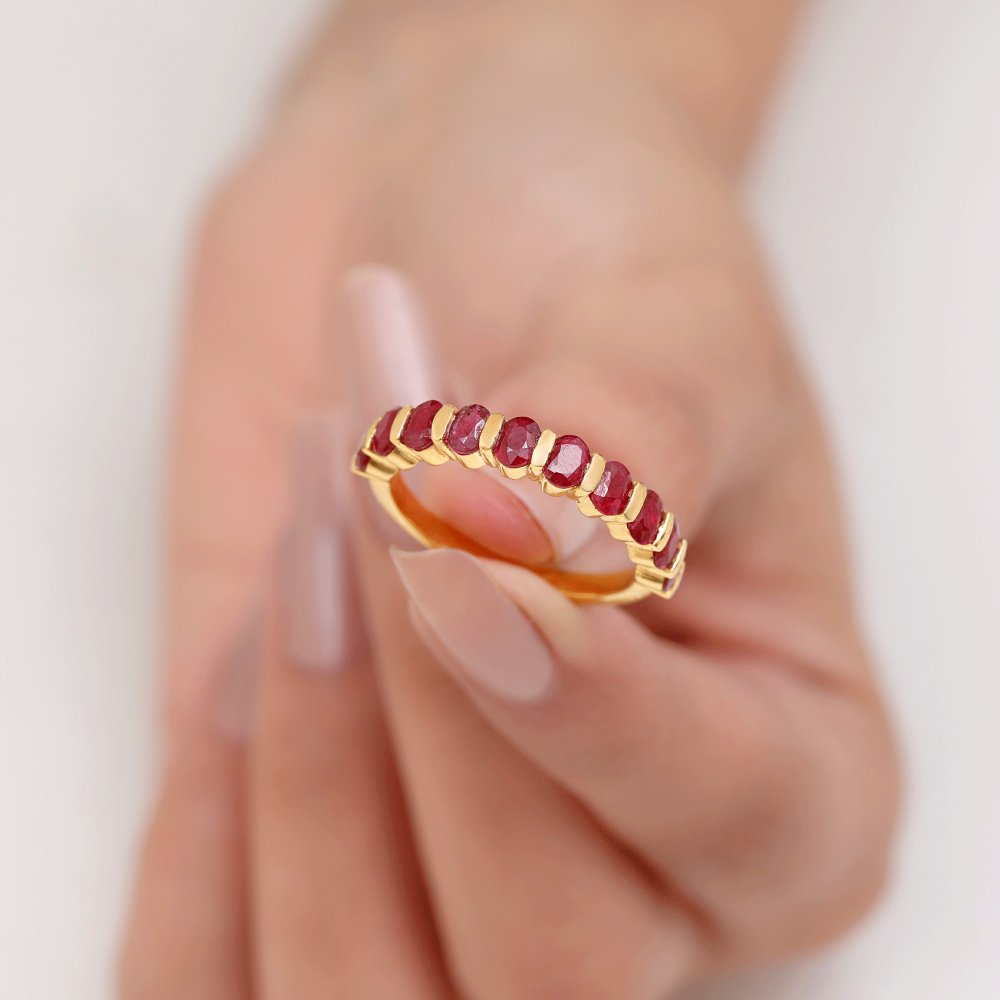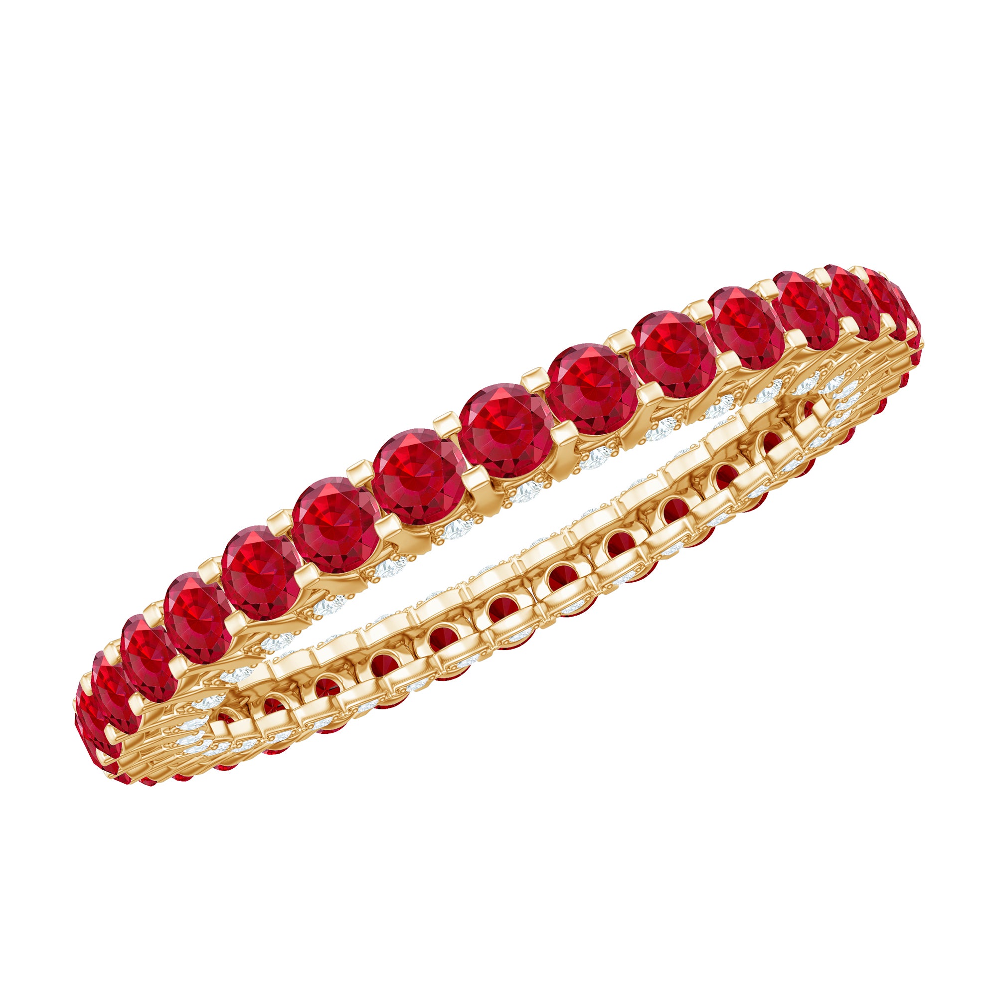 1. Eternity Rings: Eternity rings are complete circles of precious metals and lab-grown rubies without any endpoints. Eternity rings are popular choices for major milestones like anniversaries and weddings. the presence of lab-grown ruby all the way round to synthetic ruby ring with identical shape looks appealing.