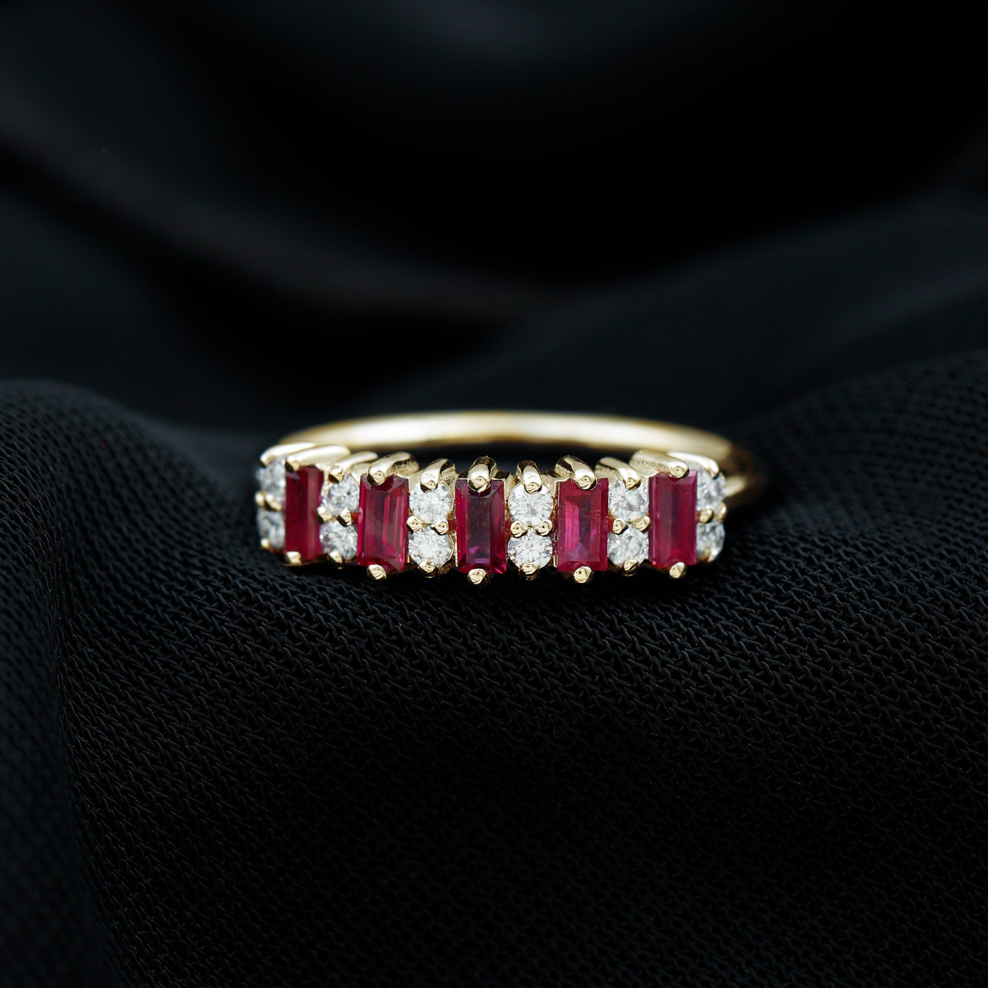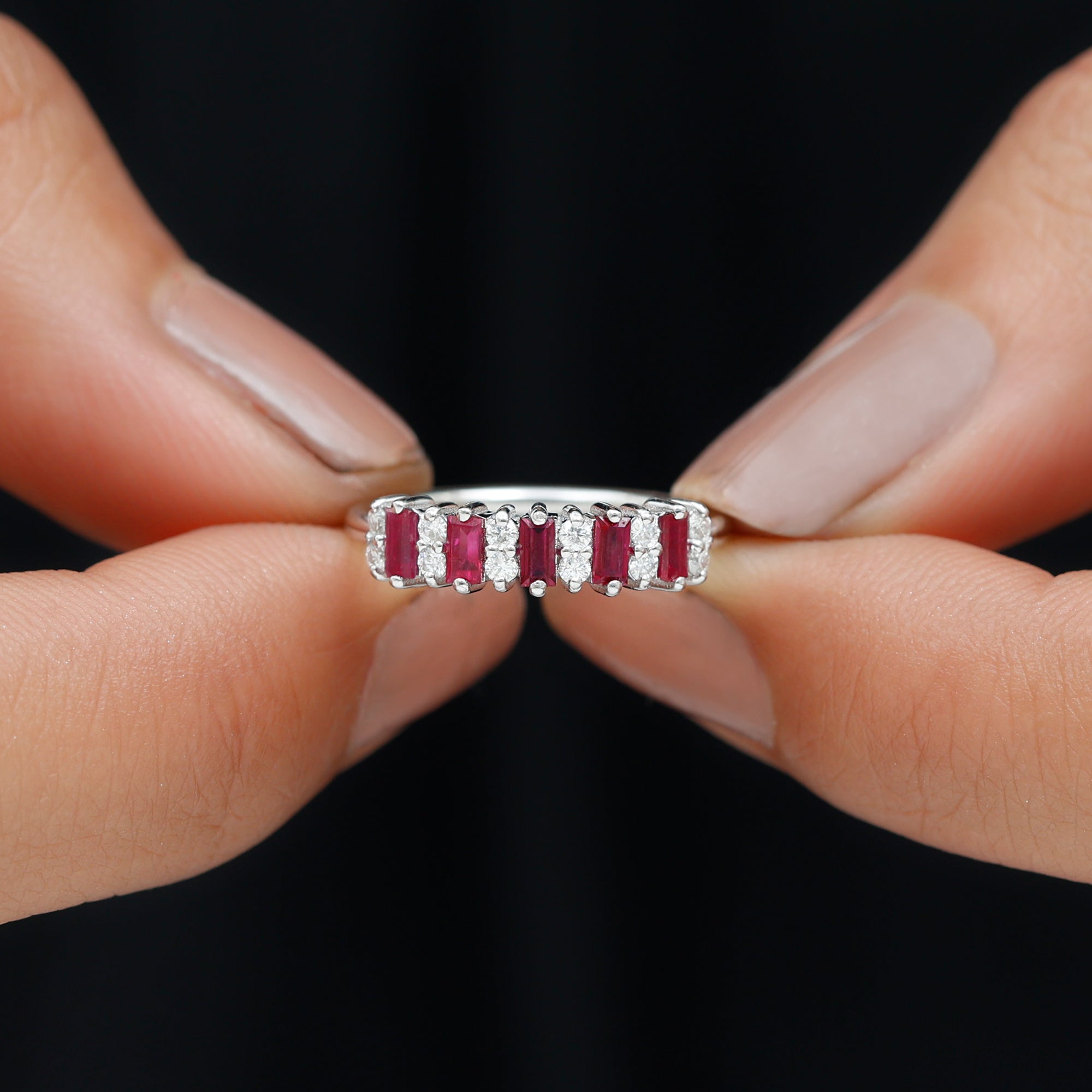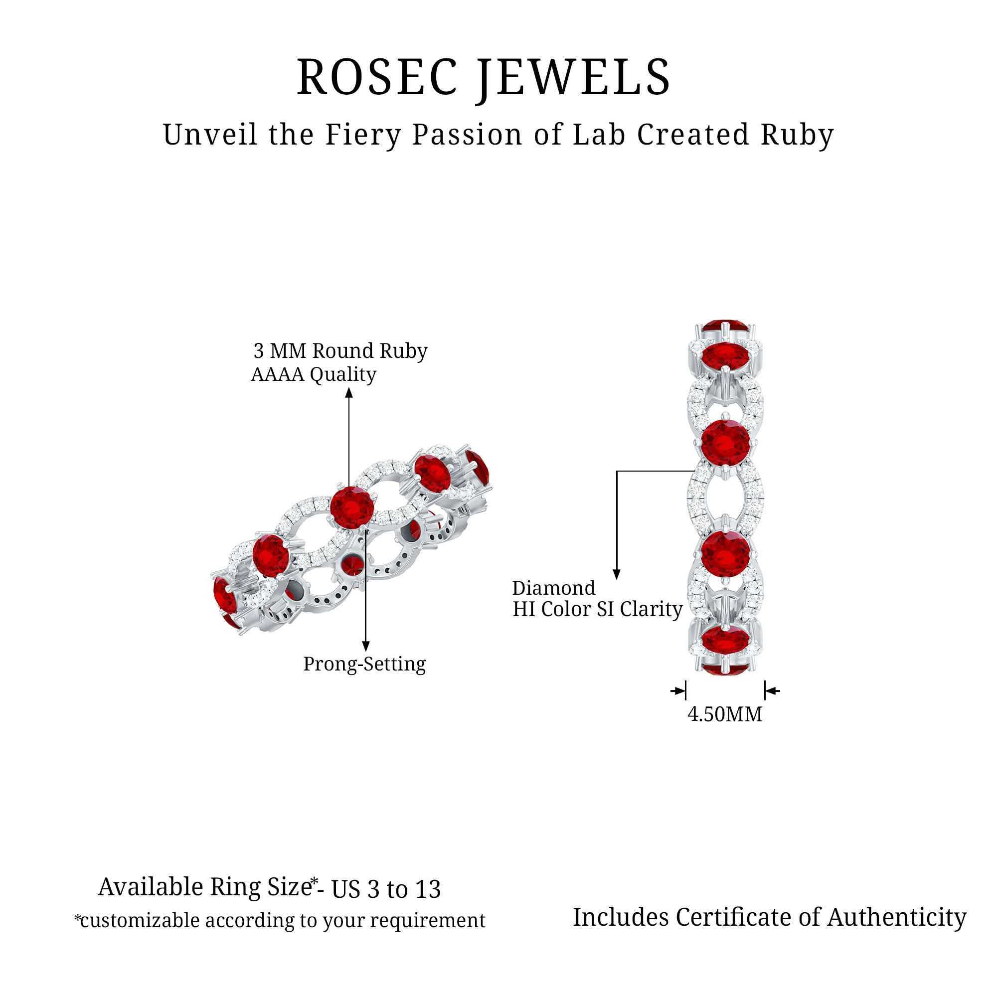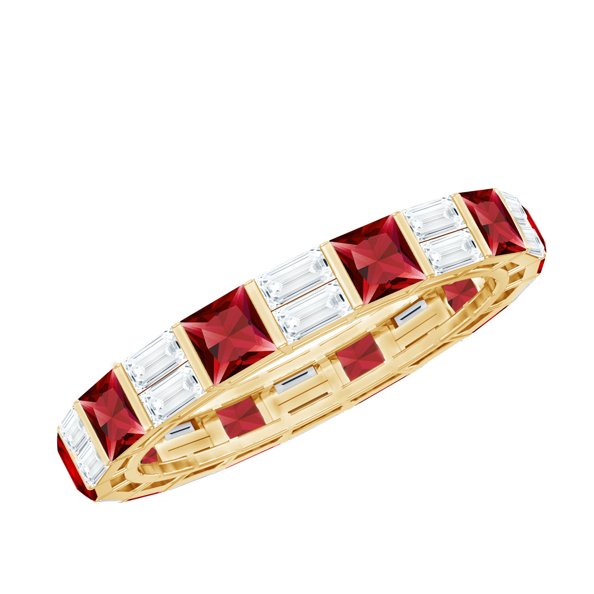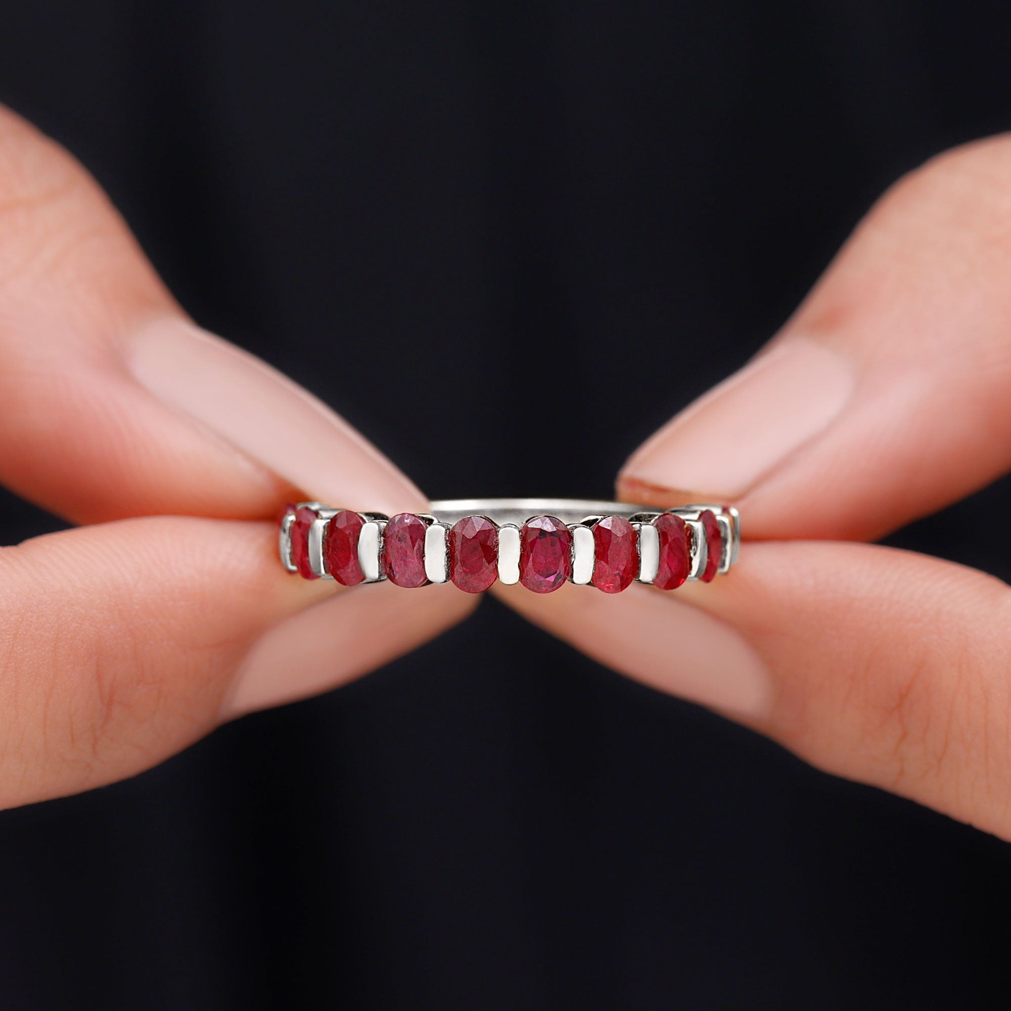 1. Eternity Rings: Eternity rings are complete circles of precious metals and lab-grown rubies without any endpoints. Eternity rings are popular choices for major milestones like anniversaries and weddings. the presence of lab-grown ruby all the way round to synthetic ruby ring with identical shape looks appealing.