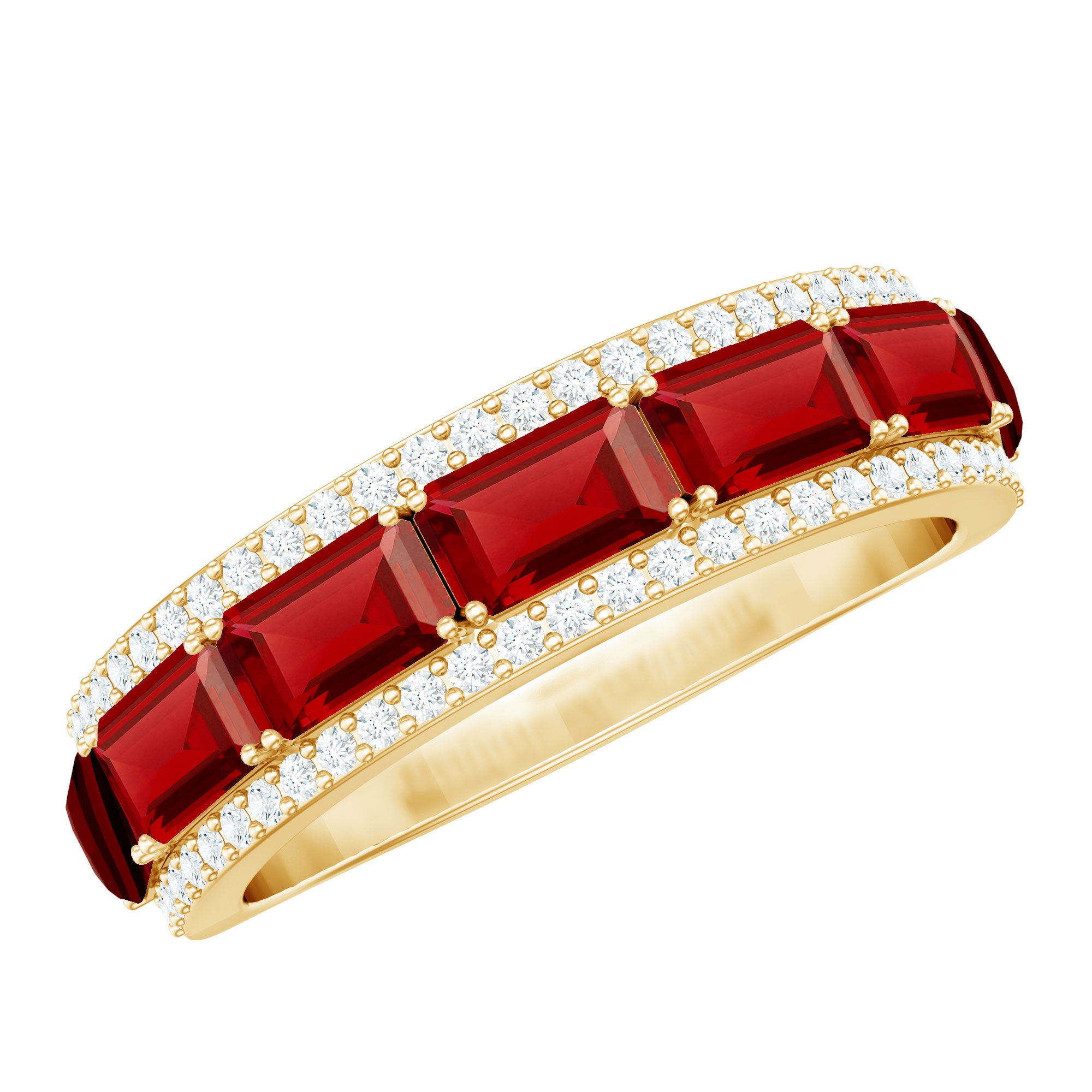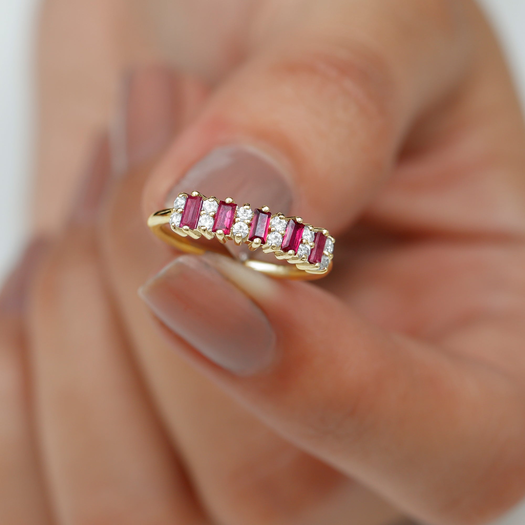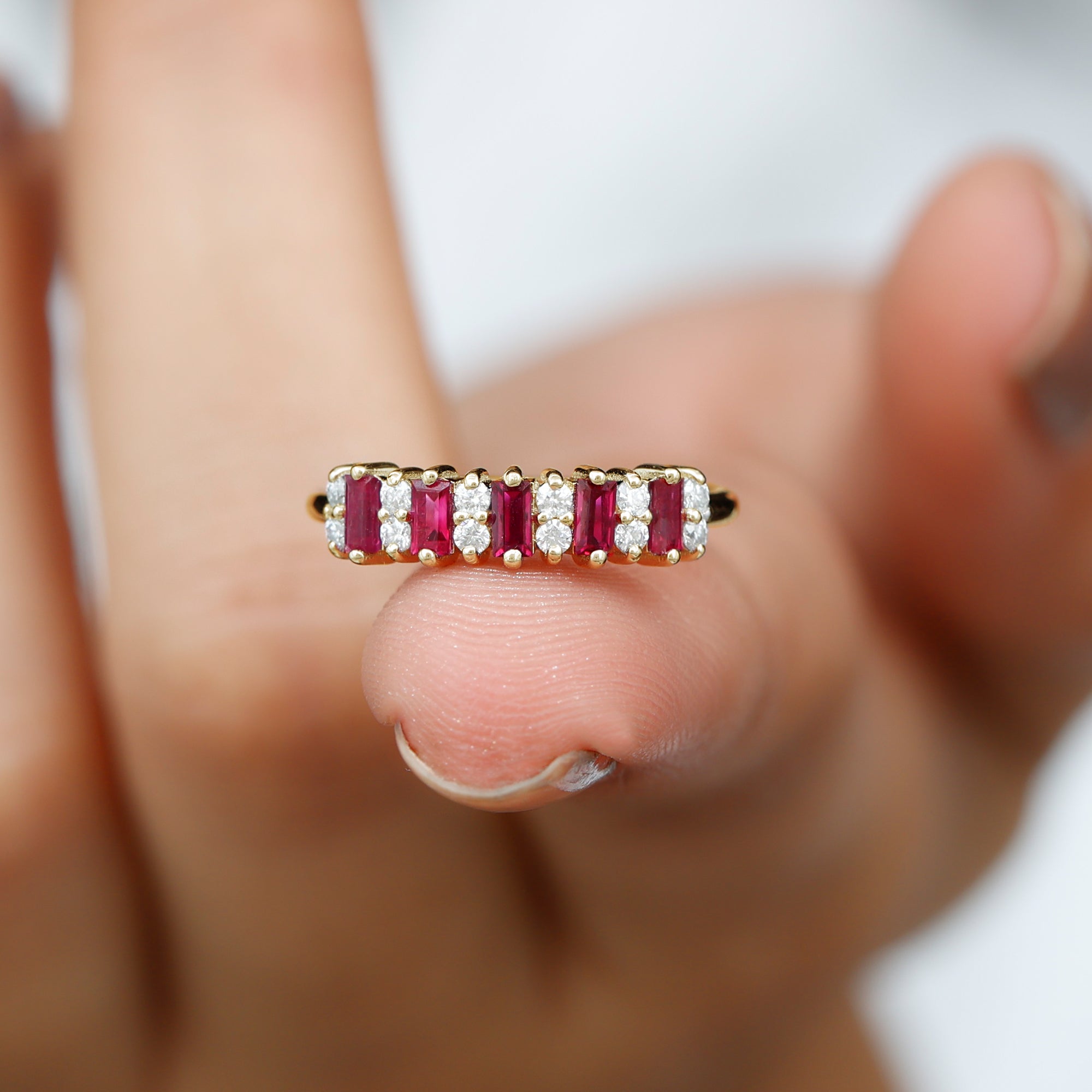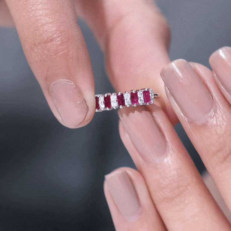 2. Stackable Rings: Mix and match lab-grown ruby rings to create a personalized and versatile look. The best way to make your ring stack on your own is by adding a touch of color with gemstone stacking rings. Available in vibrant hues of red, a lot of personality to any ring stack. Well, who doesn’t love the stacked wedding ring with romantic rubies over it?