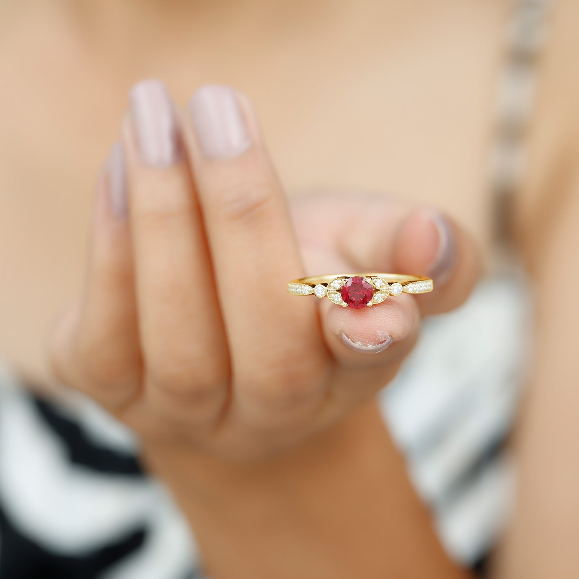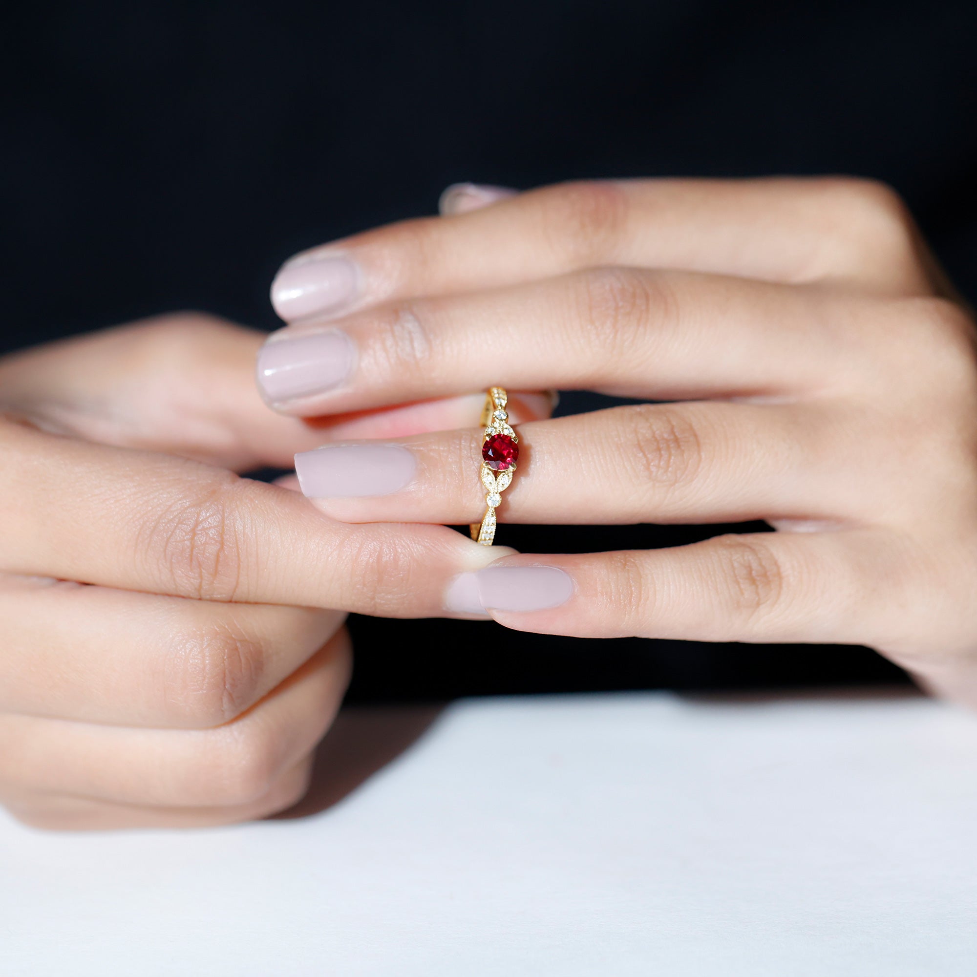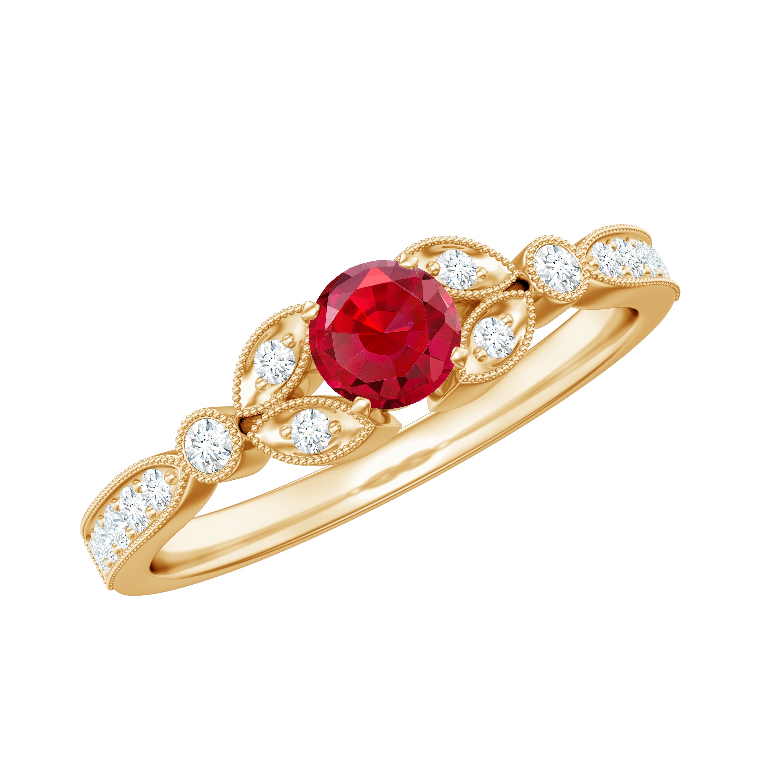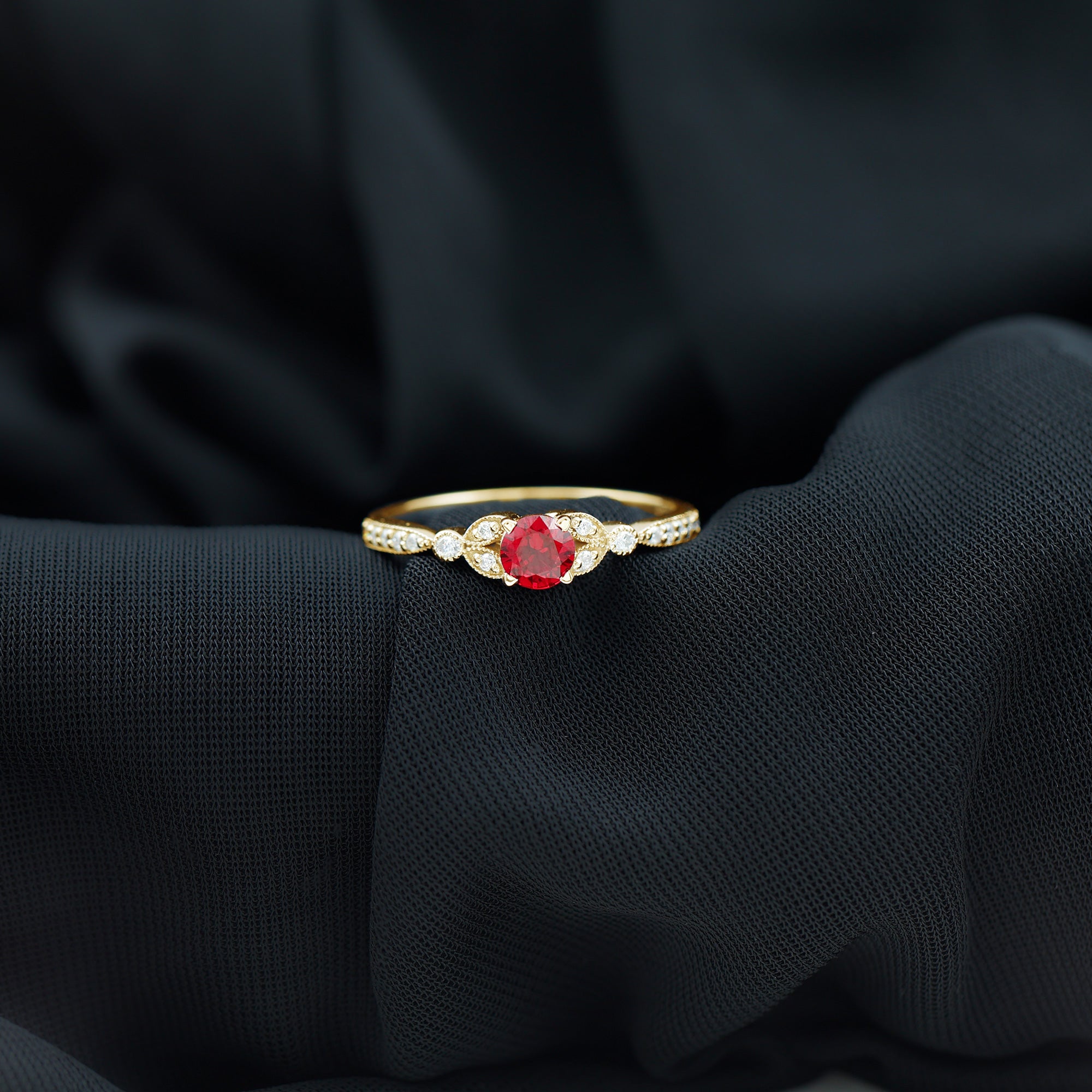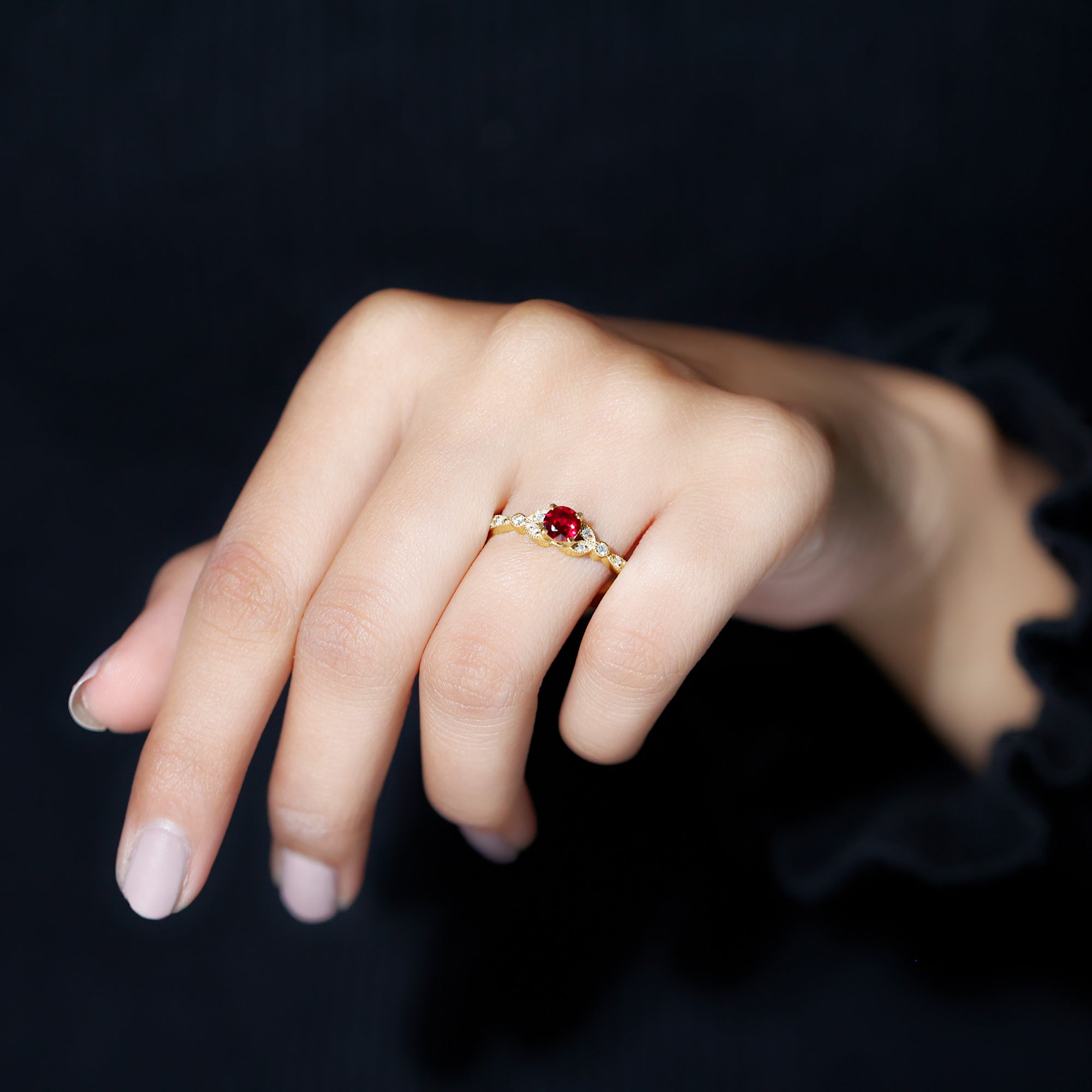 4. Vintage Inspired Rings: Capture the romance of bygone eras with intricate designs featuring lab-grown rubies. In the selection of vintage-style rings, you will find designs with milgrain detailing and filigree. These often include ancient flower motifs and geometric patterns. These features enhance the beauty of lab-grown rubies.