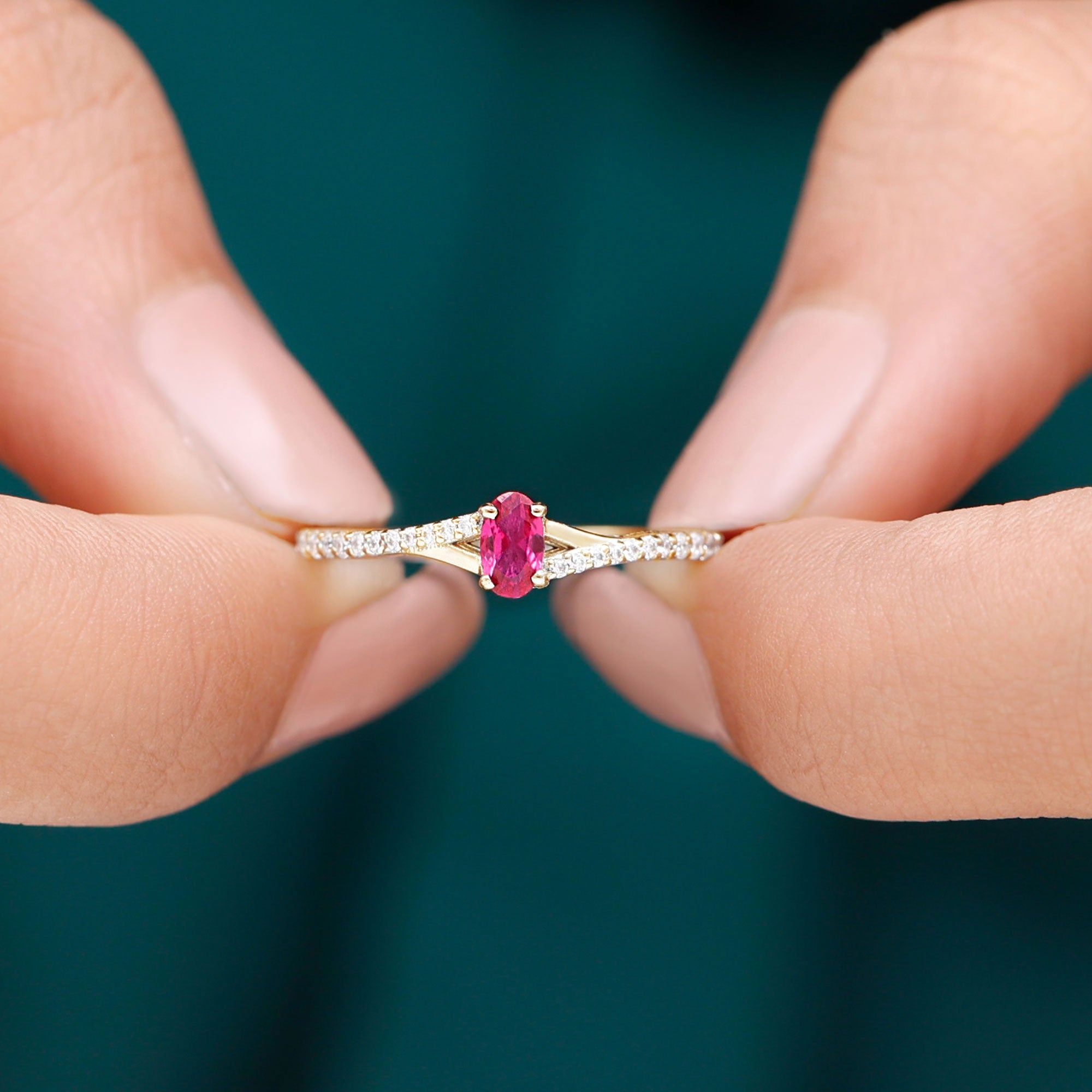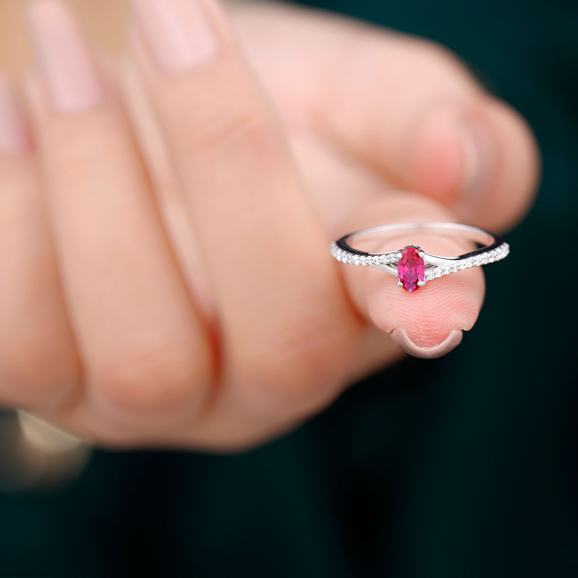 1. Two Stone Rings: Represent your union with dual lab-created rubies. People also call a two-stone ring ‘toi et moi’, which means ‘you and me’ in French which represents two souls. These rings symbolize two gems sitting together close to each other just like two souls becoming one. At Rosec Jewels, we have sustainable ruby jewelry especially rings in various gem shapes, colors, and sizes.