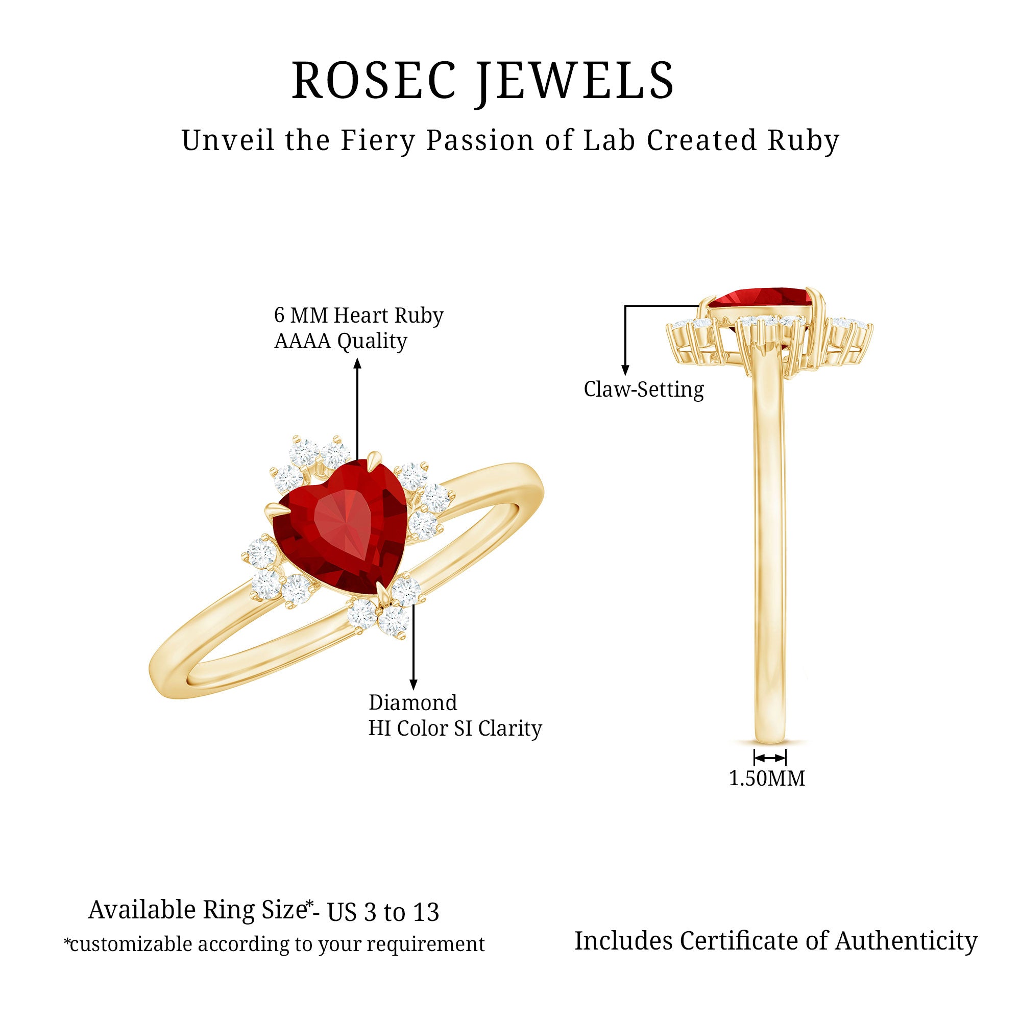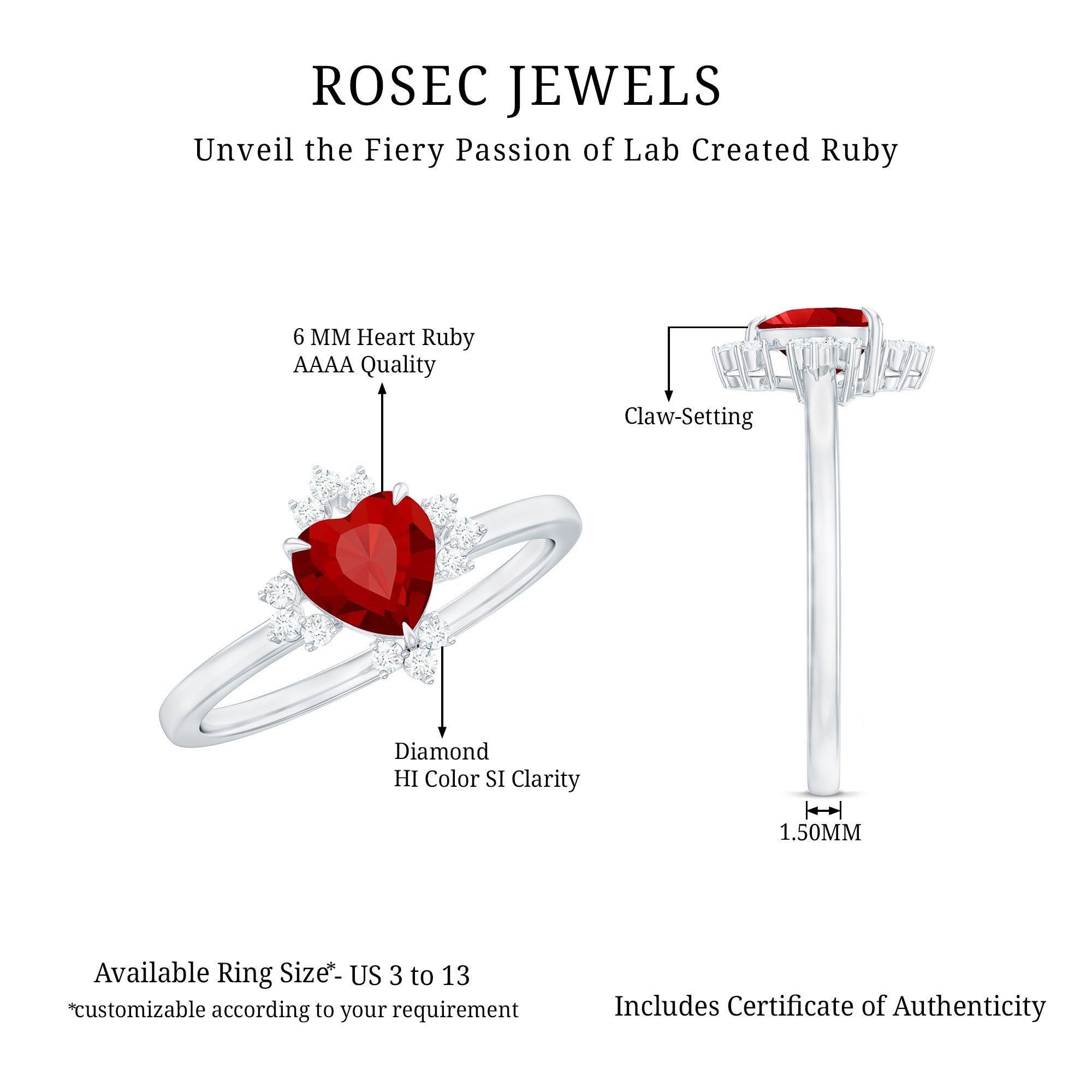 Heart Rings: Romantic lab-grown ruby rings shaped into heart designs. When you want to take your relationship to the next level consider a heart shape lab grown ruby ring