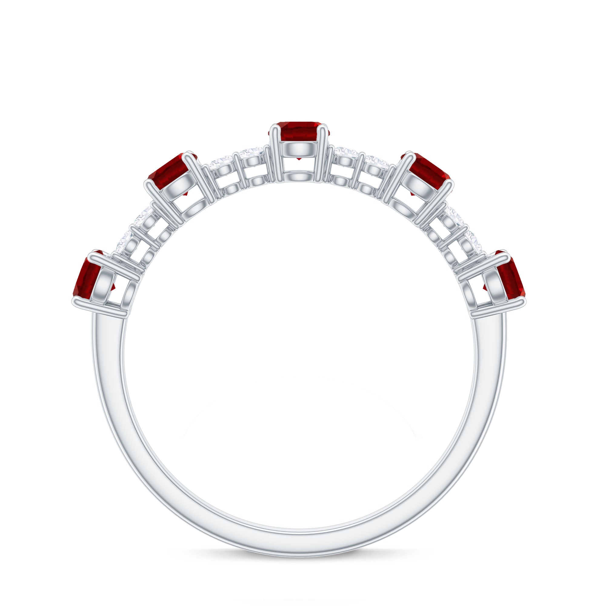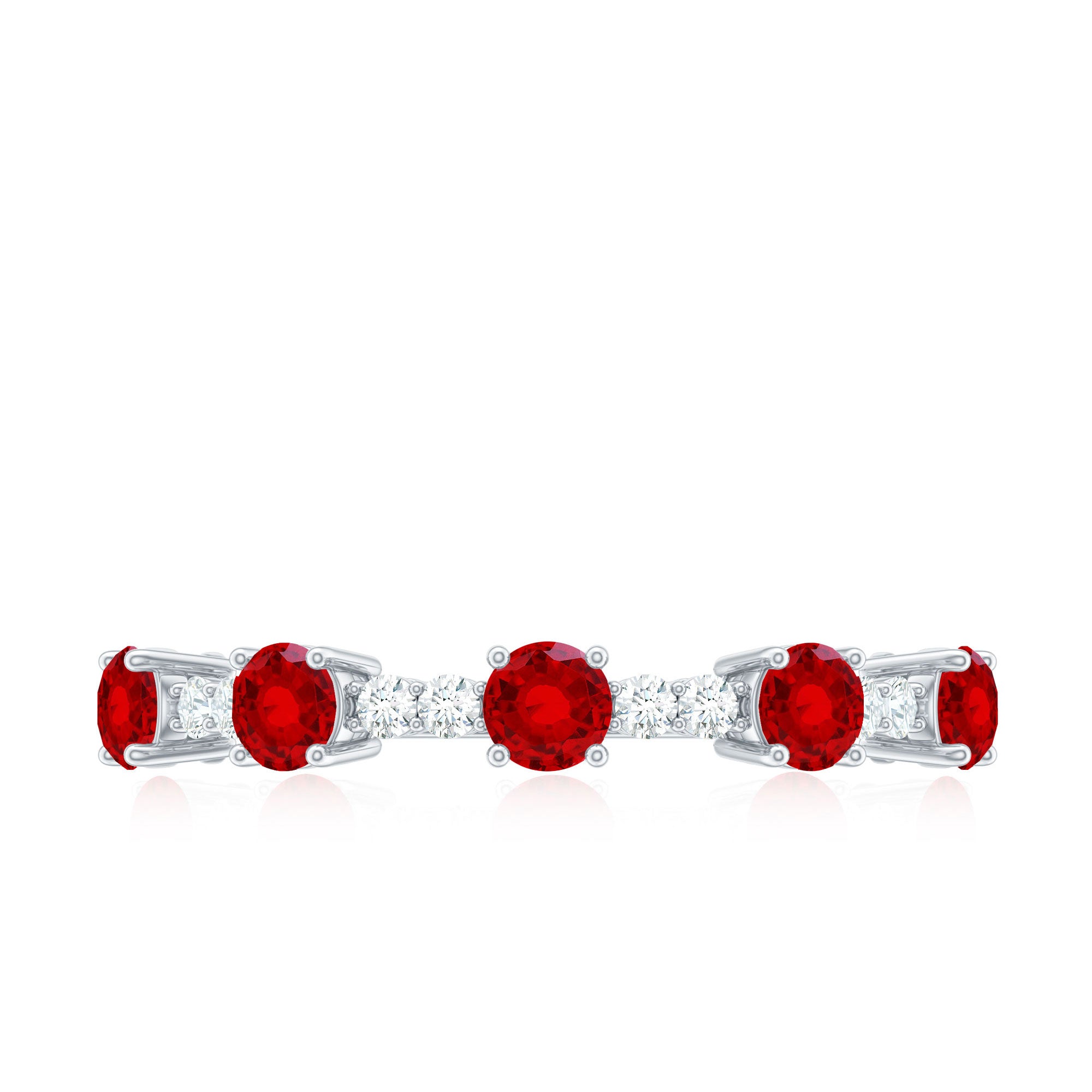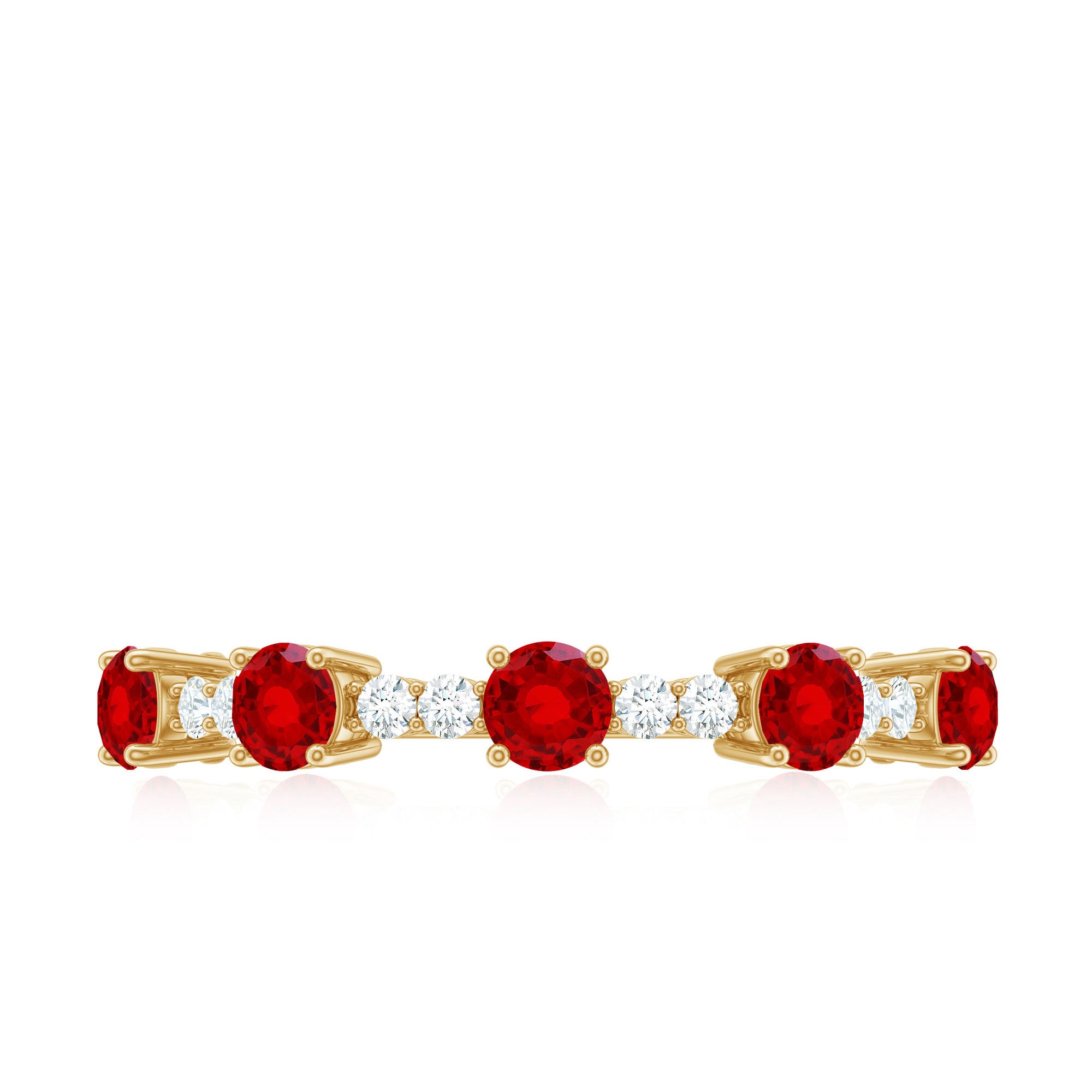 Eternity Rings: Eternity rings are complete circles of precious metals and lab-grown rubies without any endpoints. Eternity rings are popular choices for major milestones like anniversaries and weddings. the presence of lab-grown ruby all the way round to synthetic ruby ring with identical shape looks appealing.