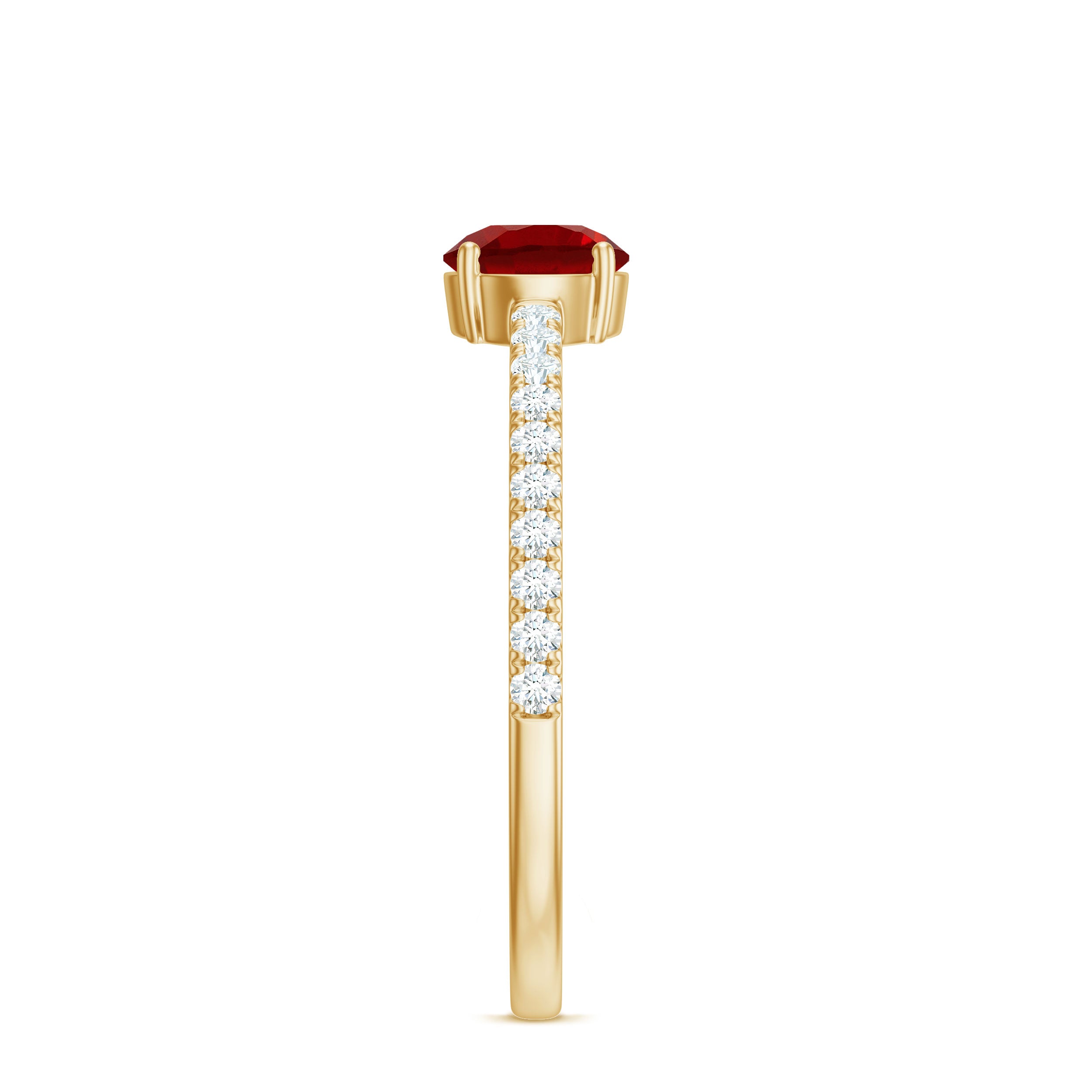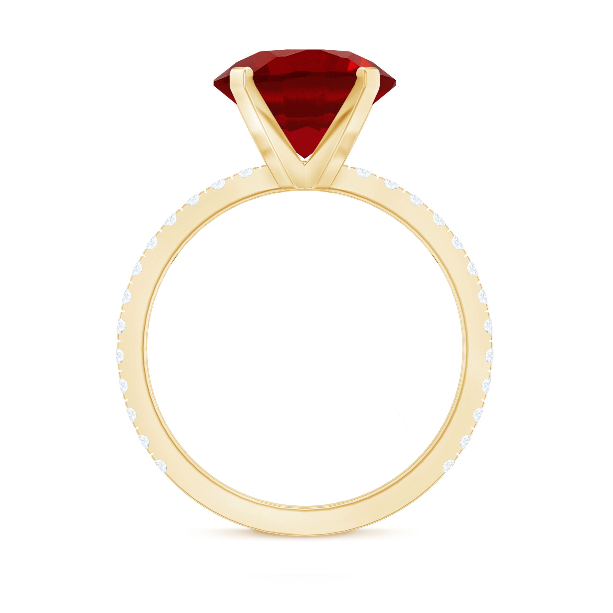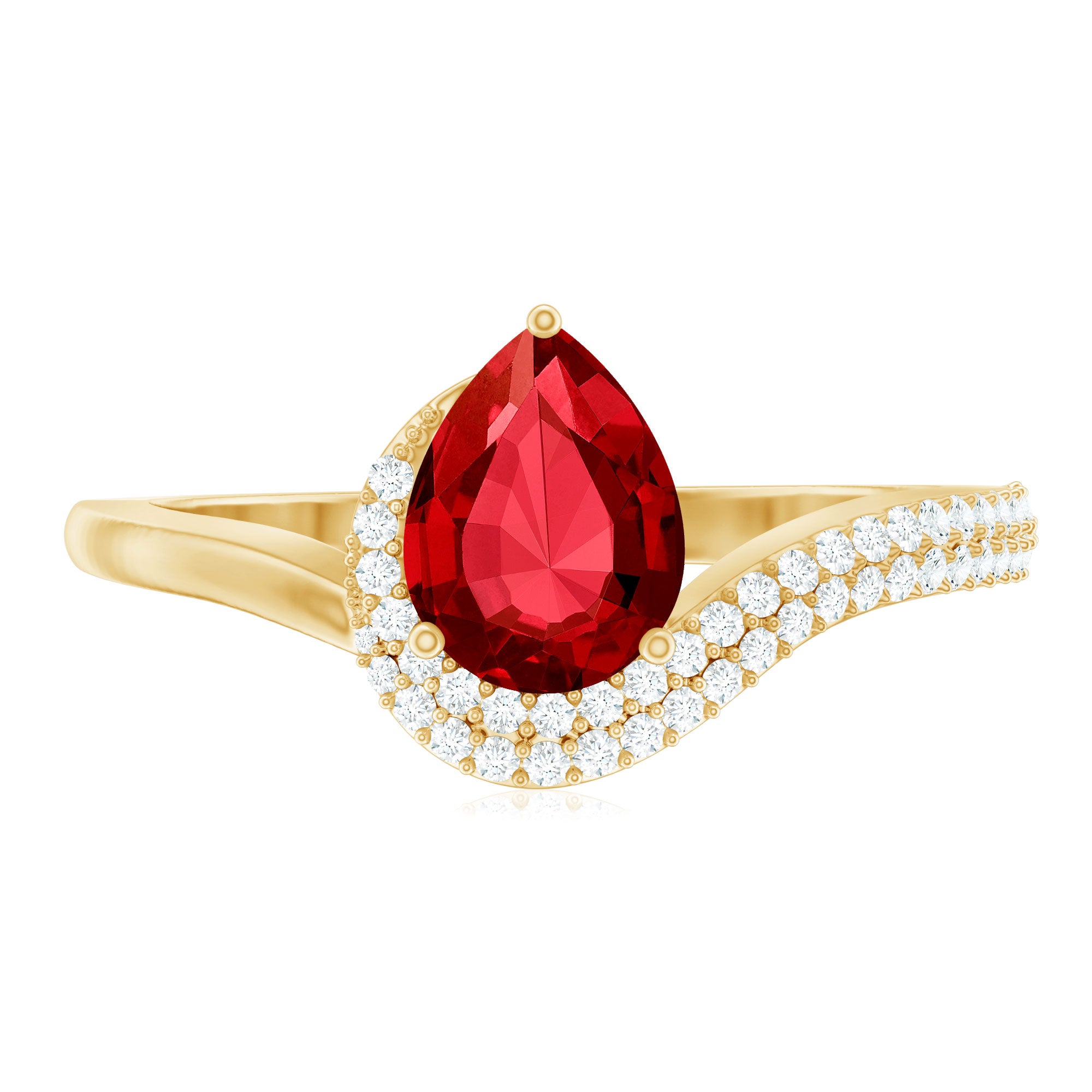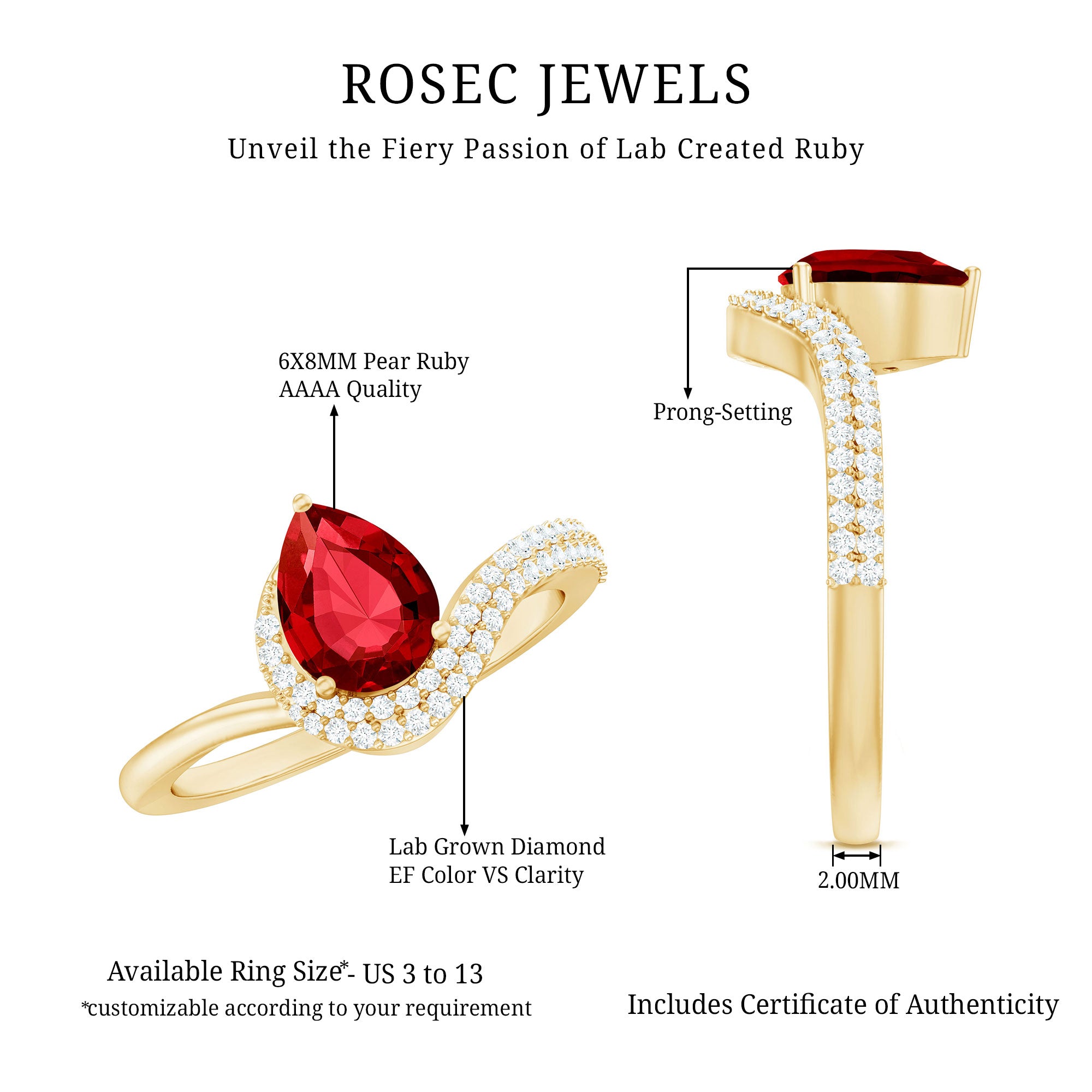 Solitaire Rings: Classic and timeless, lab-created ruby solitaire rings showcase a single, brilliant synthetic ruby. While it is a timeless and classic symbol of love for any bride-to-be, it also shows great style. A round, pear, marquise, or princess cut lab-grown ruby looks so pretty and fascinating. Emerald-cut ruby rings are also one the best pieces of jewelry with appealing red hue.