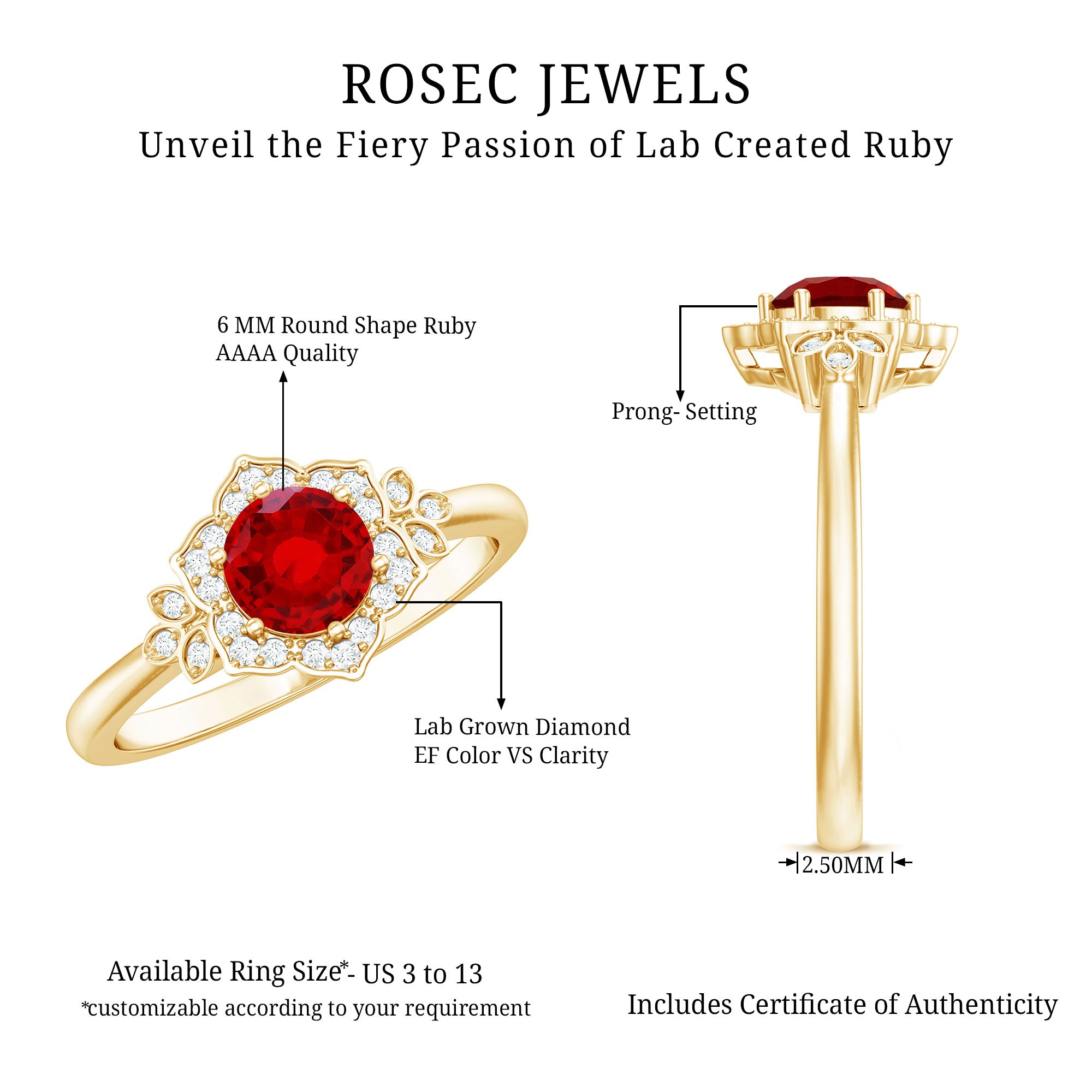Vintage Inspired Rings: Capture the romance of bygone eras with intricate designs featuring lab-grown rubies. In the selection of vintage-style rings, you will find designs with milgrain detailing and filigree. These often include ancient flower motifs and geometric patterns. These features enhance the beauty of lab-grown rubies.