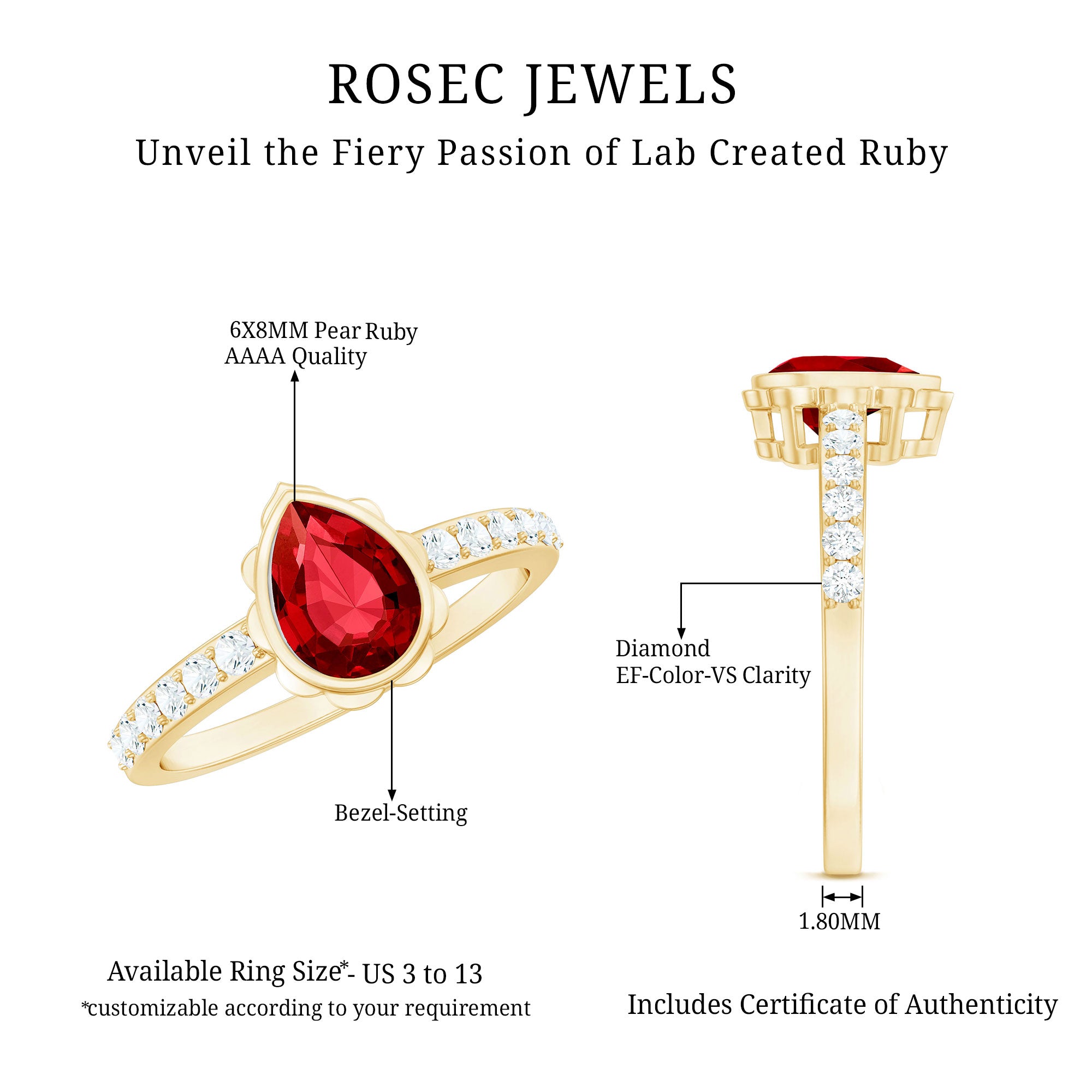 Lab-grown ruby rings available online at Rosec Jewels are high quality and come with a certificate. Explore the unique designs of simulated ruby rings online at Rosec Jewels. Our lab-grown ruby prices are affordable with premium metals like white gold, yellow gold, and sterling silver. Read more about designs in below sections: