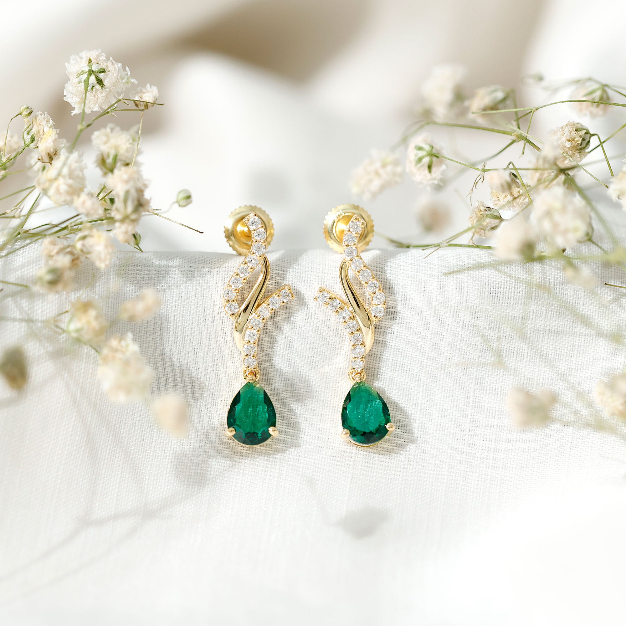 These catchy earrings highlight not only facial features, but also make the cheek bone and neckline shine with grace. Drop like hanging gemstones below the ear lobe make a fixed design. While dangle lab grown gemstone earrings add an appealing and radiant look to the overall style with their movement.