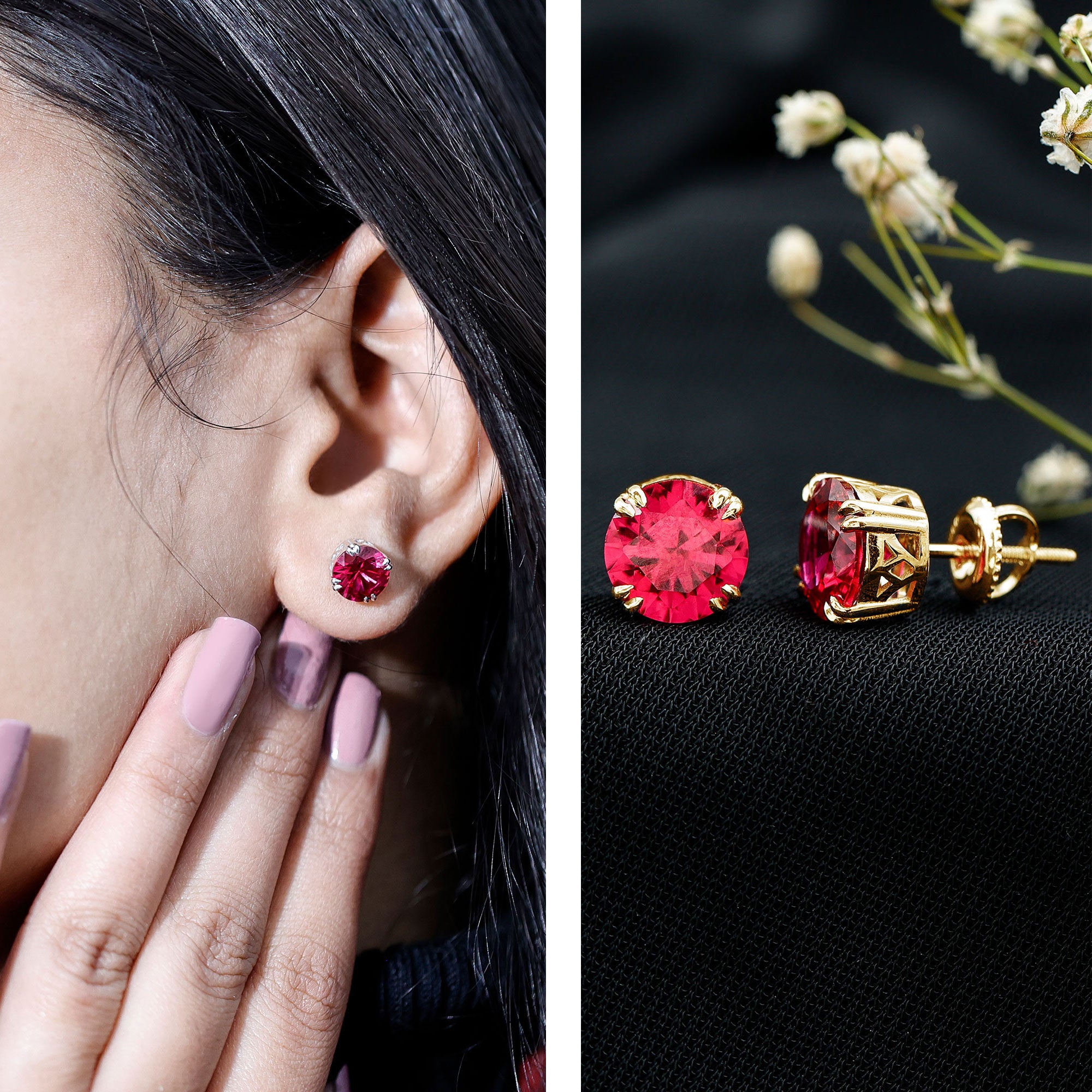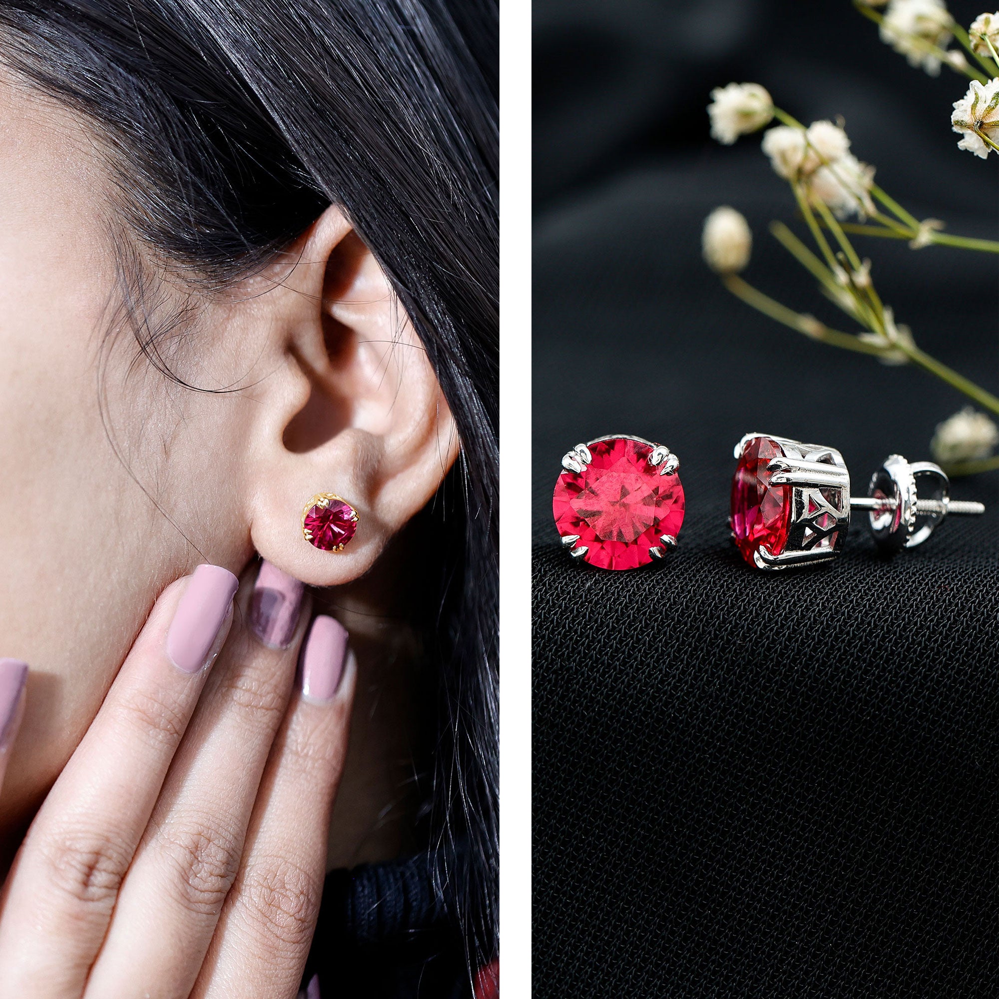 Stud Lab created Gemstone Earrings Simple, beautiful and never out of style. These earrings sit close to the earlobe and gemstone shine is the heart of this design. Perfect for every wear, whether you choose it for casual outing or formal meetings.