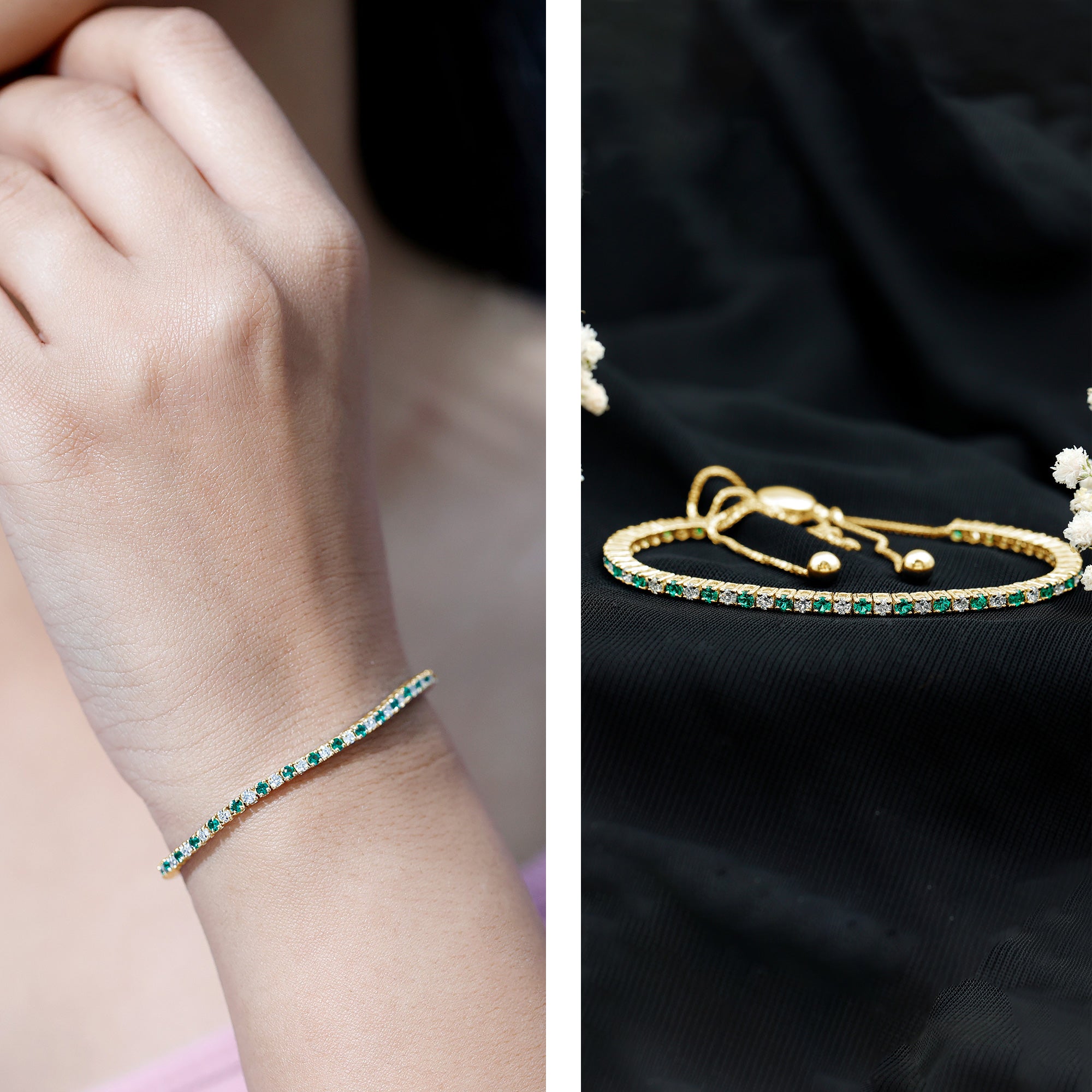 Settings affect the look of the bracelet to a considerable extent. Prong settings offer maximum sparkle to gemstone by letting in the most light, bezel settings offer security and a sleek look, and pavé settings featuring closely set stones give a continuous shimmer.