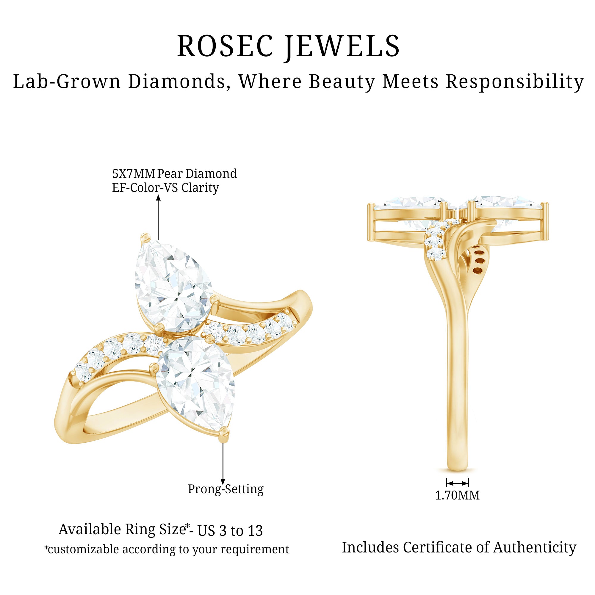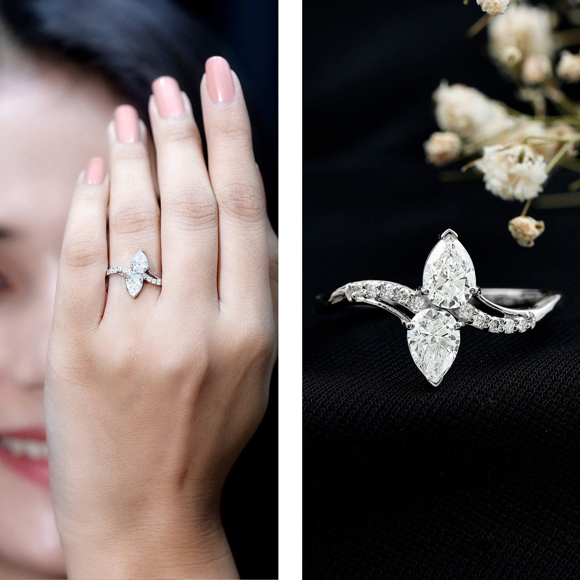 Two Stone Lab-grown Diamond Engagement Ring: Two diamonds side by side, symbolizing the love bond between you and your partner. These gemstones can be of similar or different shapes and sizes. These romantic Two-stone engagement rings are also famous with the name "Toi et moi rings" or "you and Me" rings.