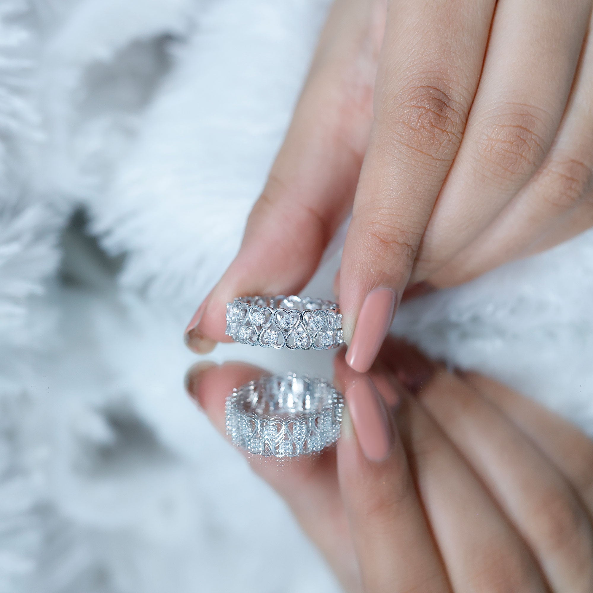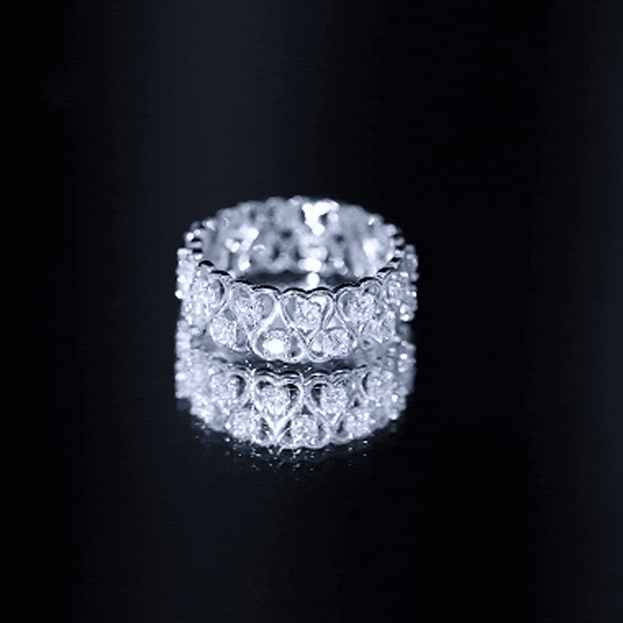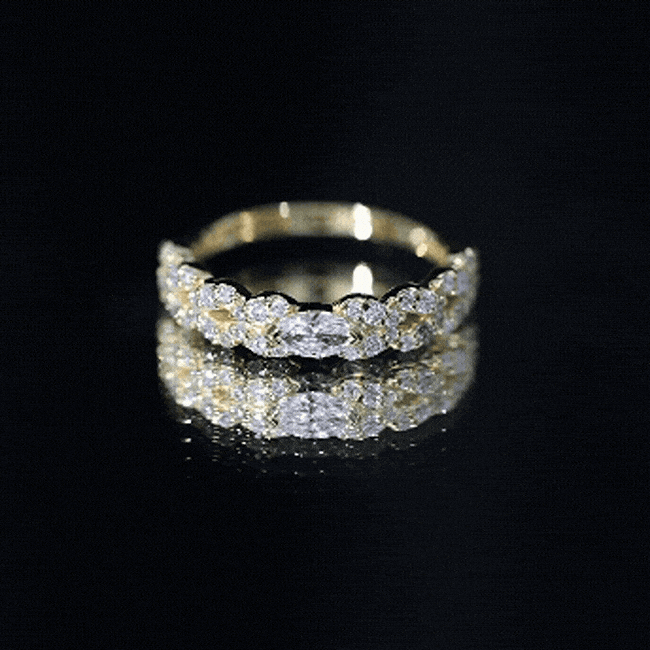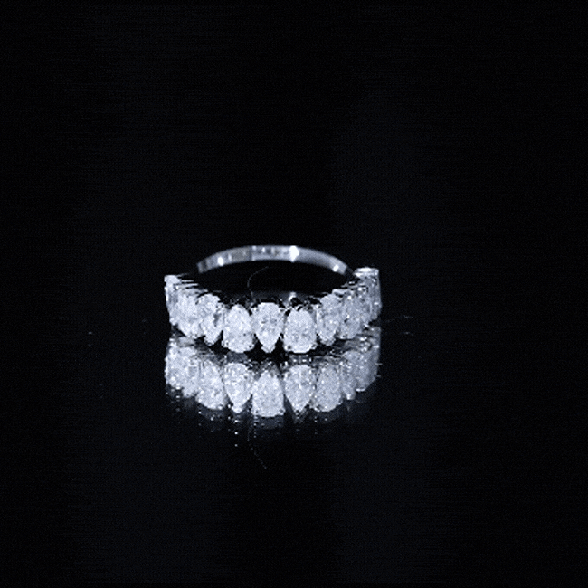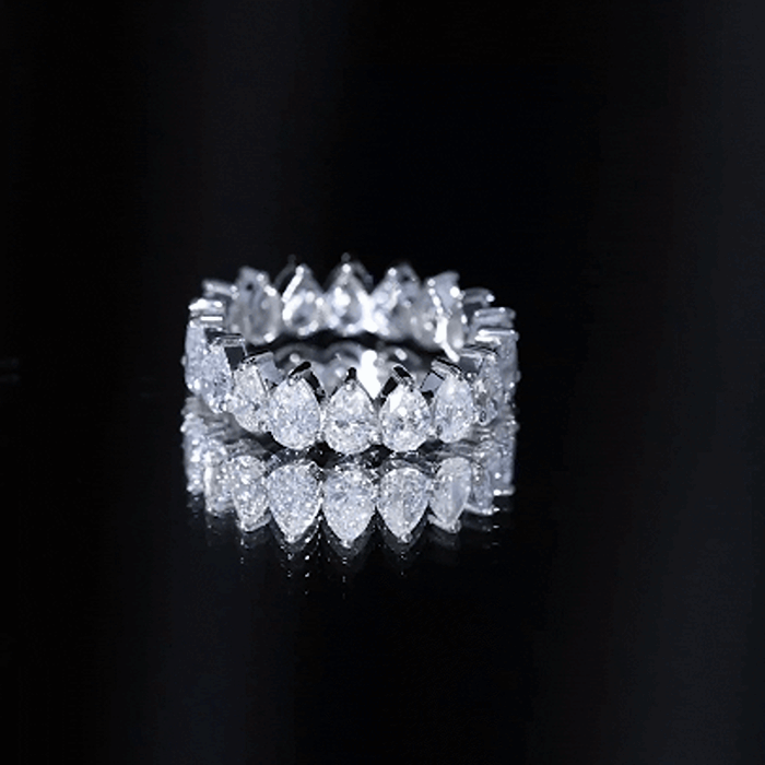 Full eternity bands have diamonds set all the way around the ring. Half eternity bands place diamonds across the top portion, often offering more comfort and flexibility while keeping the same look from the top view.