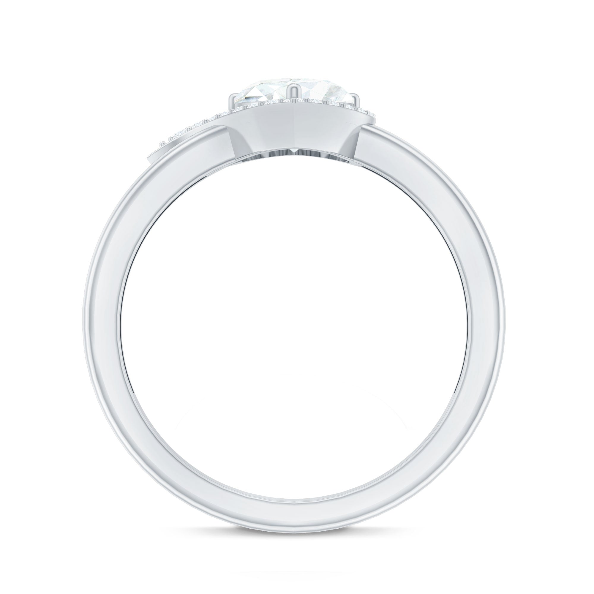 Hidden Halo Setting: A fancy lab-grown diamond halo beneath the center stone adds a sparkling view from the side, besides maintaining a clear view on the top.