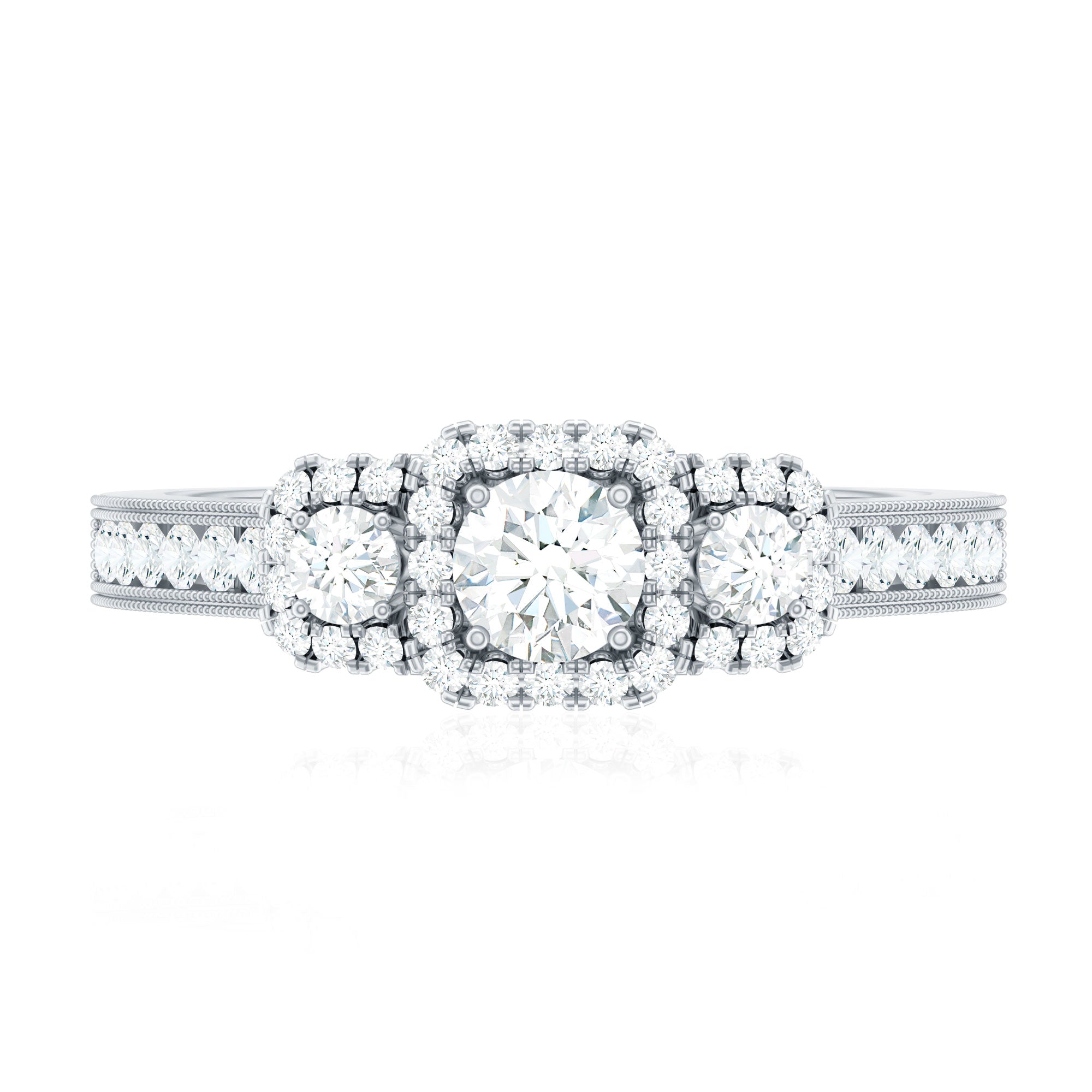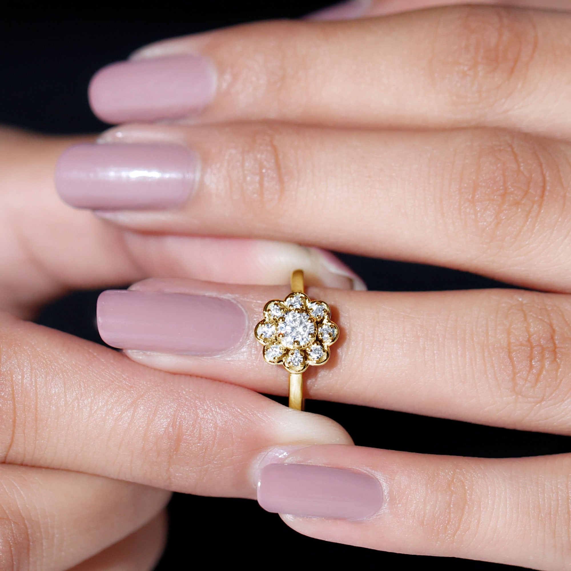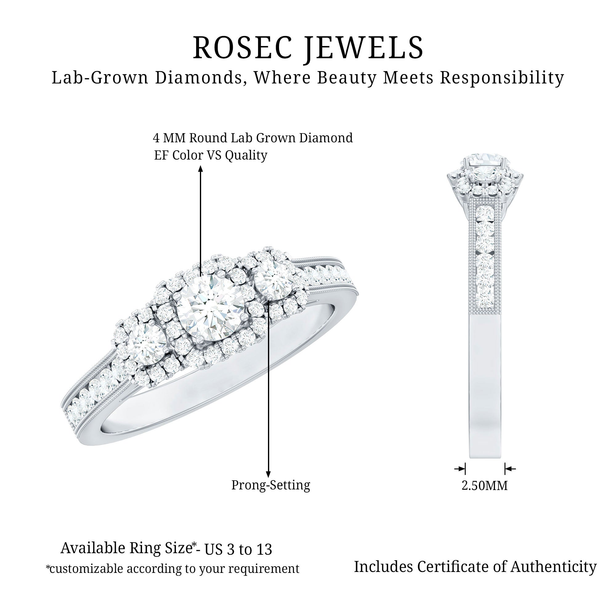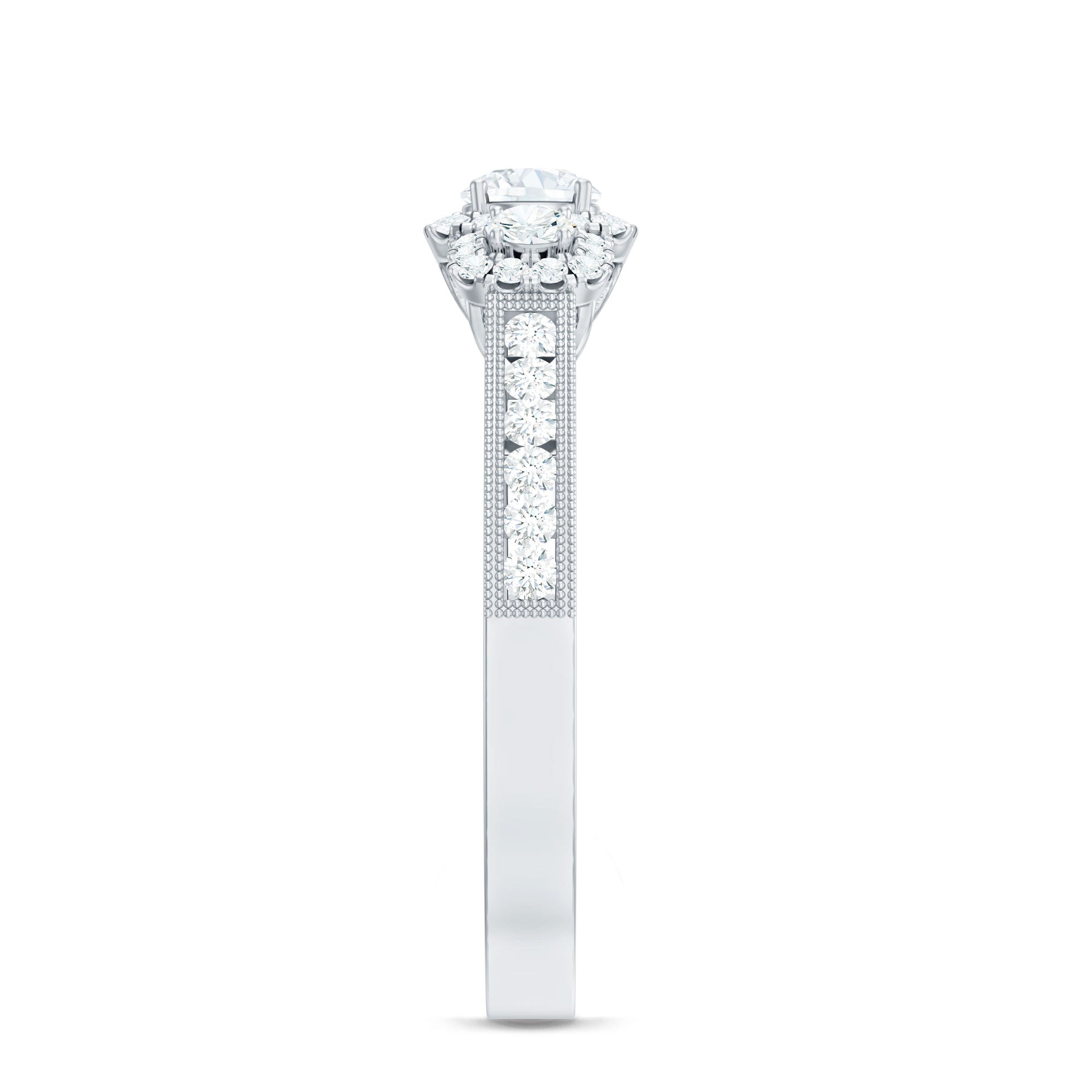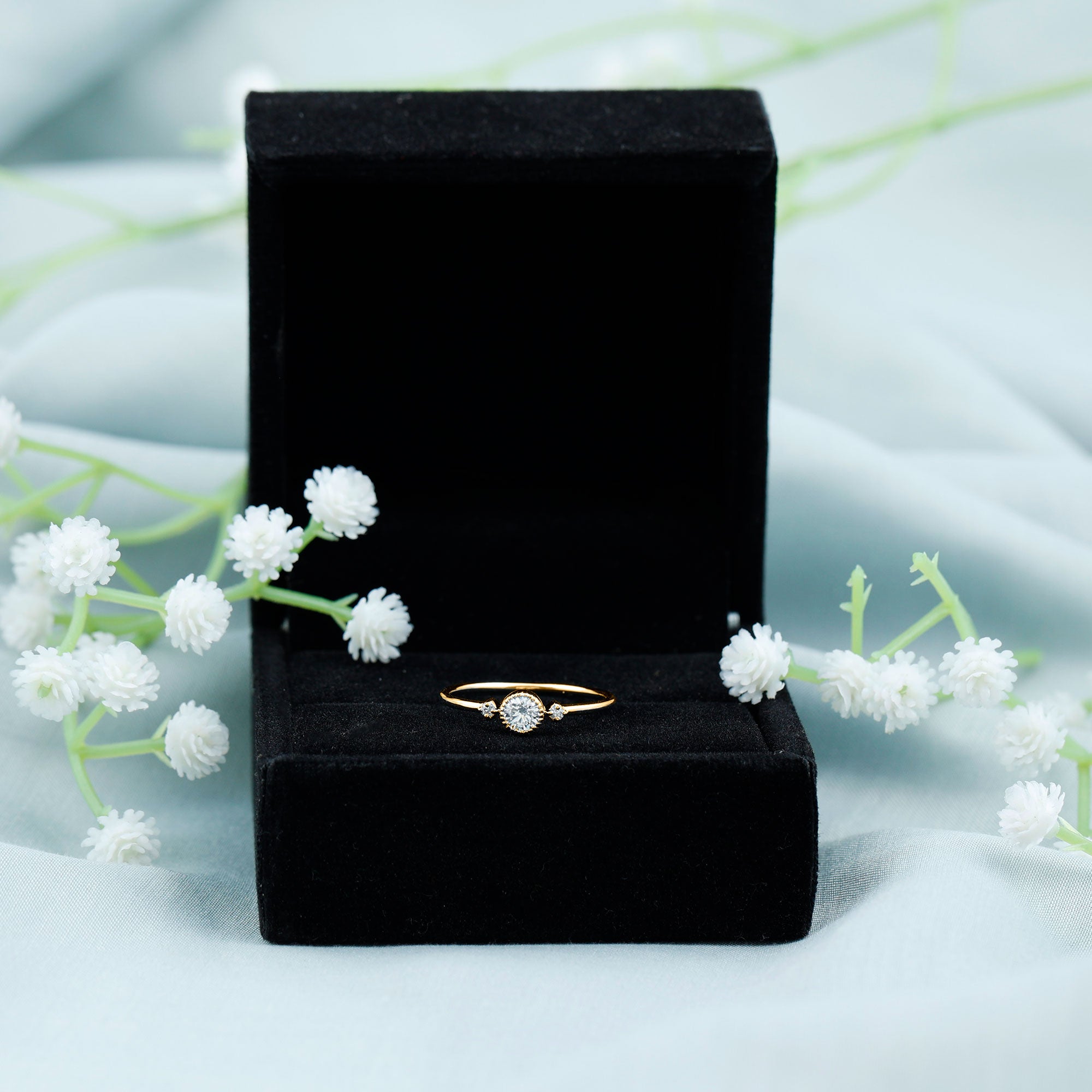 3. Halo Rings: Lab created diamond promise rings in halo style feature a central lab-grown diamond gemstone encircled by smaller similar or different gems, offering a perfect blend of simplicity and elegance.