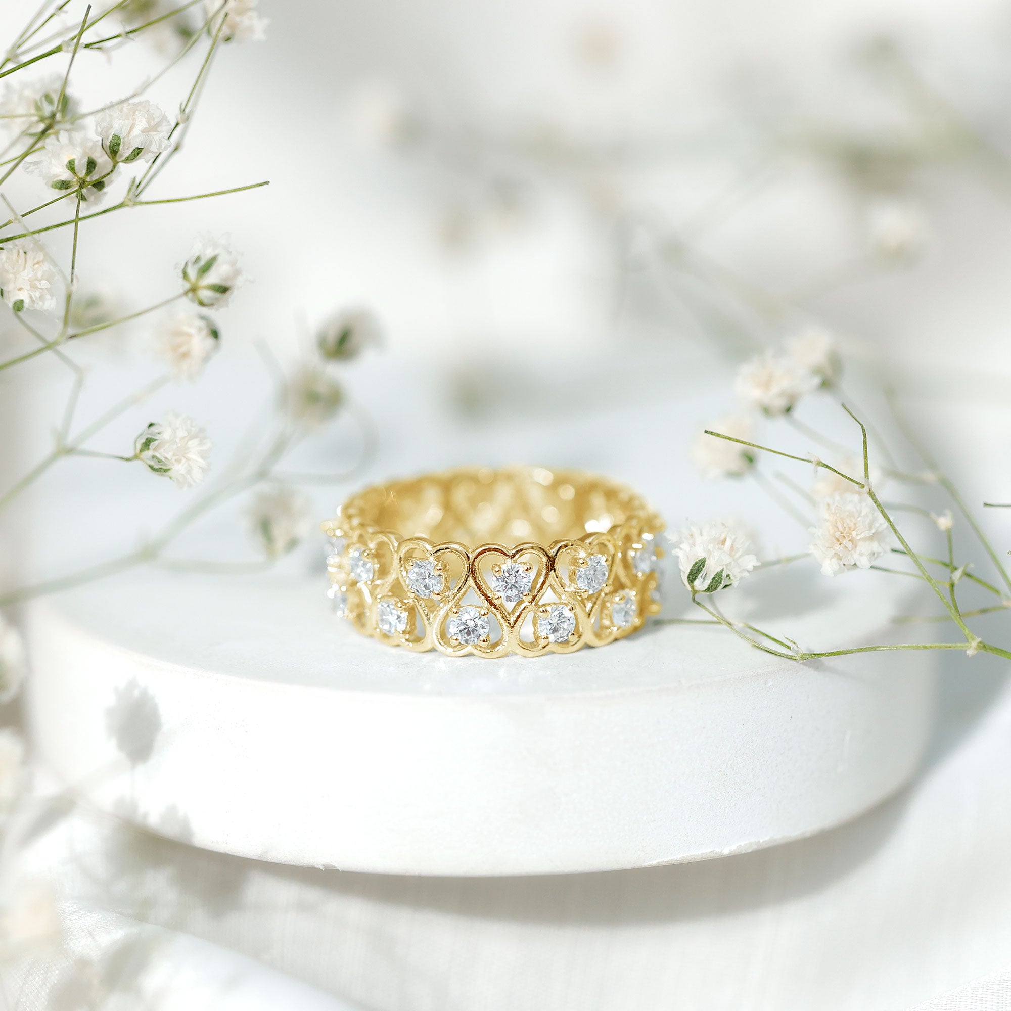 5. Heart Rings: Like other ring styles, this promise ring also includes lab-grown diamonds but in a charming heart shape. They represent the purity of the bond between you and your loved one.