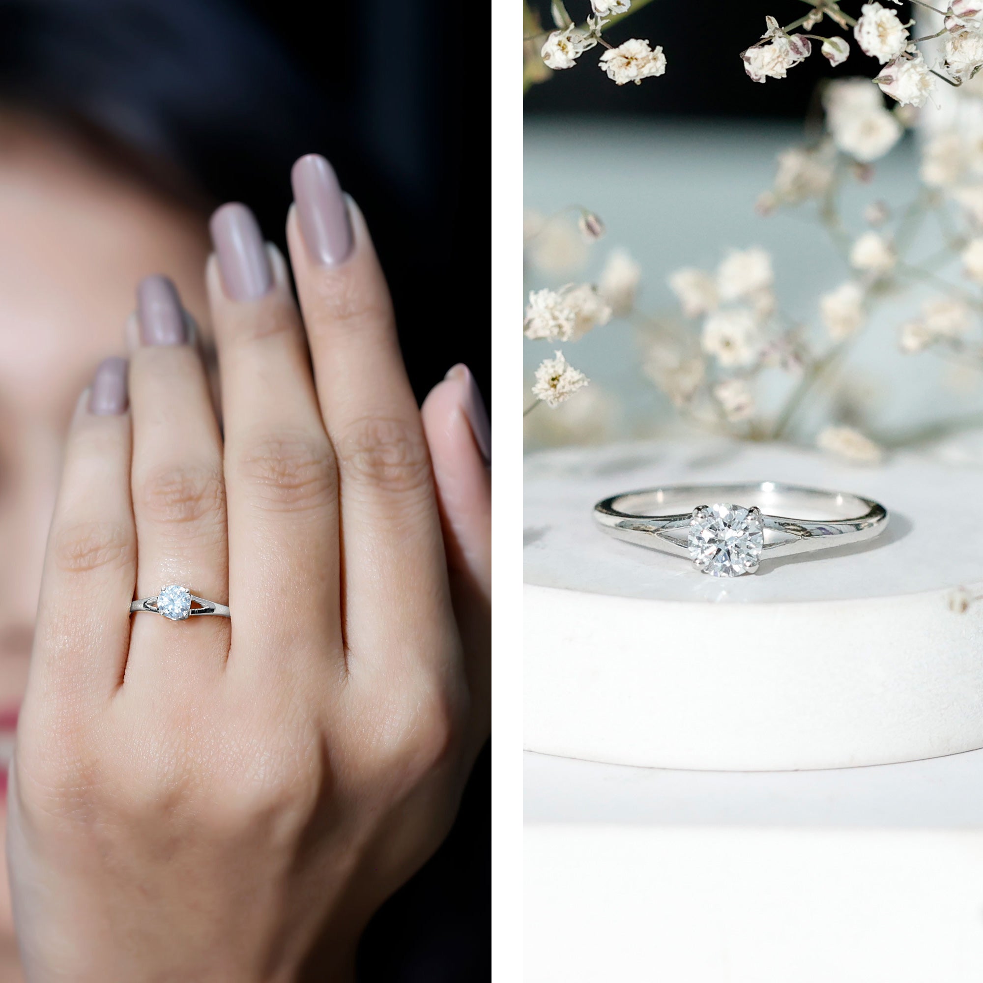 4. Solitaire Rings: This solitaire promise ring style features a single lab-grown diamond gemstone big or small on a sleek metallic band.