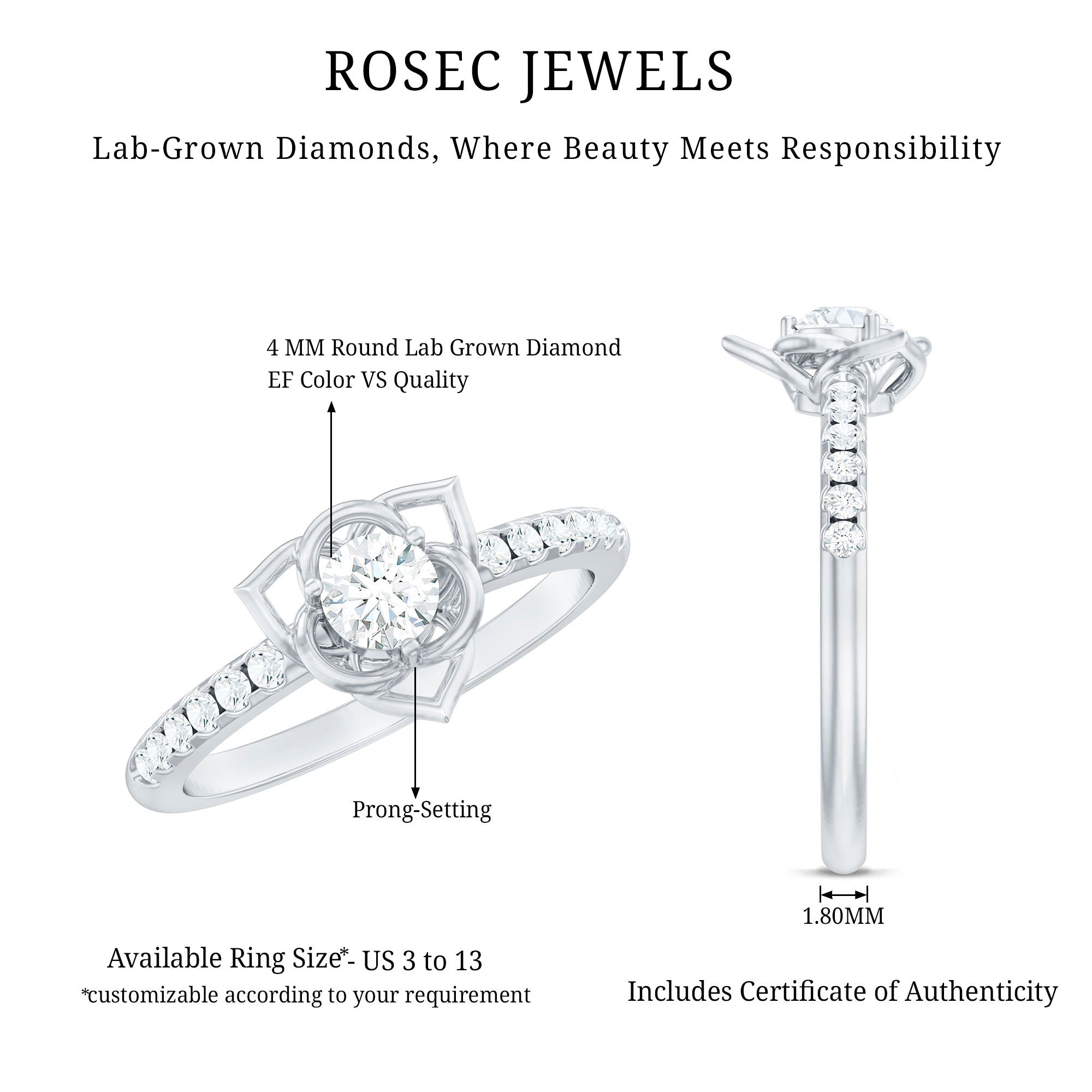 Rosec Jewels is the ultimate destination for buying lab-grown diamond promise rings, for several reasons. Here are a few: