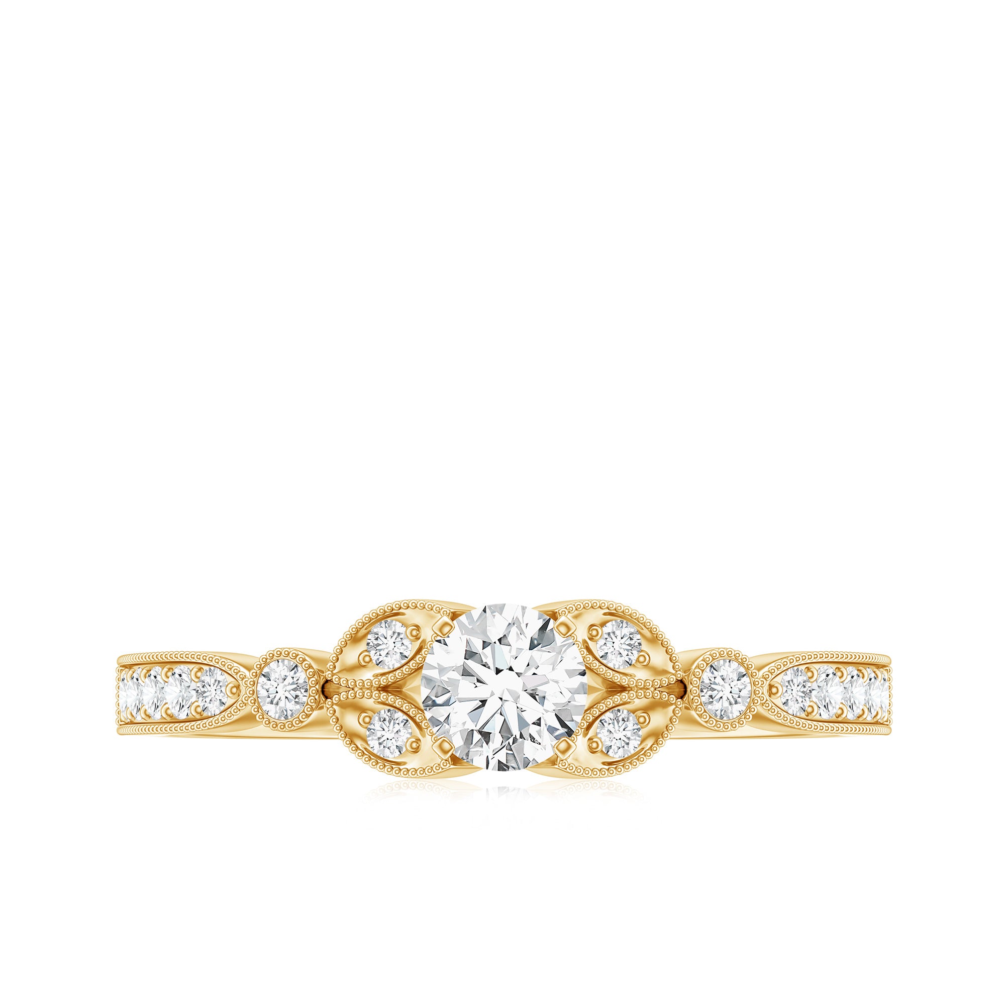 Round-Cut Solitaire Rings: These lab diamond solitaire rings feature classical round-cut gemstone with maximized sparkle.