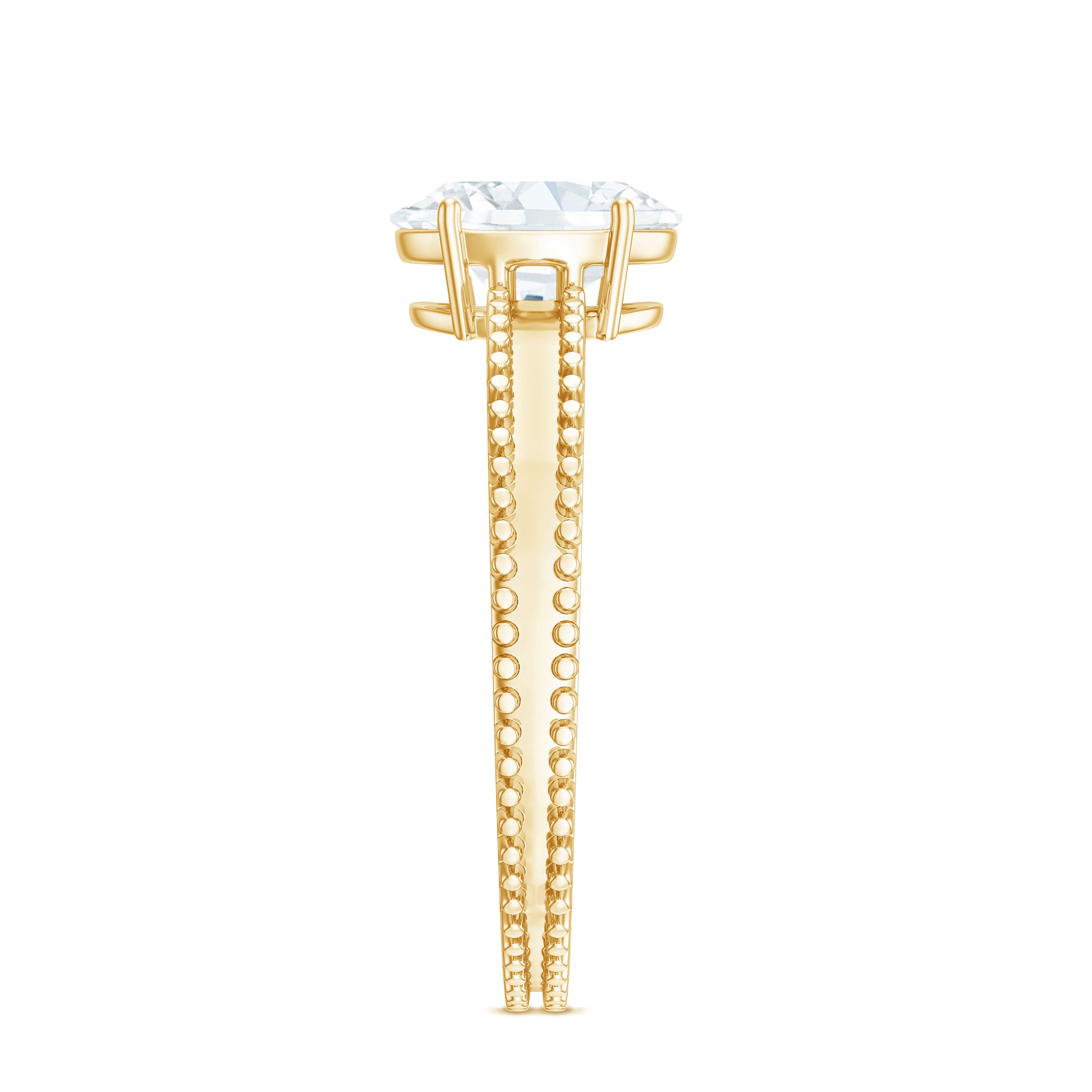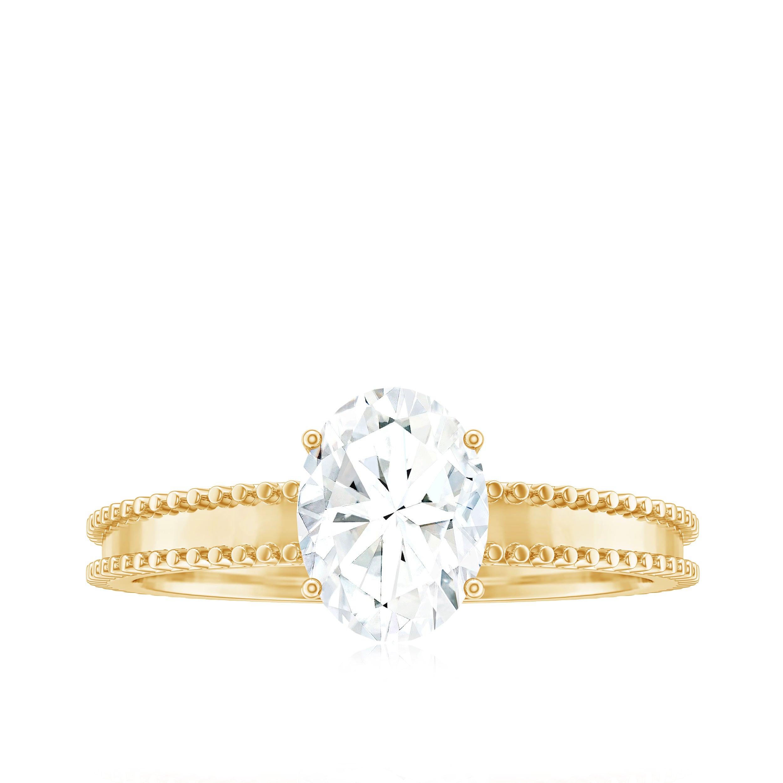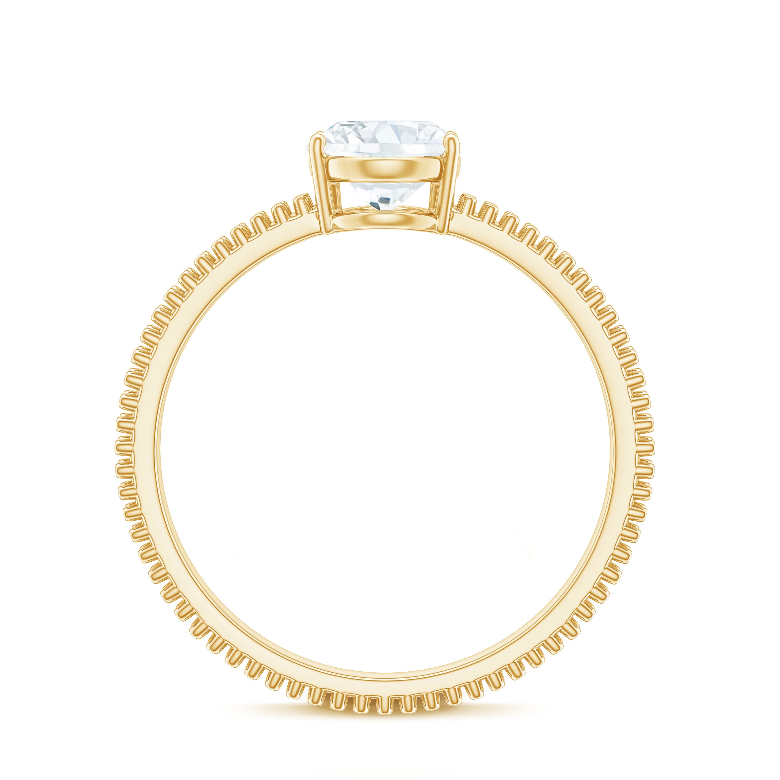 Different metals like yellow gold, white gold can be chosen according to different gemstones, taste and budget. Yellow gold is a traditional choice that carries classic warmth, adds rich contrast and makes the solitaire gemstone stand out. White gold is known to offer sleek, modern appeal that enhances the brilliance of lab created diamond solitaire ring.