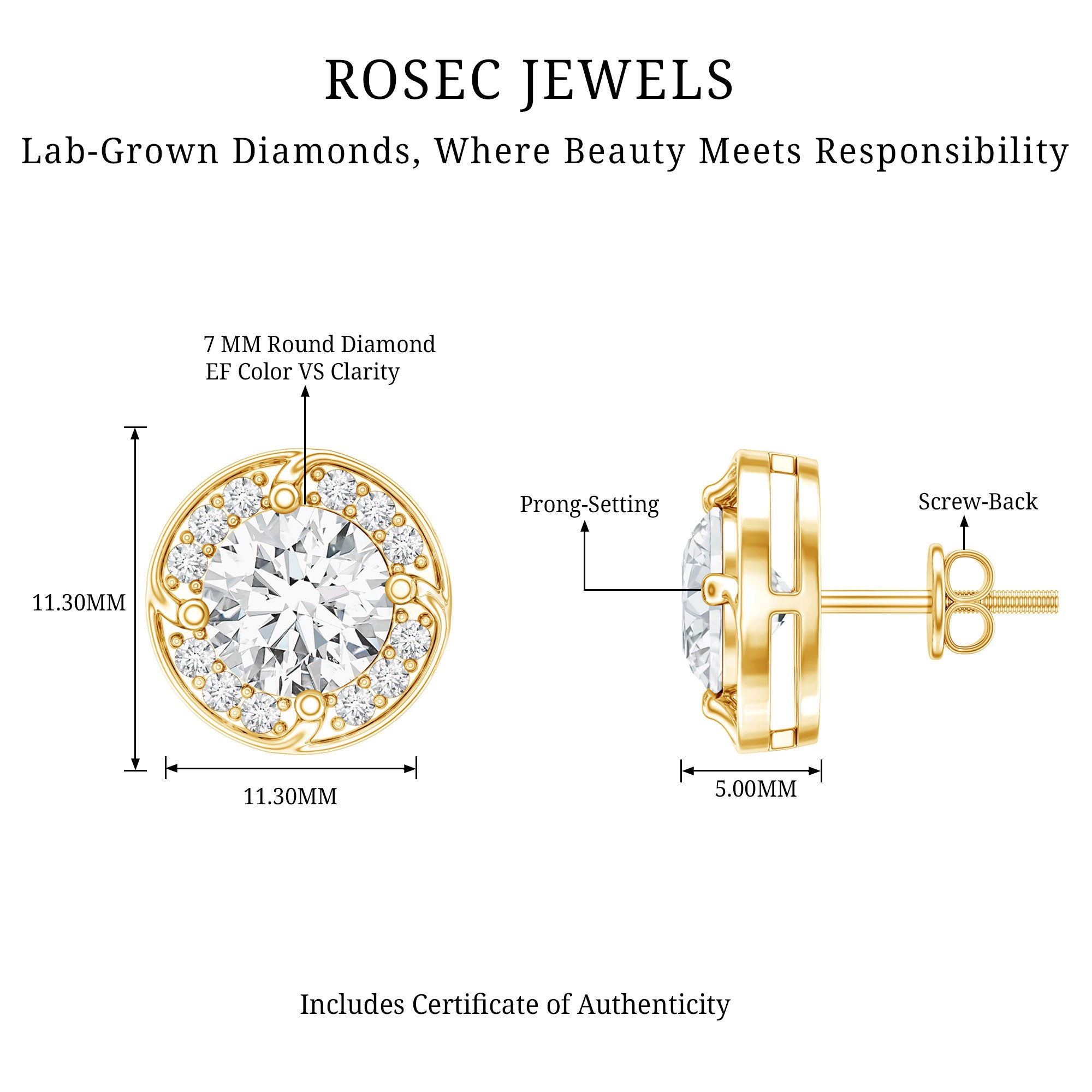 Rosec Jewels offers a diverse collection of lab grown diamond stud earrings featuring EF-VS quality lab grown diamonds in different carat sizes. These classic earrings are designed to enhance your everyday or dressy attires for a touch of extra edge and sparkle to your looks.