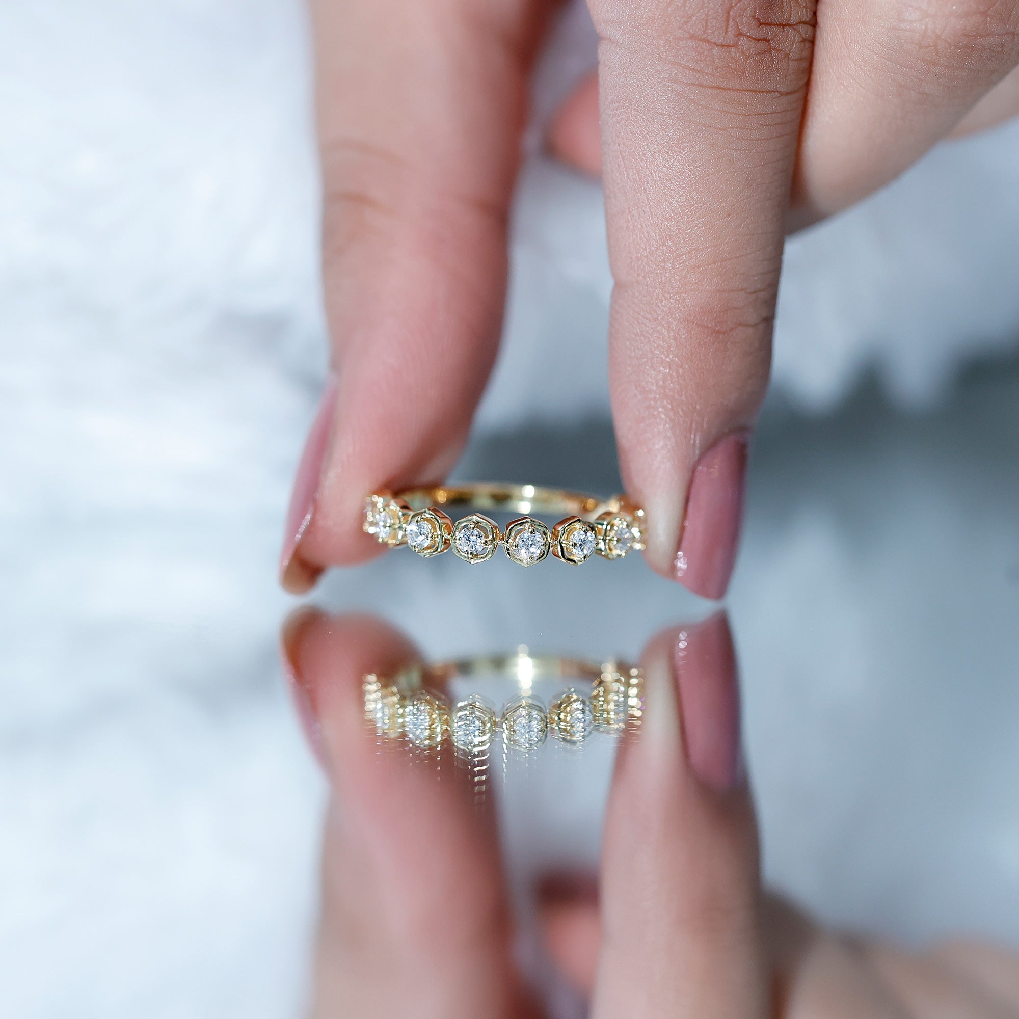 High-Quality: Created under strict laboratory conditions, lab-grown diamonds often have fewer imperfections and excellent hardness. These high-quality gems are a superior choice when it comes to both durability and overall quality. So your lab created diamond band can be your everyday accessory as well as a statement piece too.