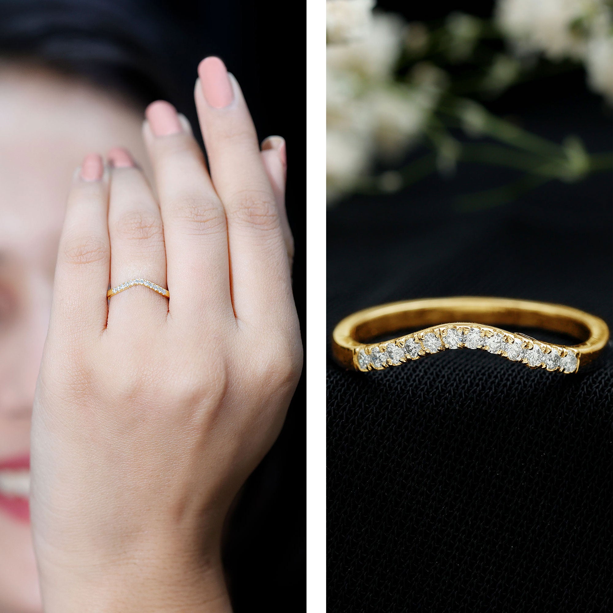 Stackable bands: Curved Stackable bands are also an option if your engagement rings have a unique shape or a larger center stone, helping the two rings fit together beautifully. They usually feature small lab diamonds of similar shape and size.