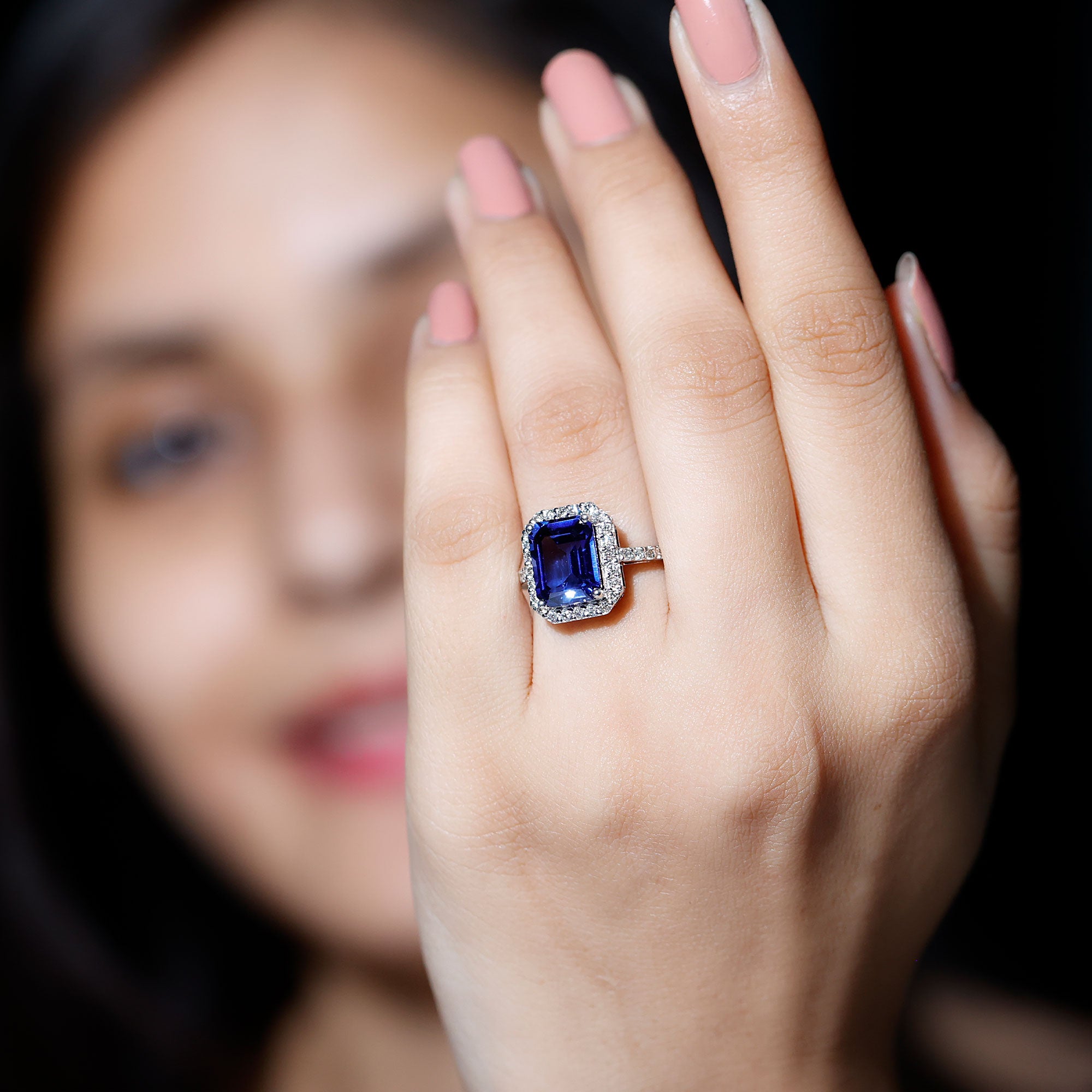 Halo Rings: Center lab made gemstone accented with shining or colored stones for a sparkling look.