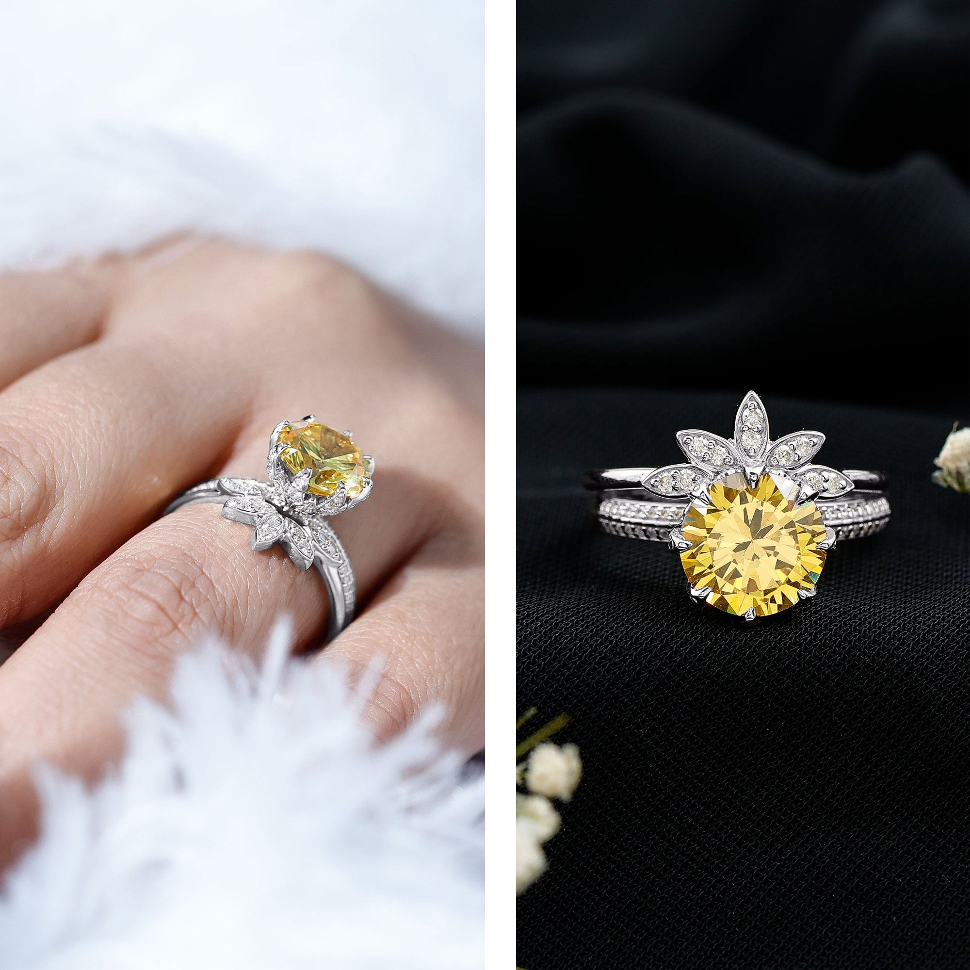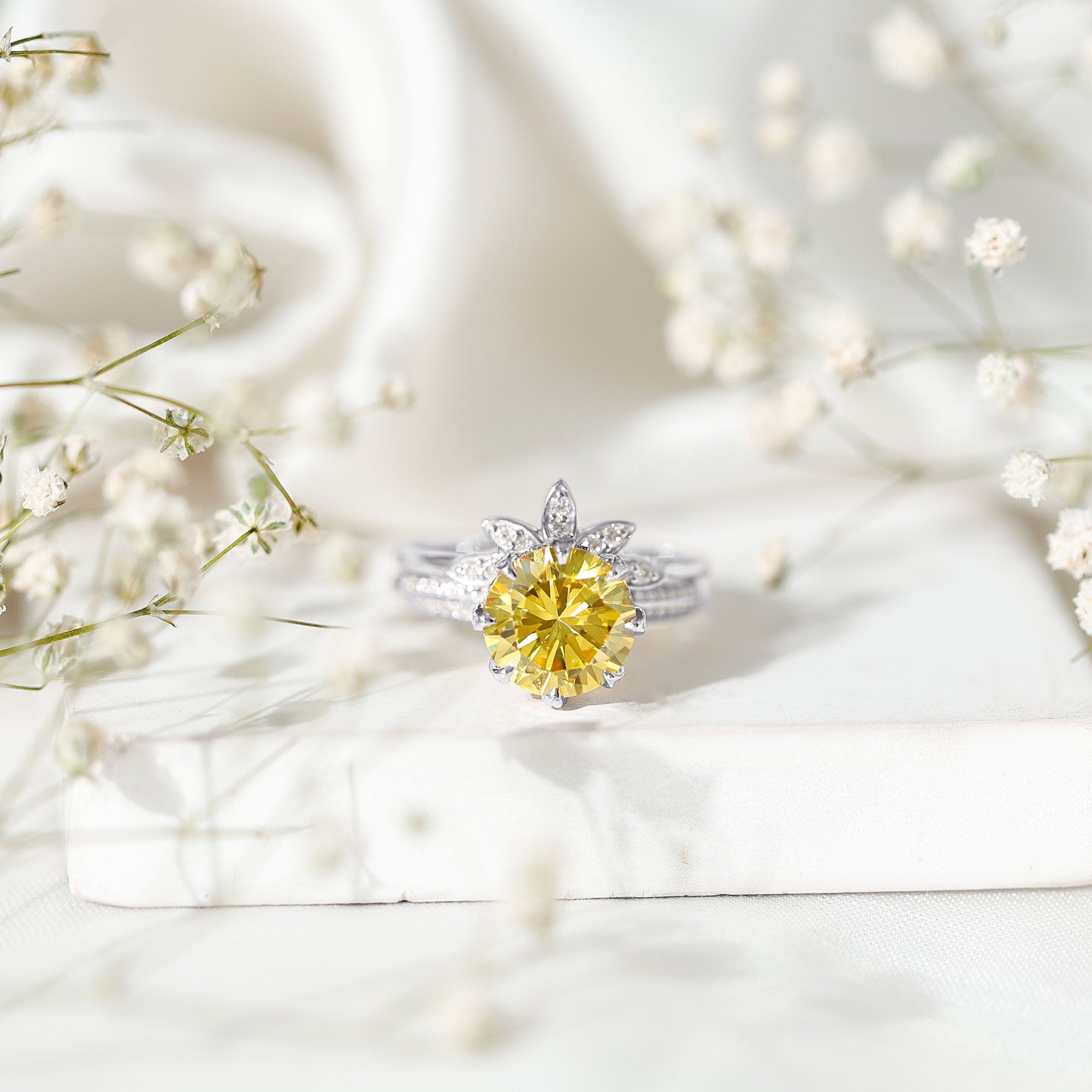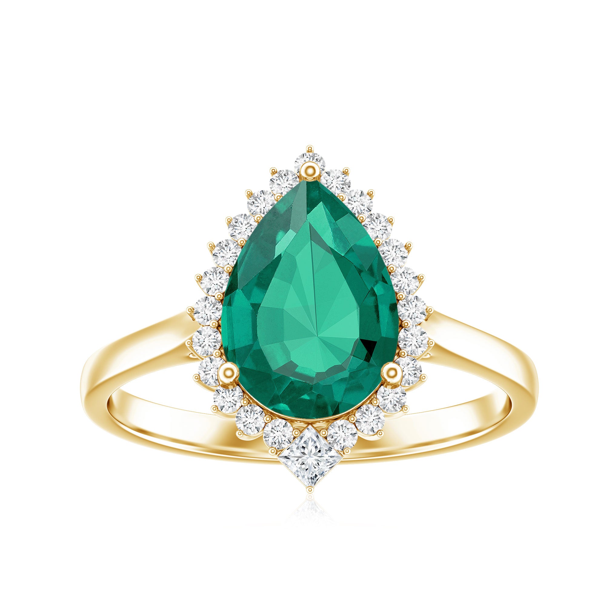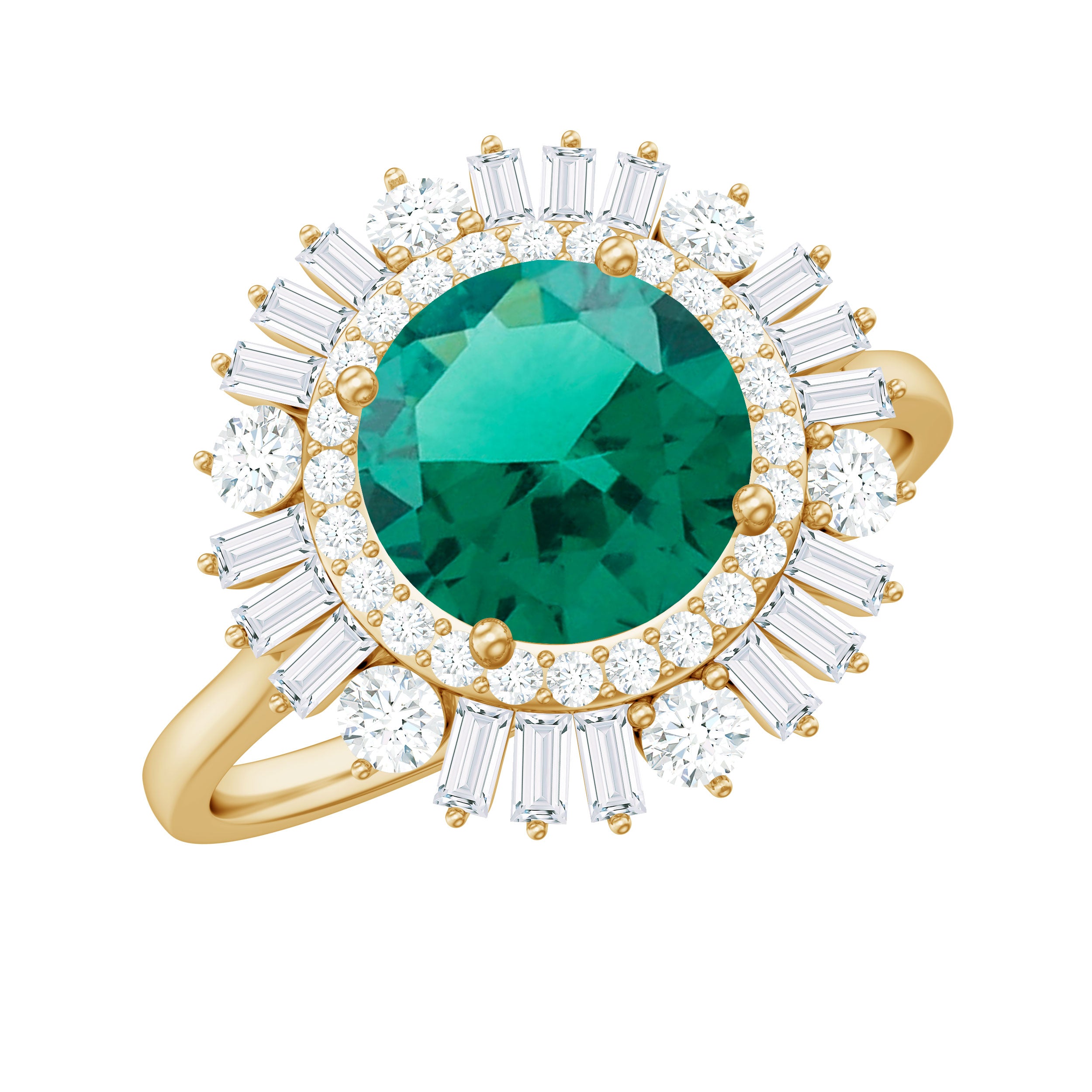 Halo Rings: Center lab made gemstone accented with shining or colored stones for a sparkling look.