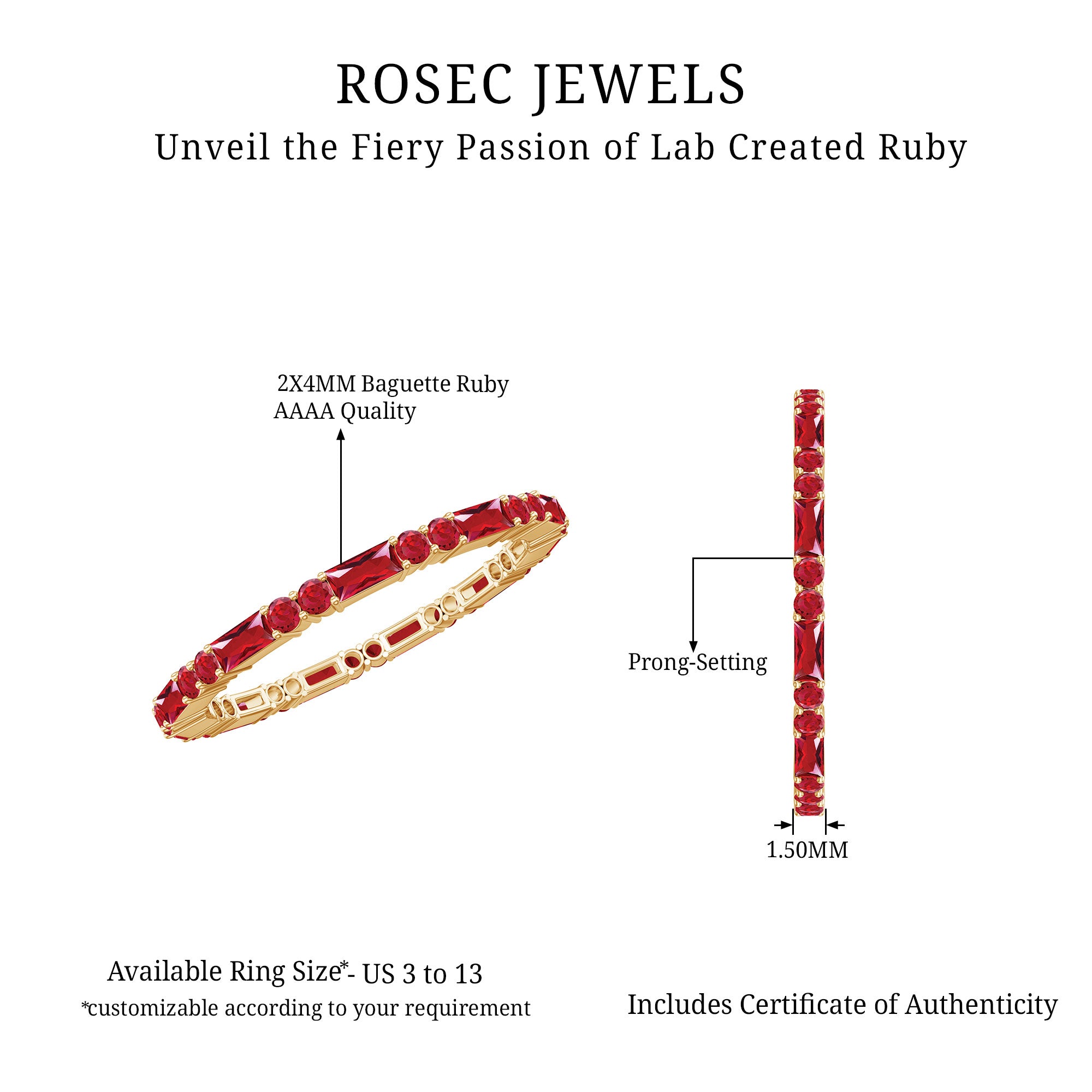 • Half Eternity Rings: Entire top of the band adorned with laboratory created gemstones for a graceful sparkle.