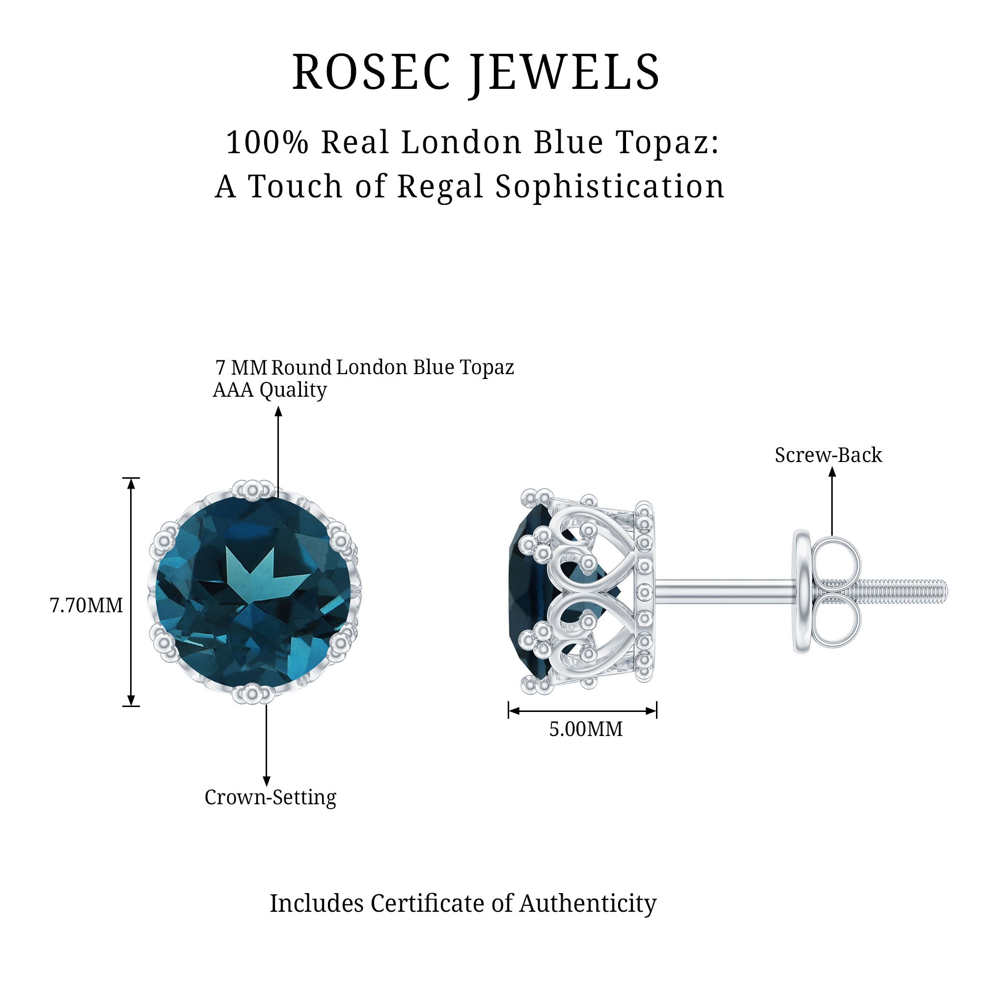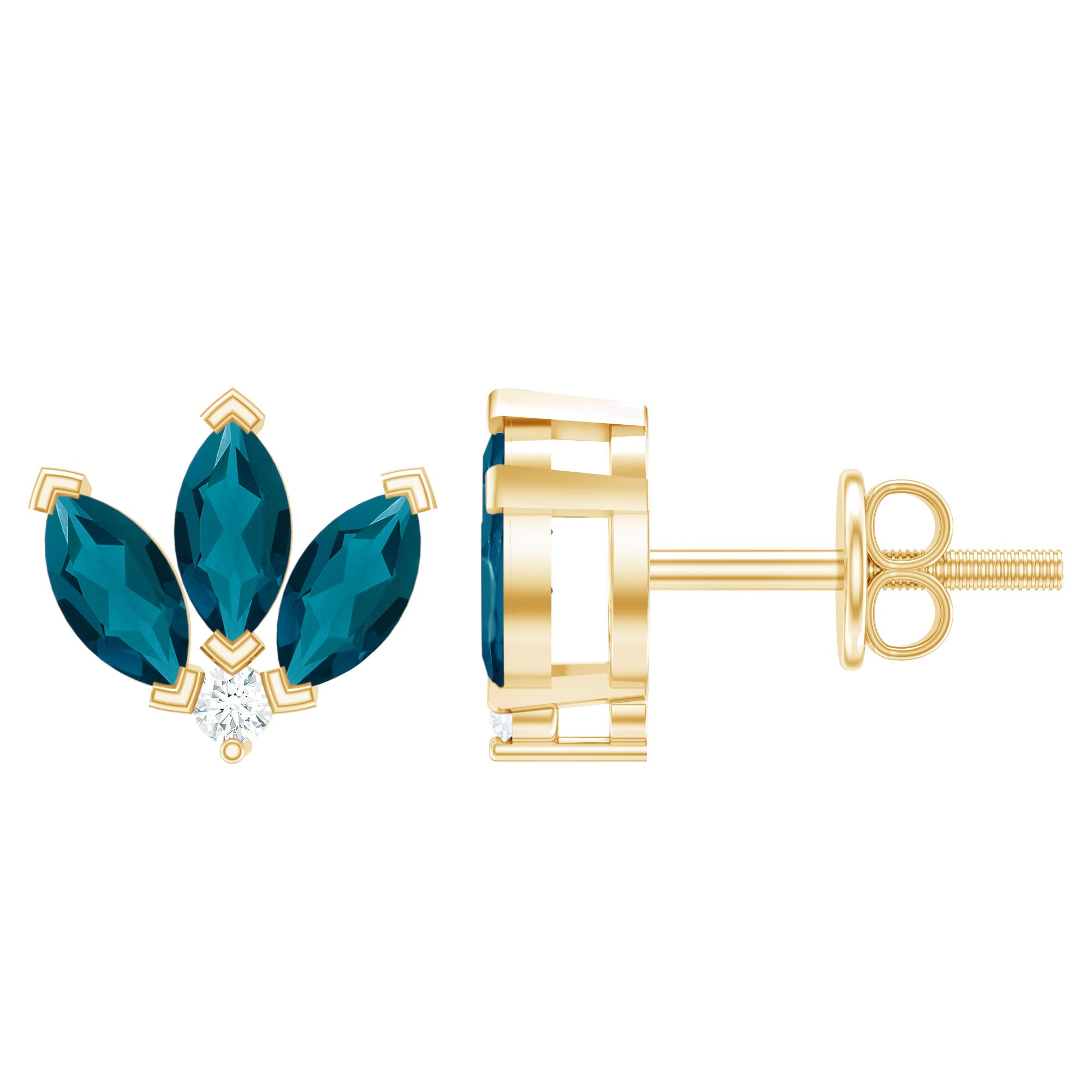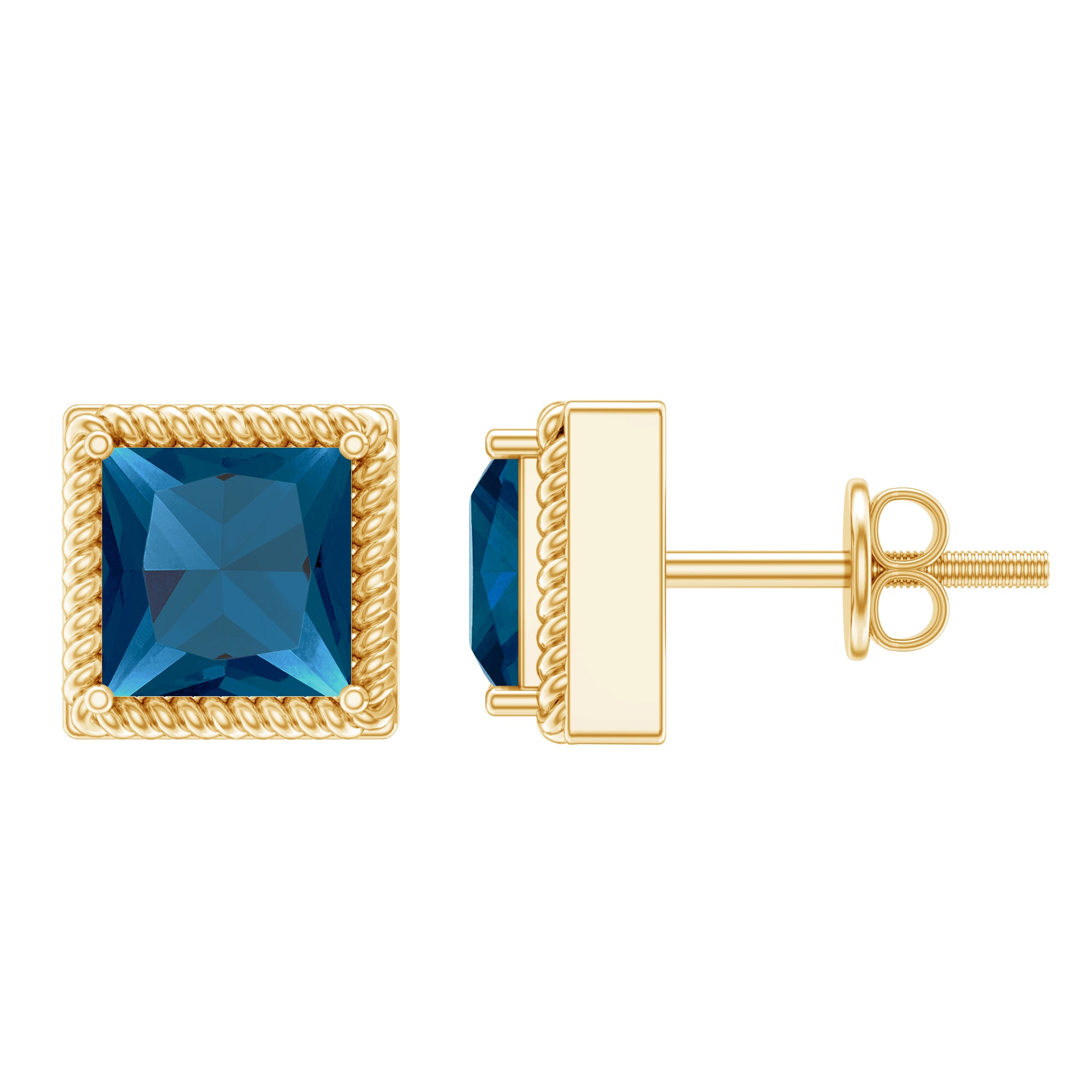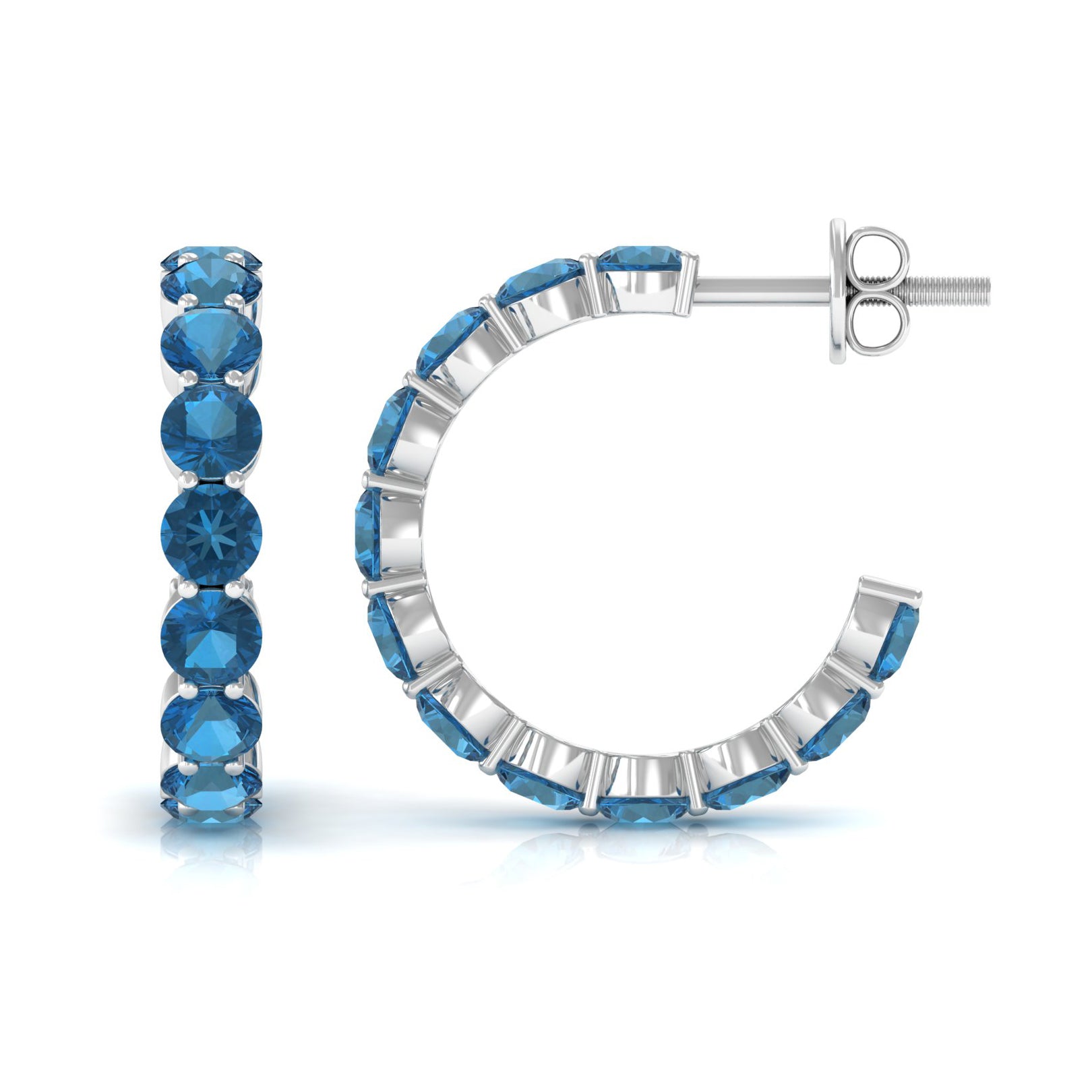 White Gold:- A popular pick for gemstone jewelry. White Gold metal complement any design and cool color tones of London blue topaz earrings, creating a mesmerizing charm to your personality.