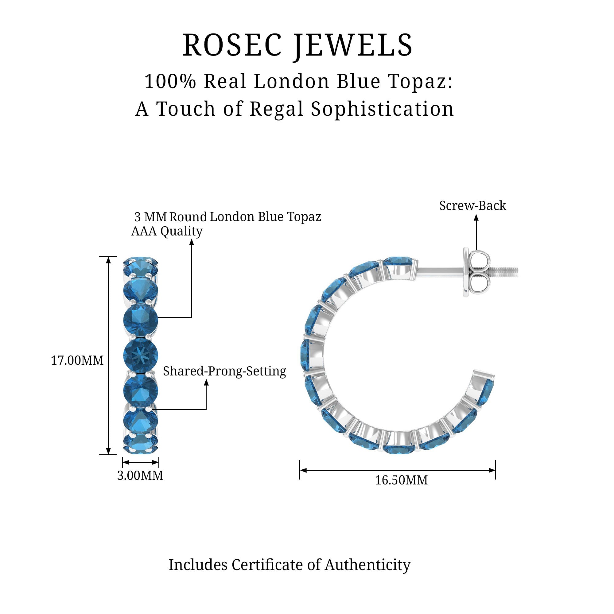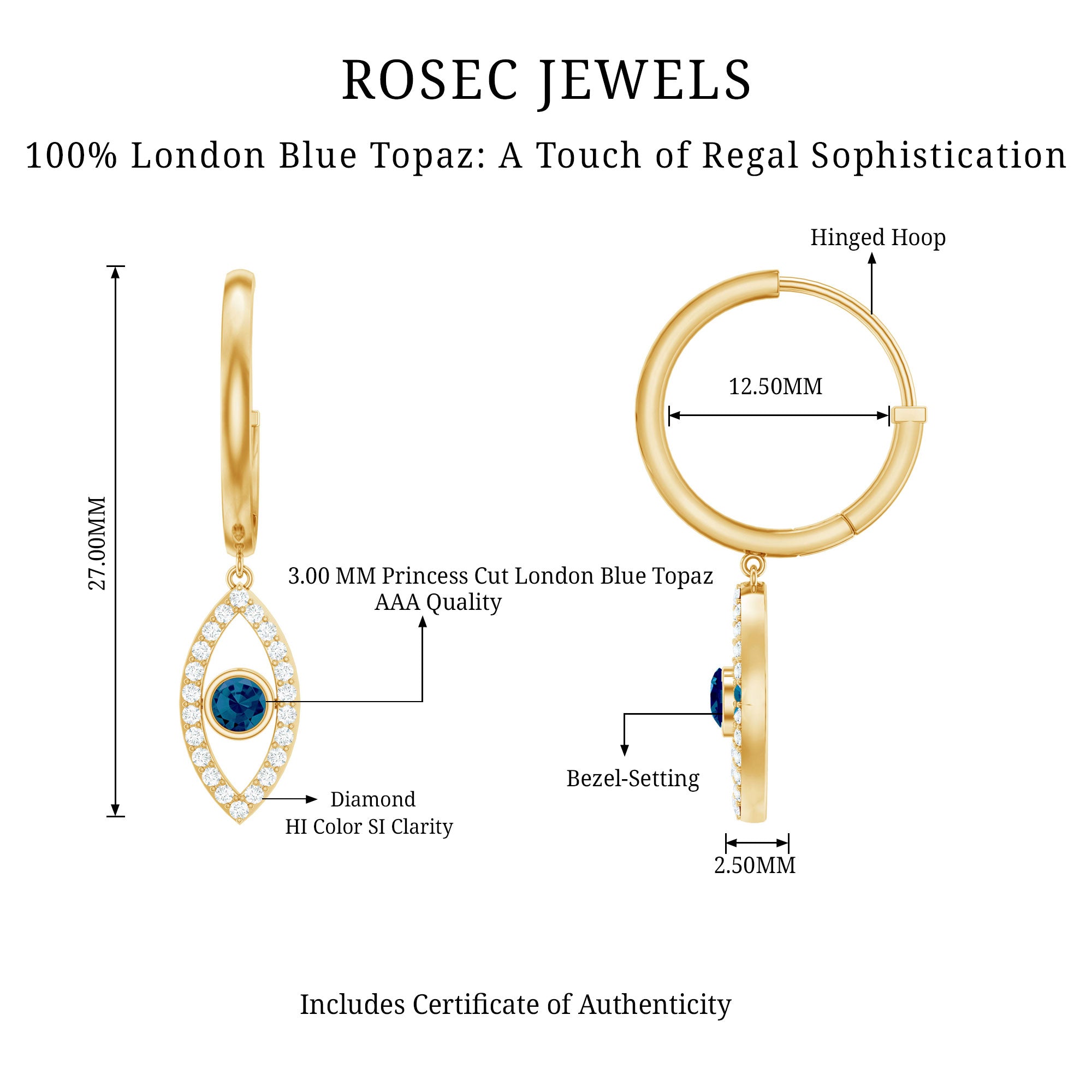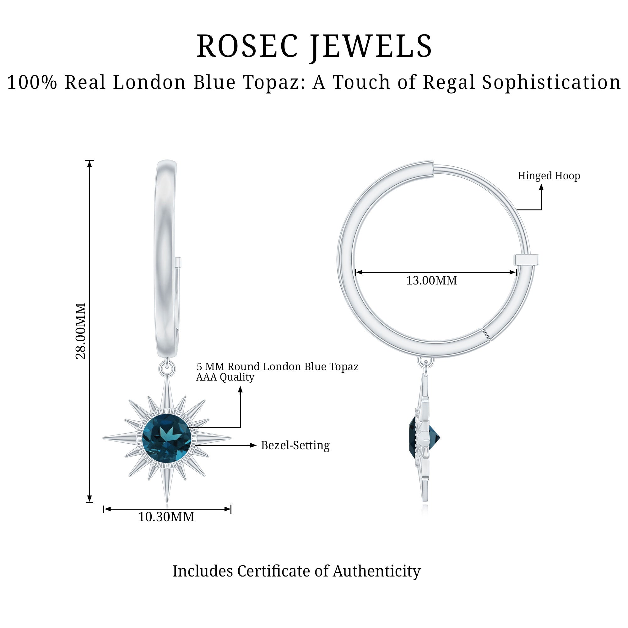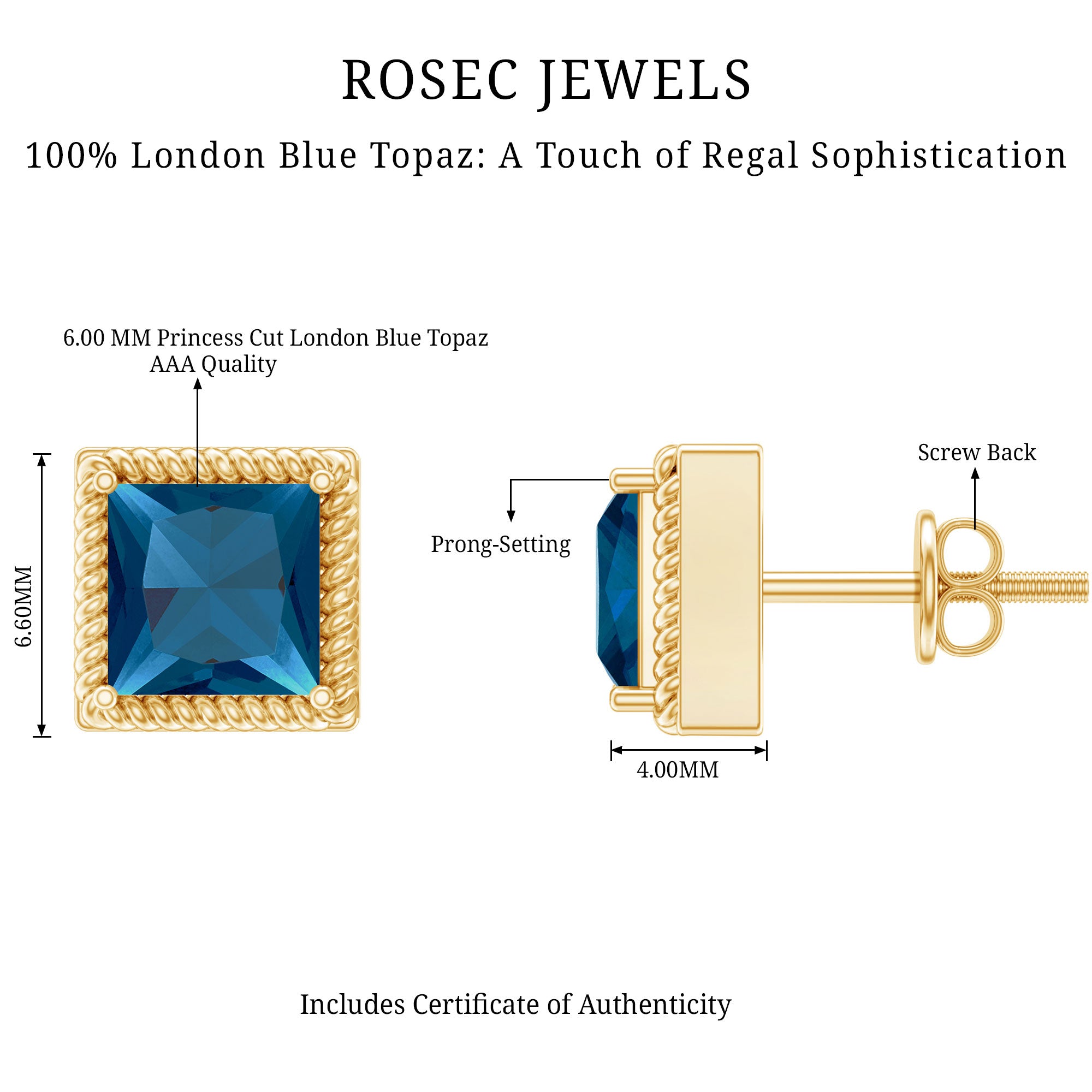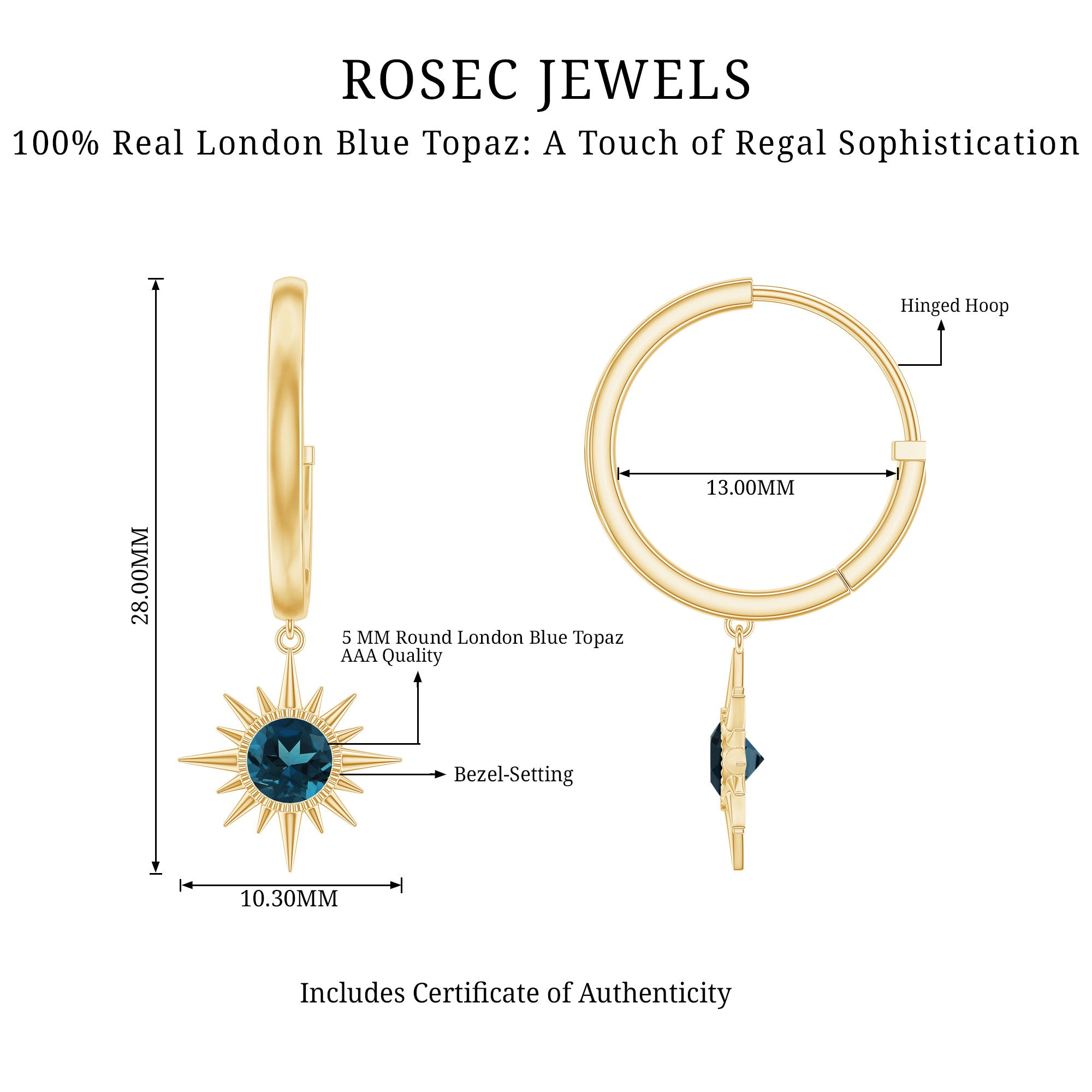 White Gold:- A popular pick for gemstone jewelry. White Gold metal complement any design and cool color tones of London blue topaz earrings, creating a mesmerizing charm to your personality.