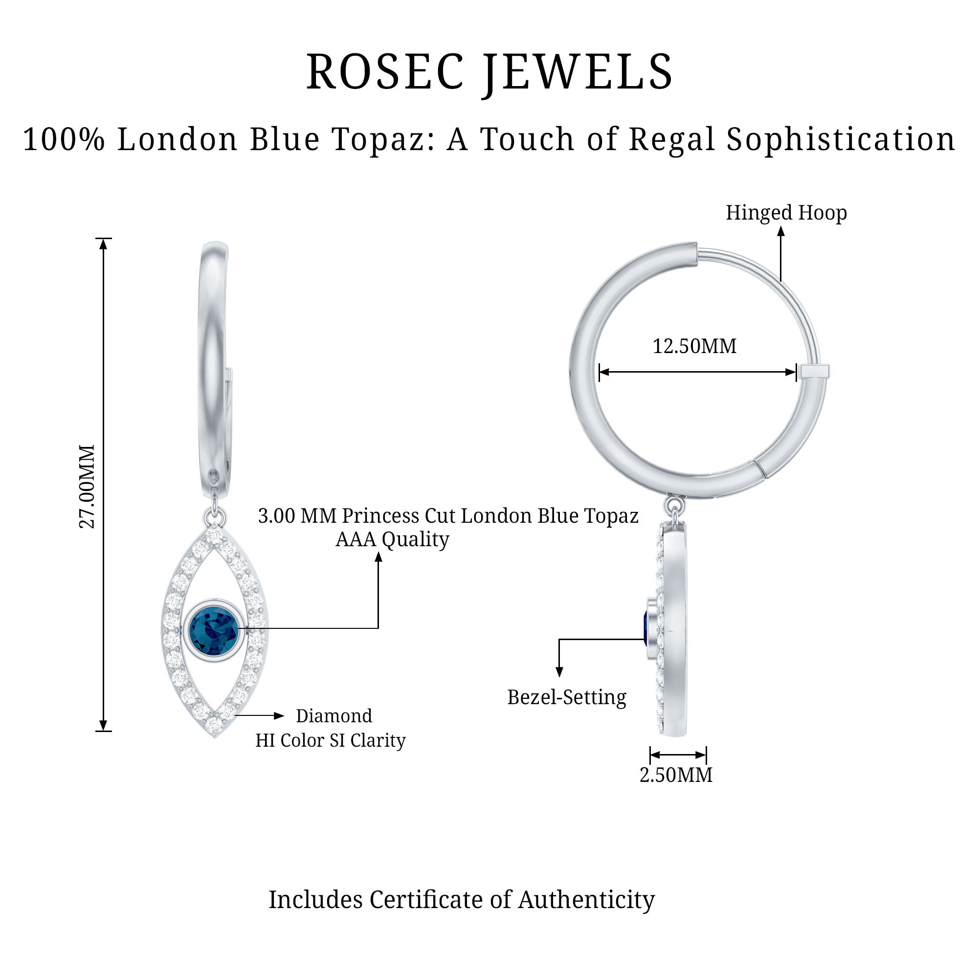 London Blue Topaz Vintage Inspired Earrings: - with each unique design of blue topaz vintage inspired earrings contributes to your charm and allure. Our vintage-styled blue topaz hoop drop earrings with diamond accents are a harmonious combination of modernism and classic elegance. They are lightweight and also comfortable to wear, adding a slight touch of vintage charm to your attires.