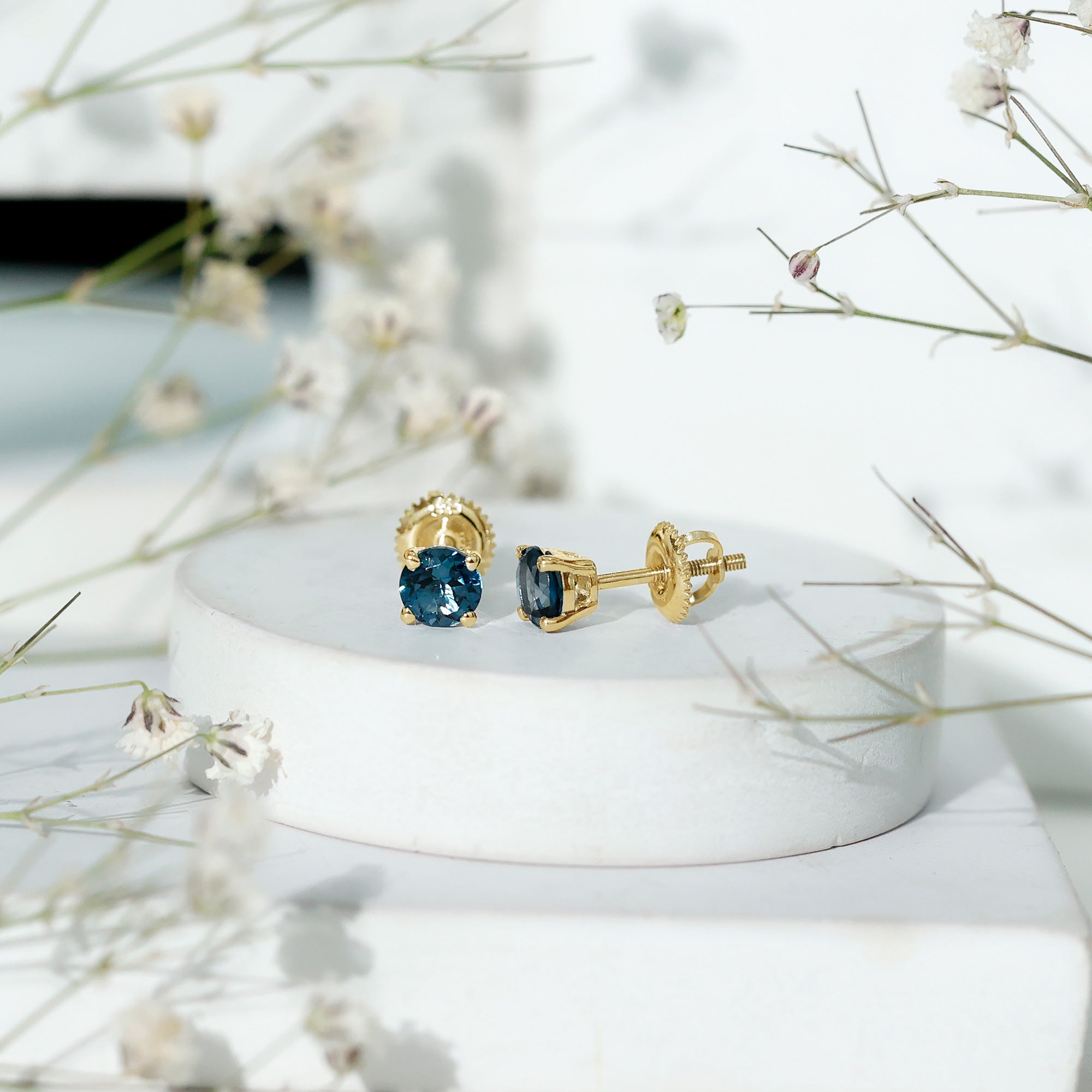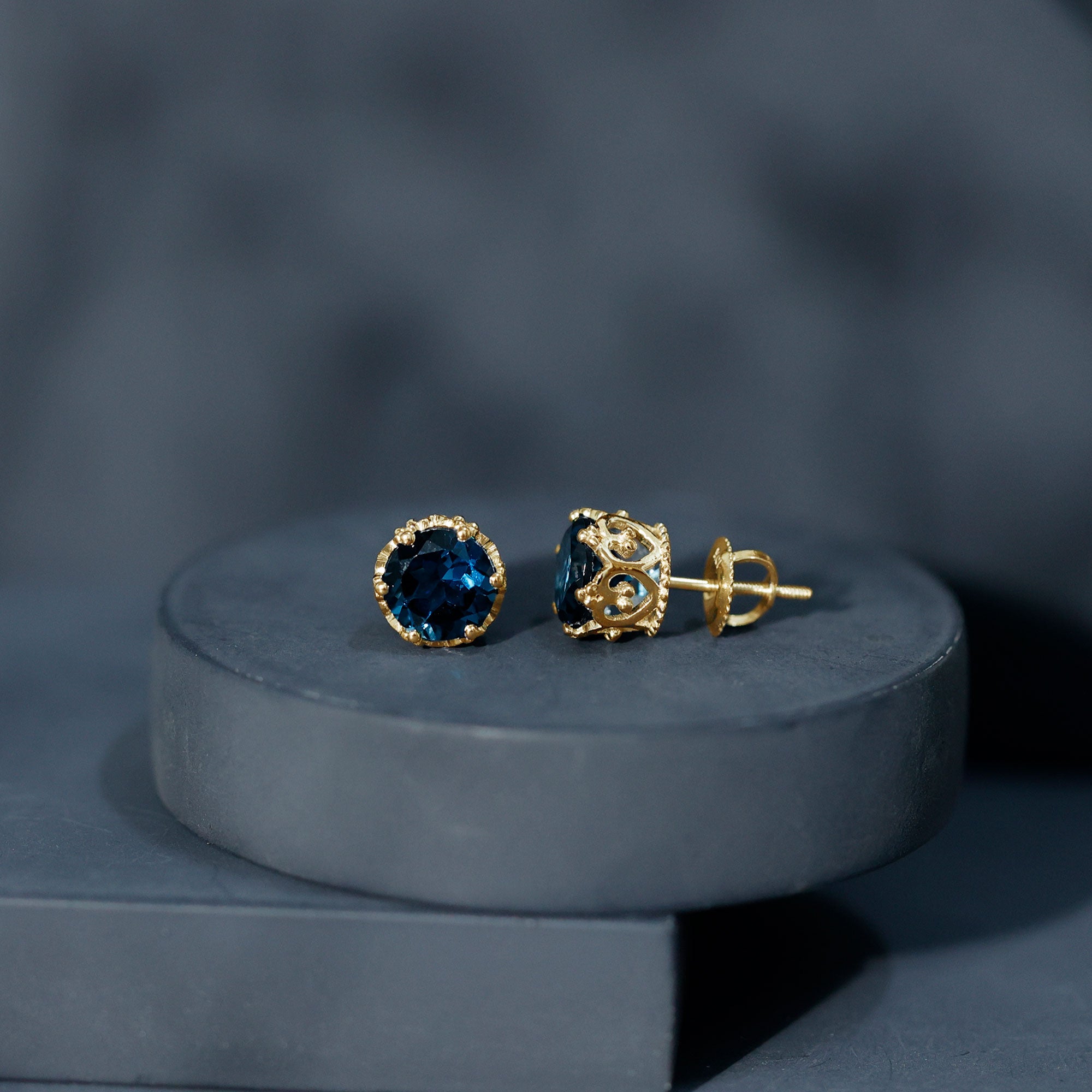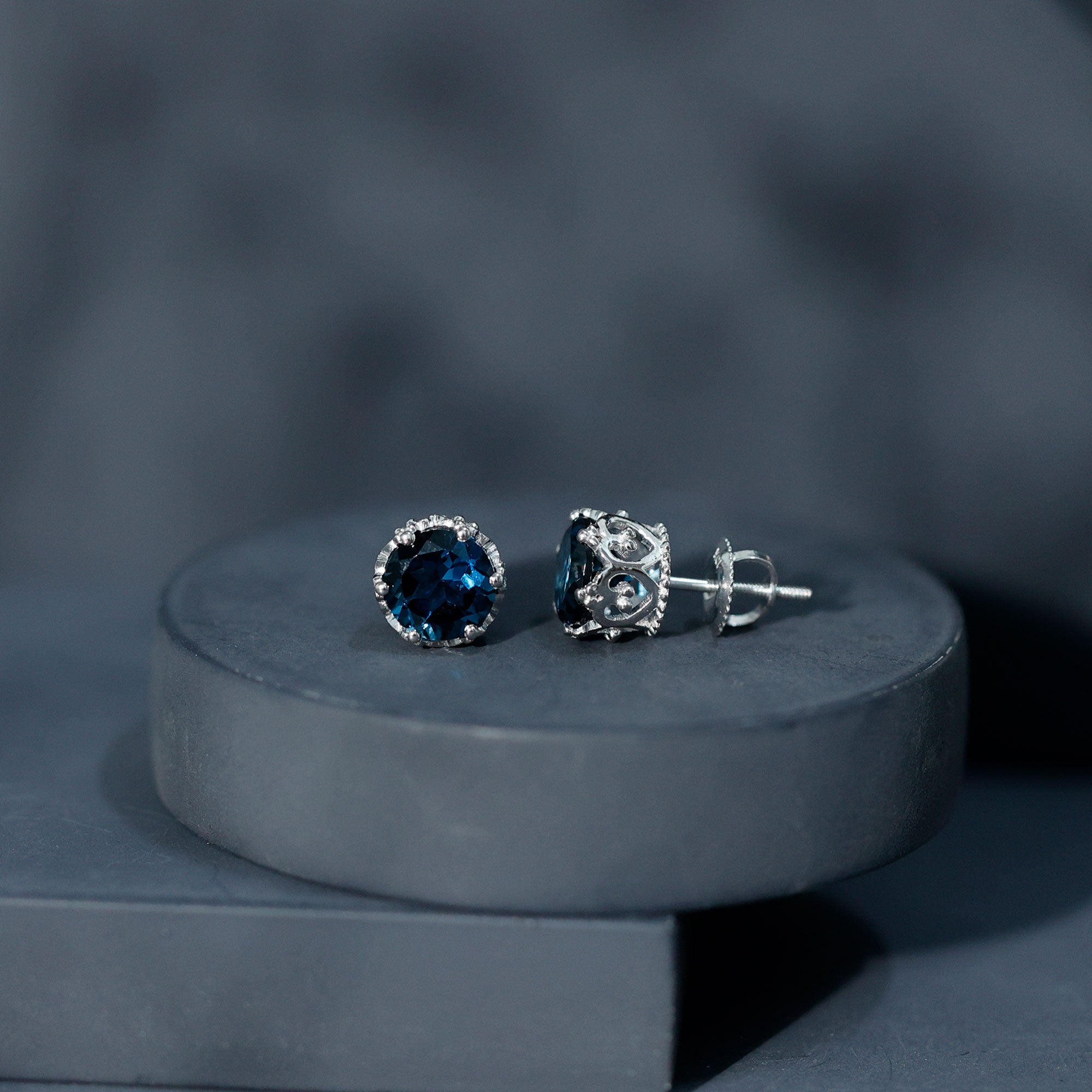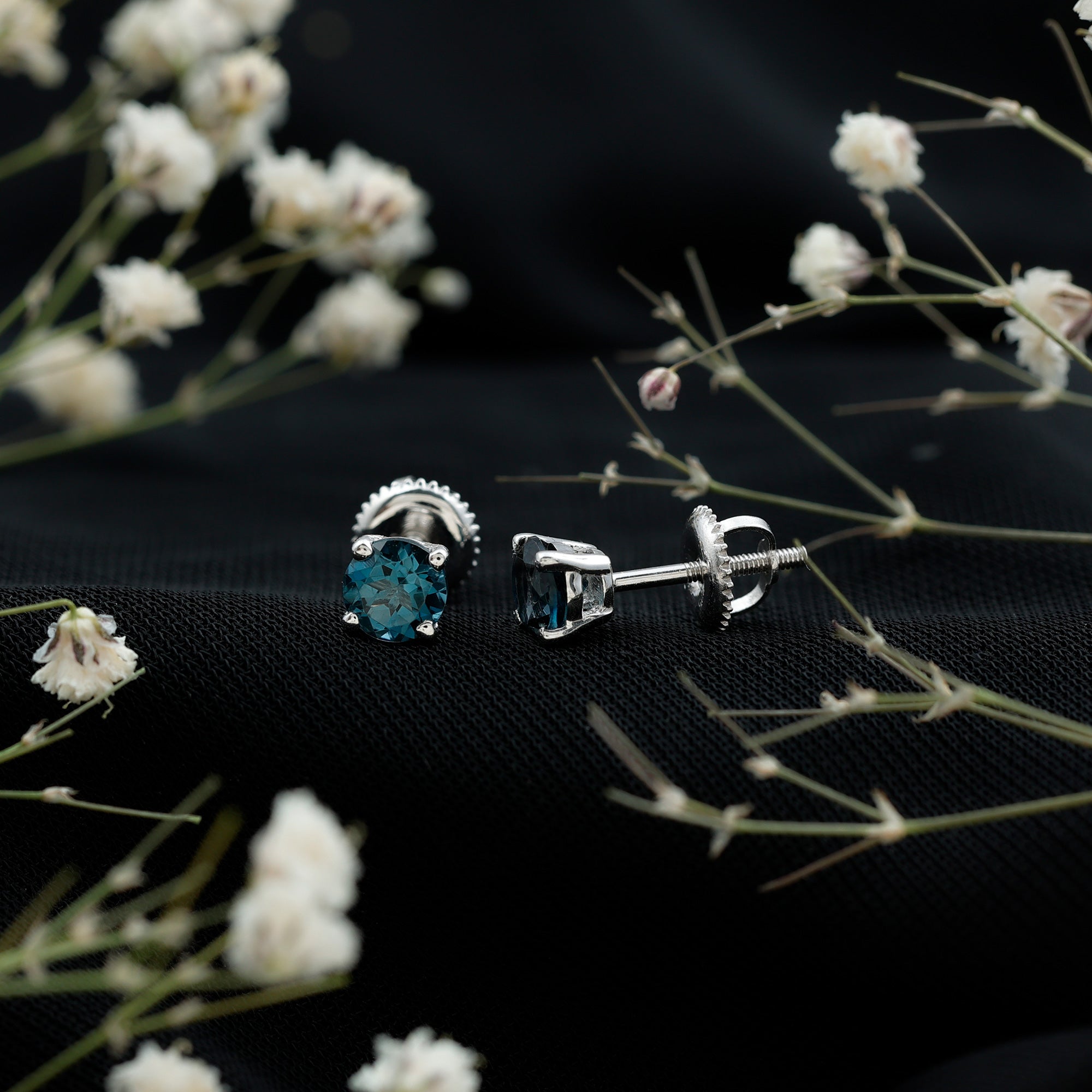 London Blue Topaz Studs: - Every London blue topaz stud earring, from round shape to cushion cut, gleams and displays sparkle from every angle. The simple and sophisticated appearance of earrings makes them an ideal piece of earrings for those who seek versatility in their accessories. Being durable studs, they are cherished for years, and the stud's sparkle will endure undiminished.