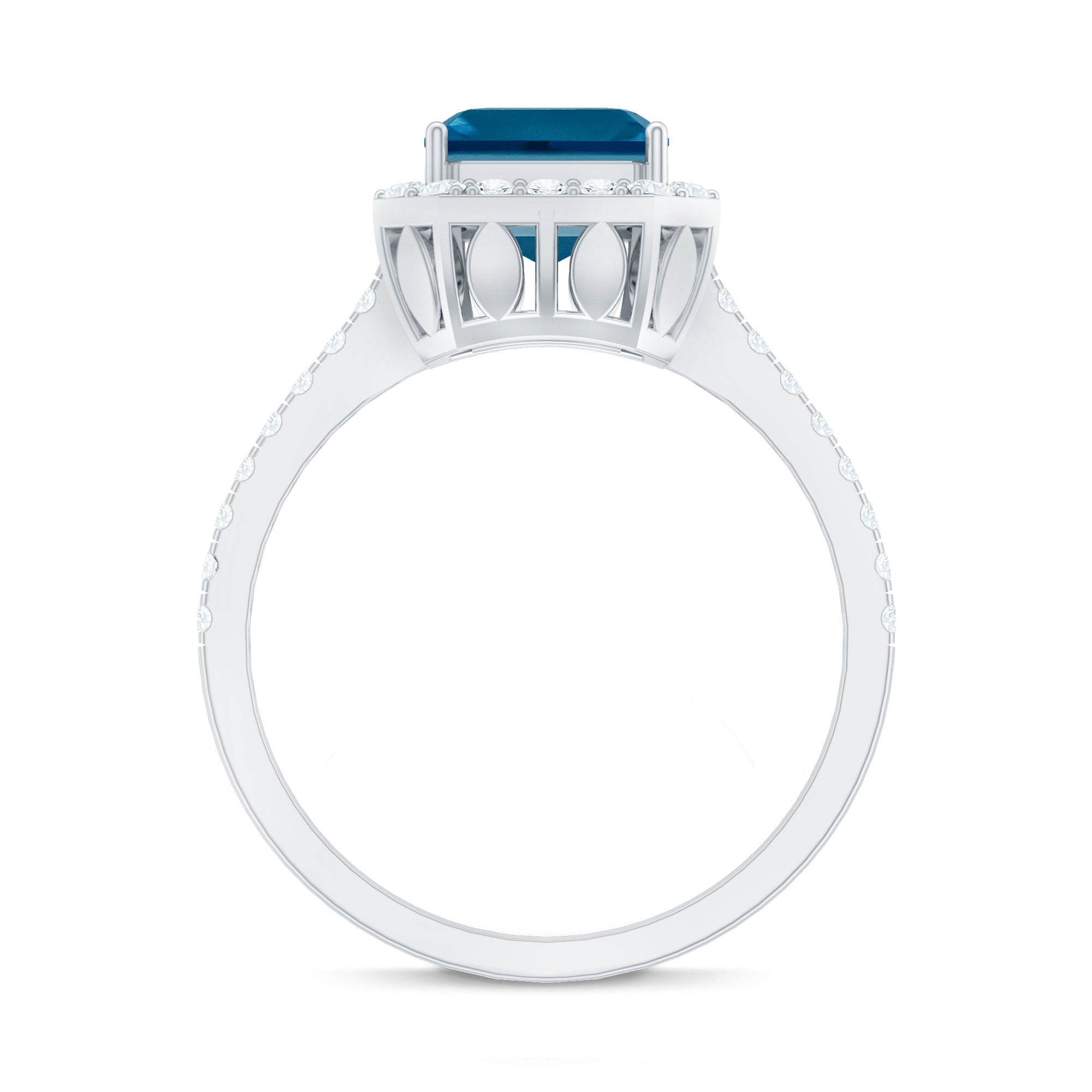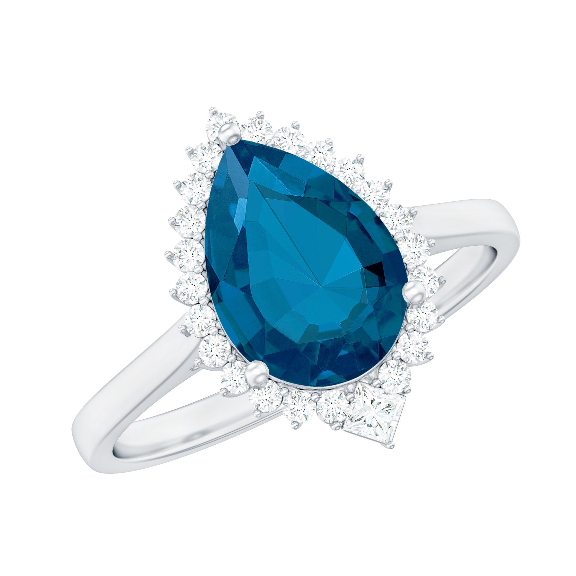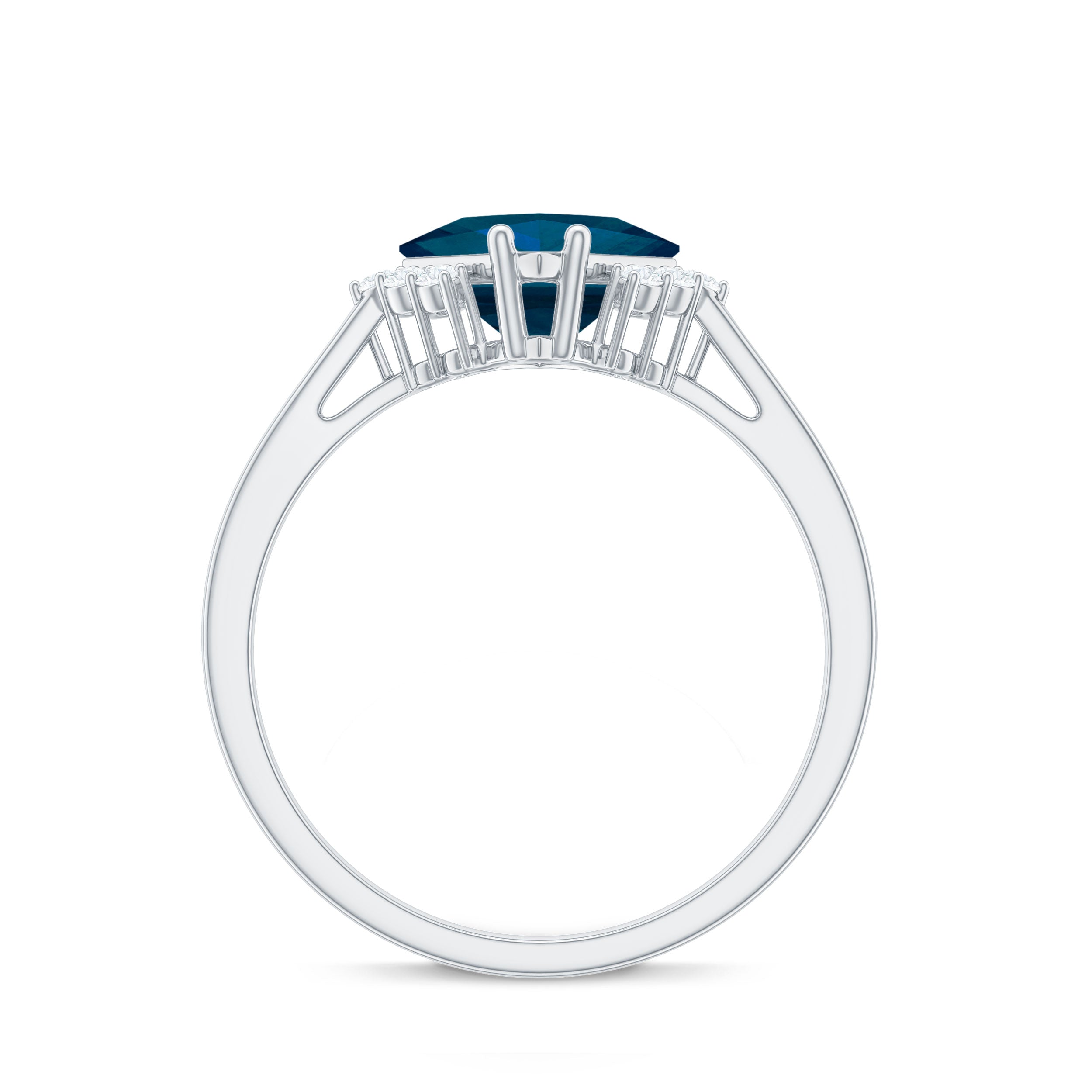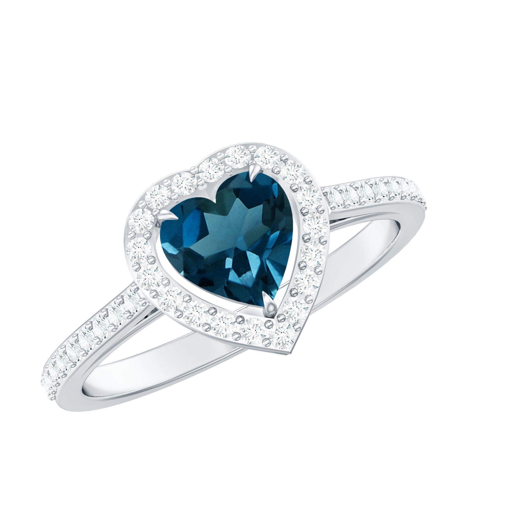 A unique and edgy take to the classic Solitaire style, the Center Stone of London Blue Topaz here is adorned by a shimmering row of Diamond/Moissanite all around. The Halo doesn’t just lend more character to the Blue Topaz Ring, but also deceives your eyes by making your Topaz appear slightly bigger in size. It is the go-to style for those who fancy a London Blue Topaz and Diamond Ring.