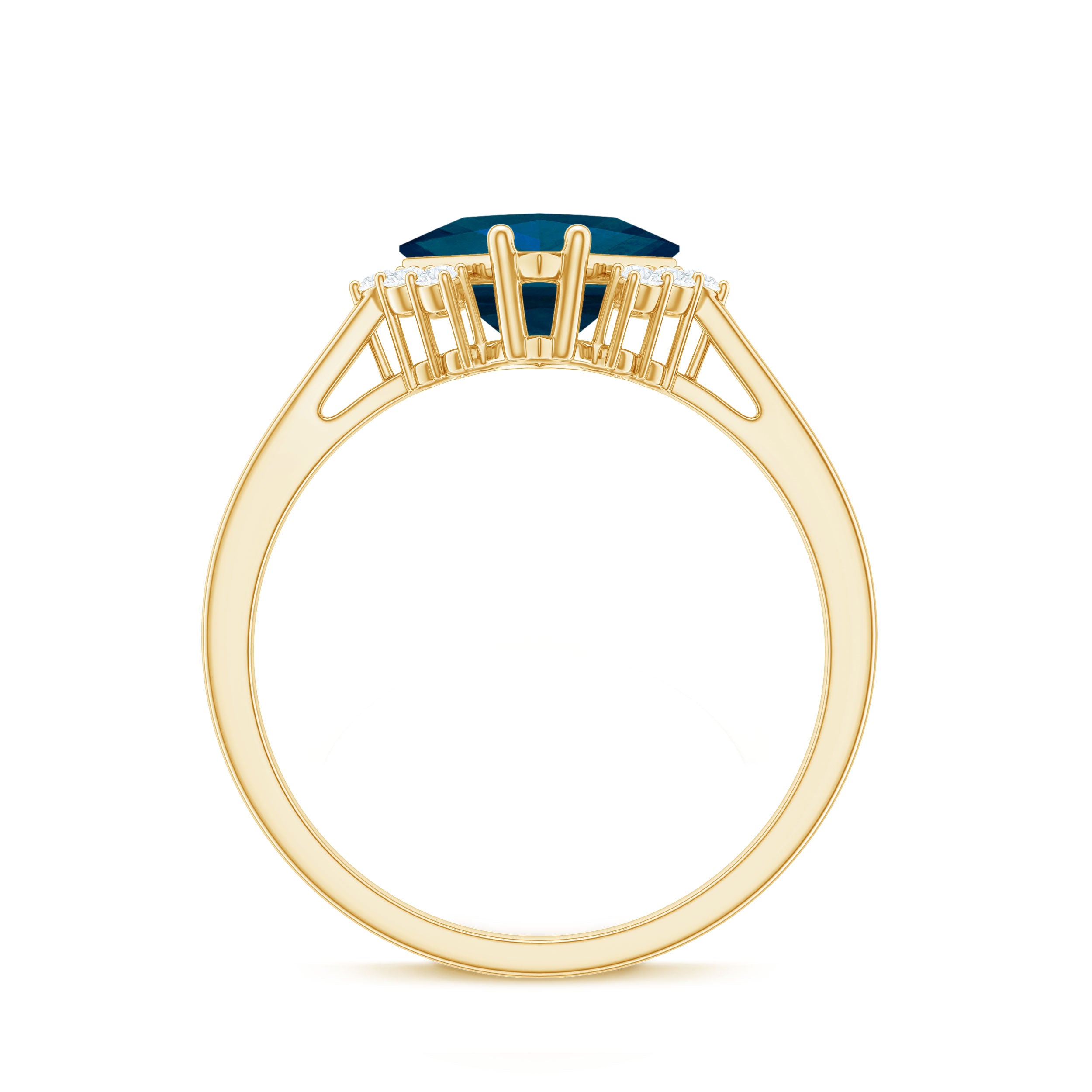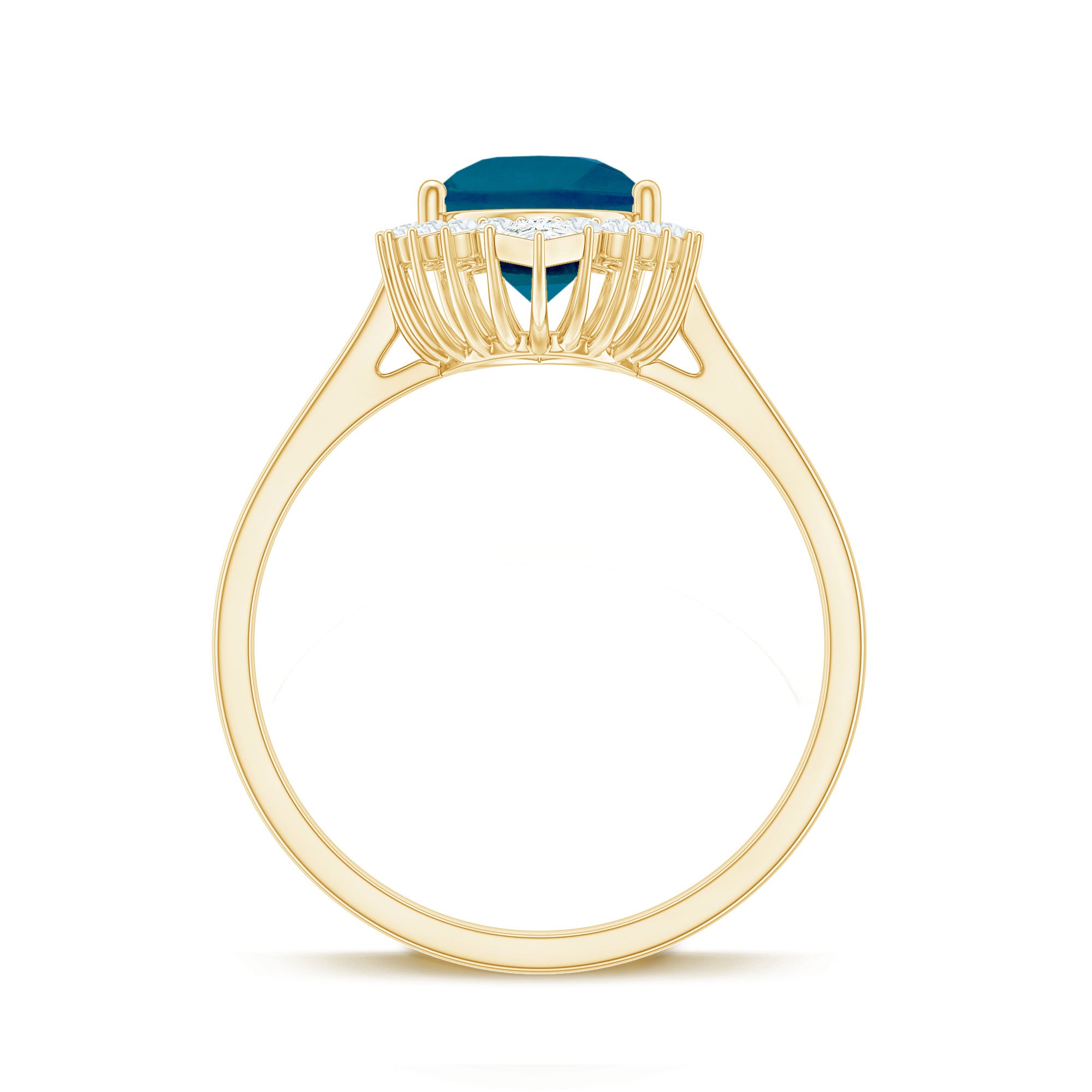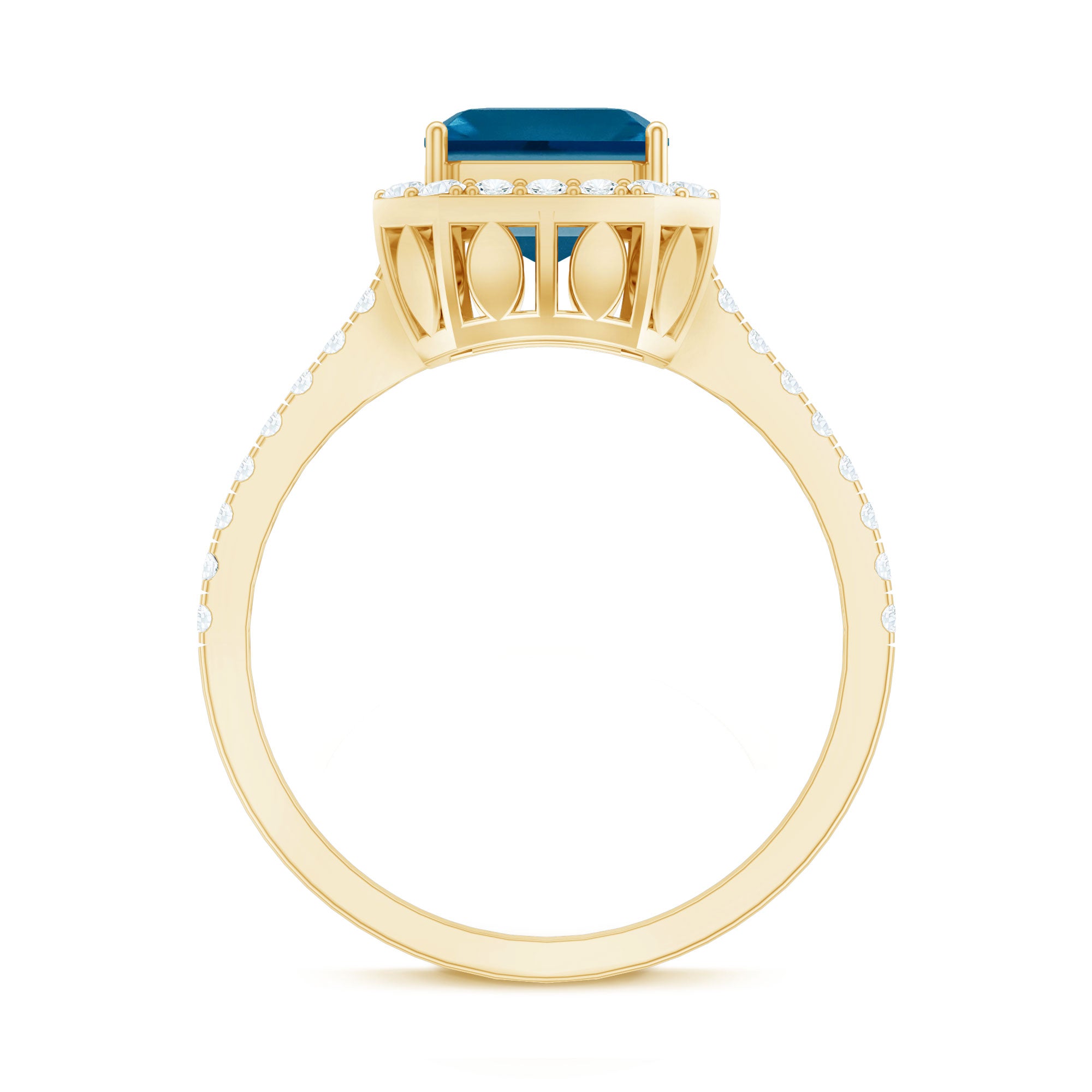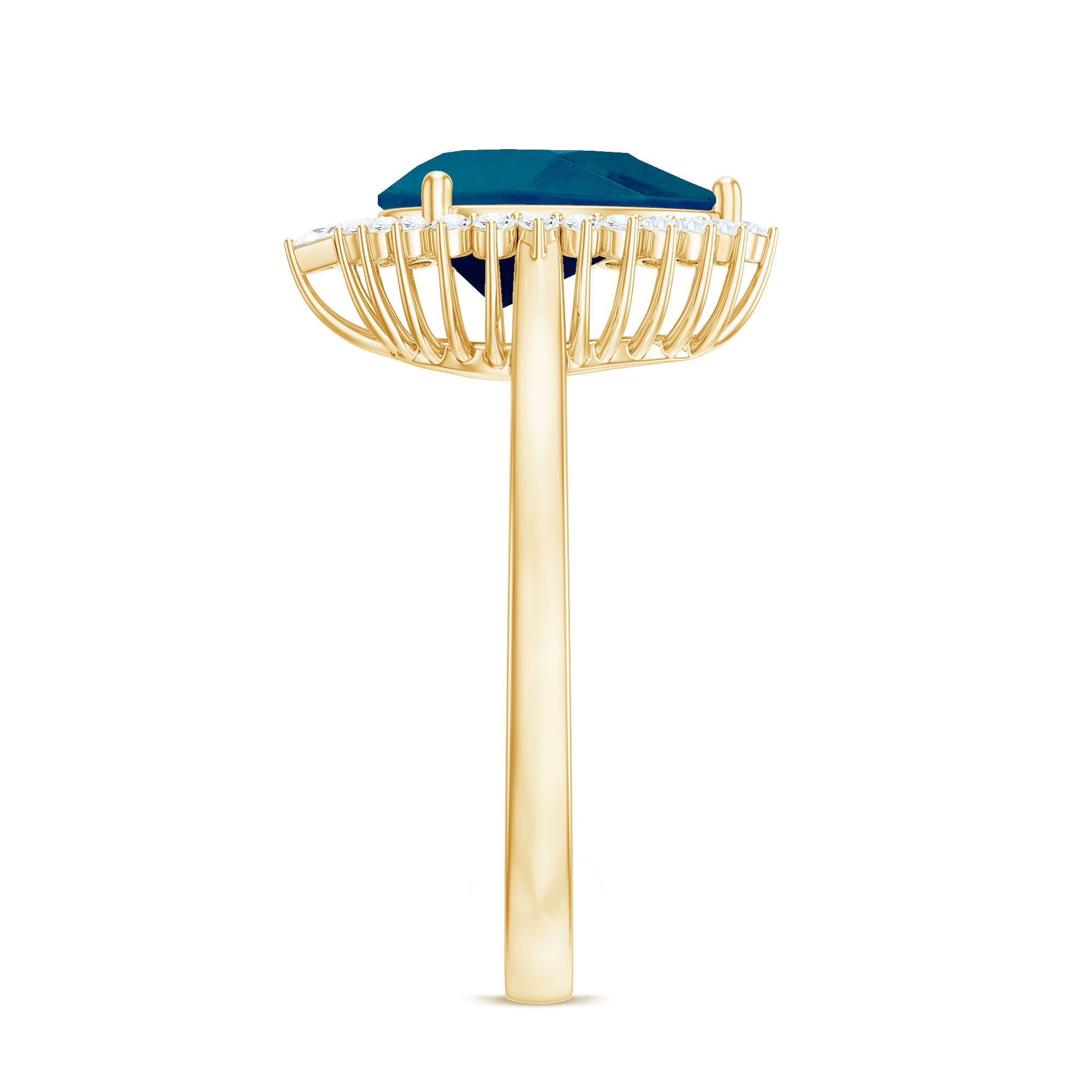 A unique and edgy take to the classic Solitaire style, the Center Stone of London Blue Topaz here is adorned by a shimmering row of Diamond/Moissanite all around. The Halo doesn’t just lend more character to the Blue Topaz Ring, but also deceives your eyes by making your Topaz appear slightly bigger in size. It is the go-to style for those who fancy a London Blue Topaz and Diamond Ring.