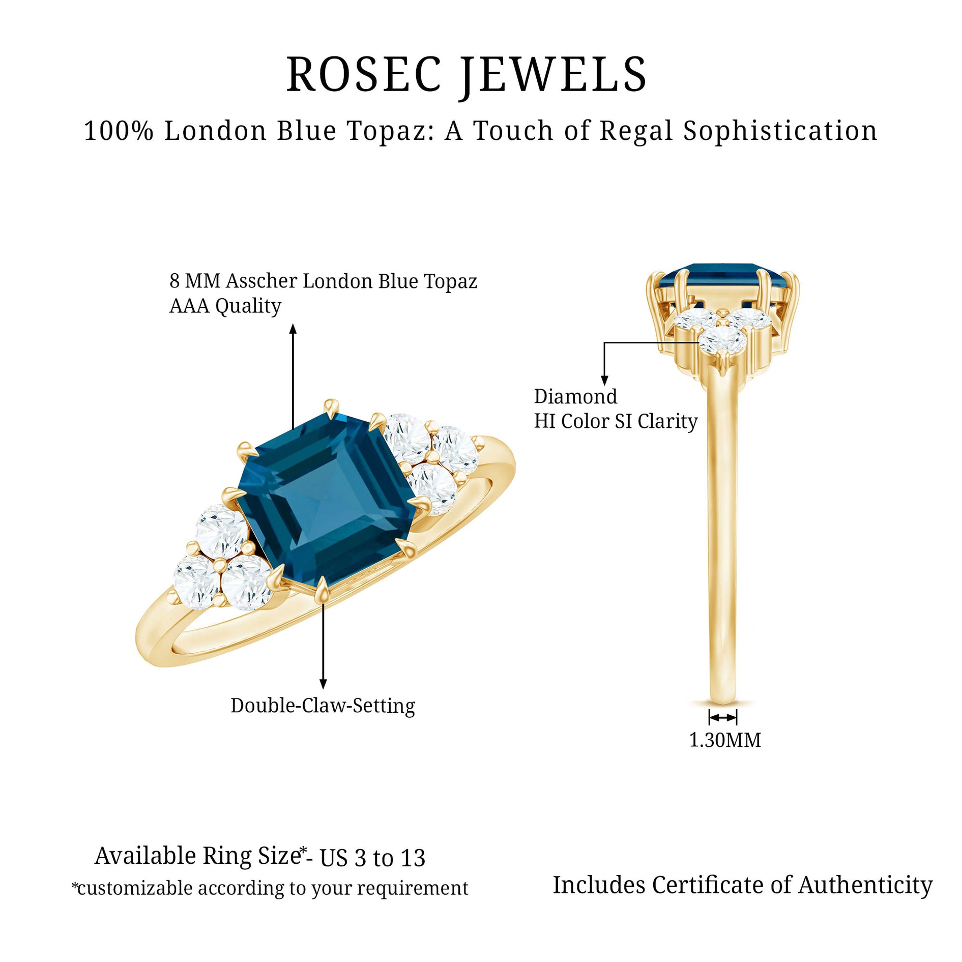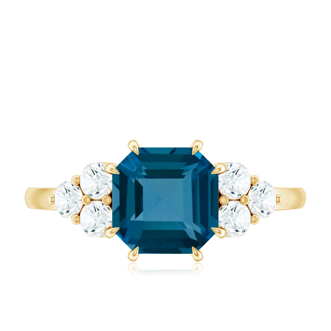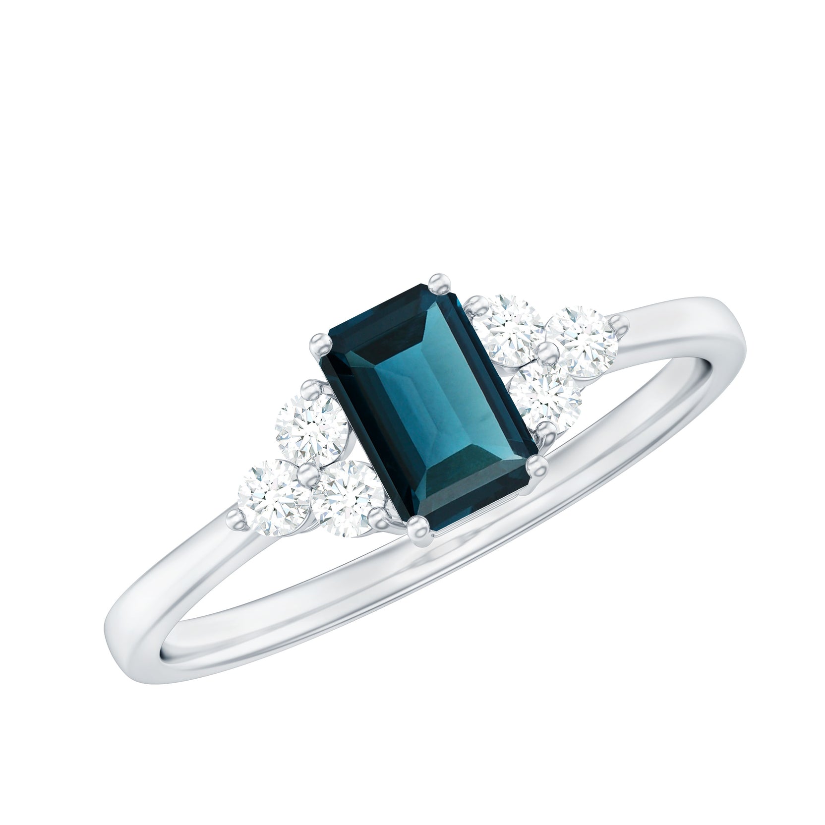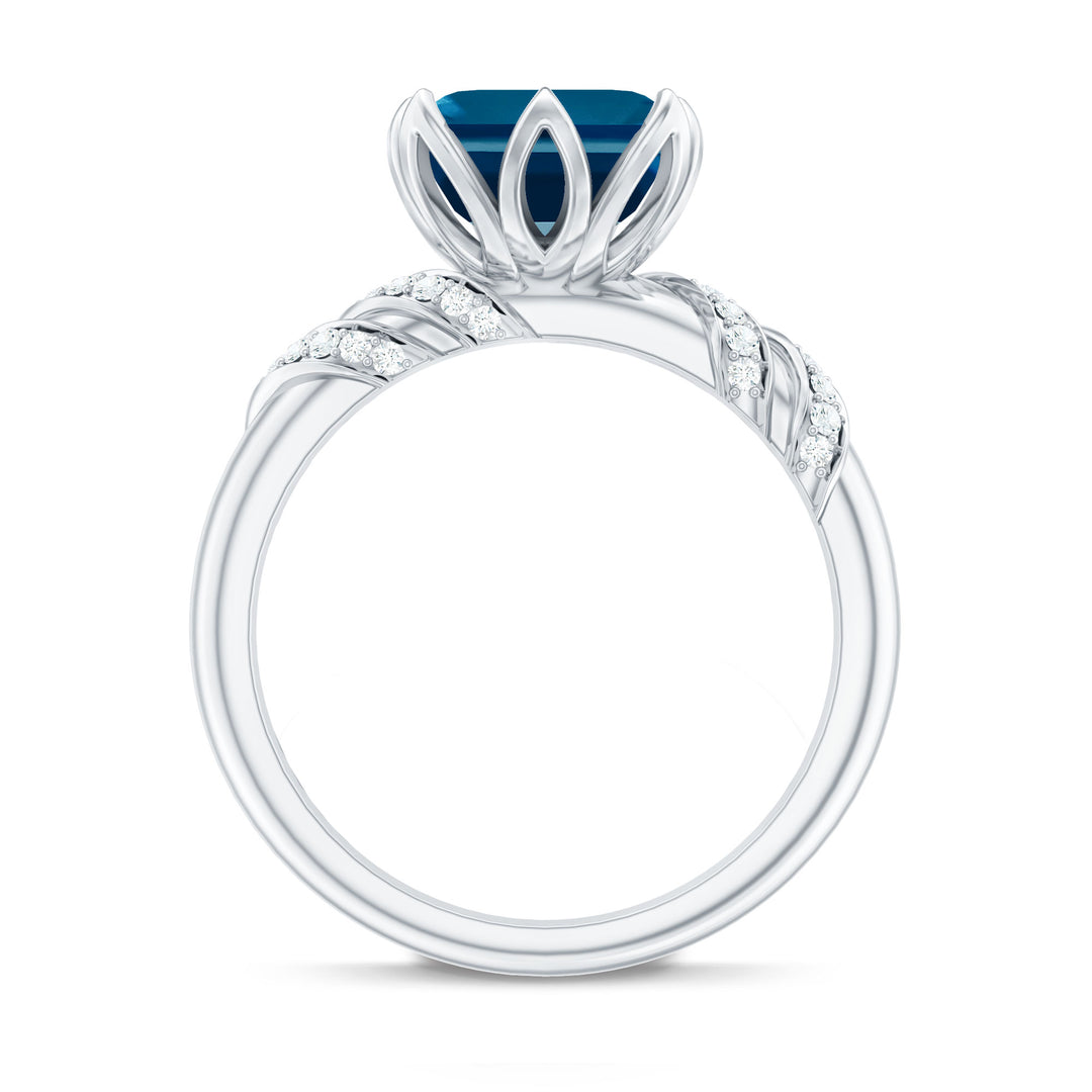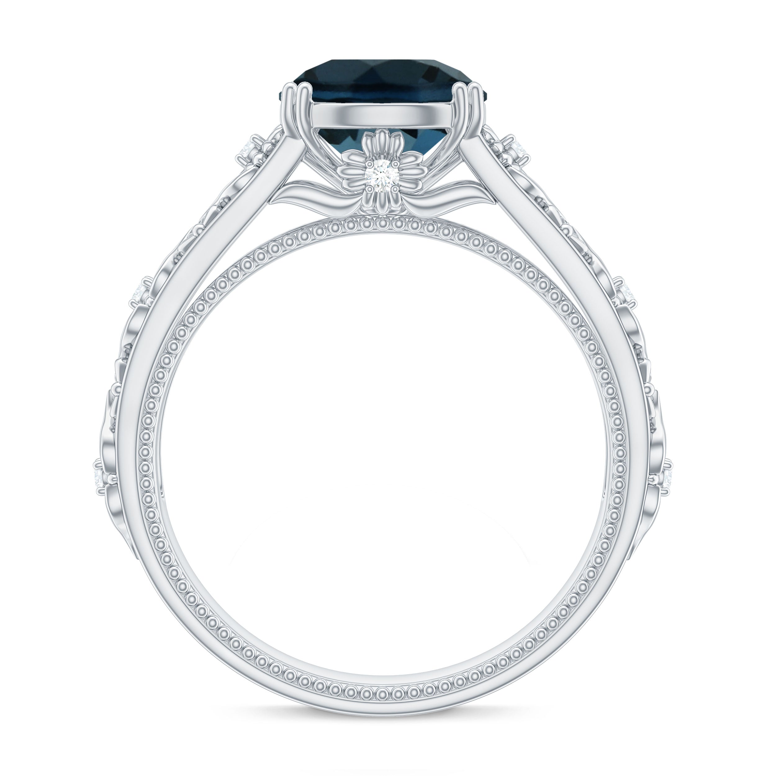 Popularized as the most flashy, flamboyant, and bold ring out there, this Cocktail Ring is adorned with an enormous Center-Stone of London Blue Topaz. It is further accentuated with eye-striking patterns of diamond/moissanite around or as side stones. A London Blue Topaz Cocktail Ring is meant to make a statement with floral and other attention-catching motifs.