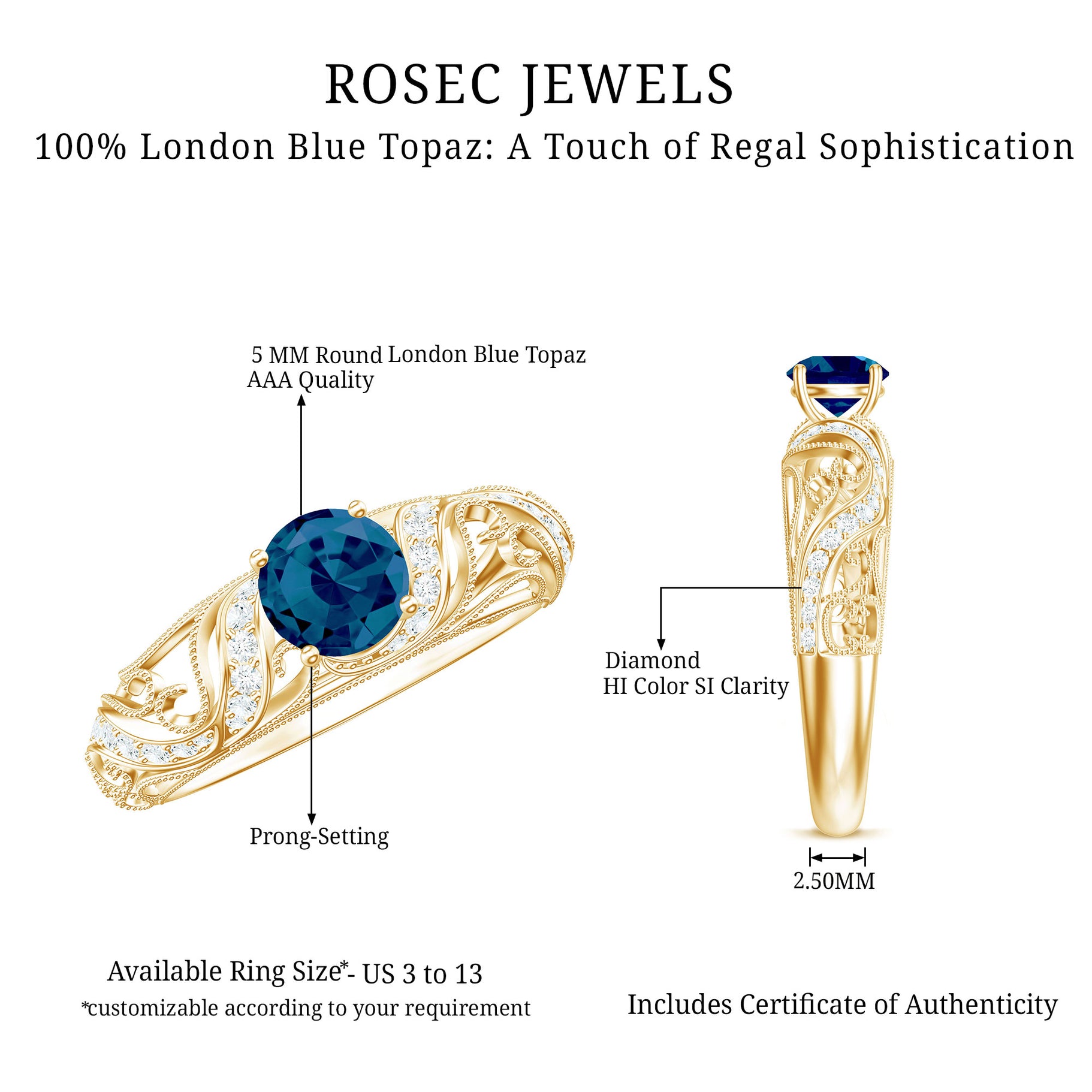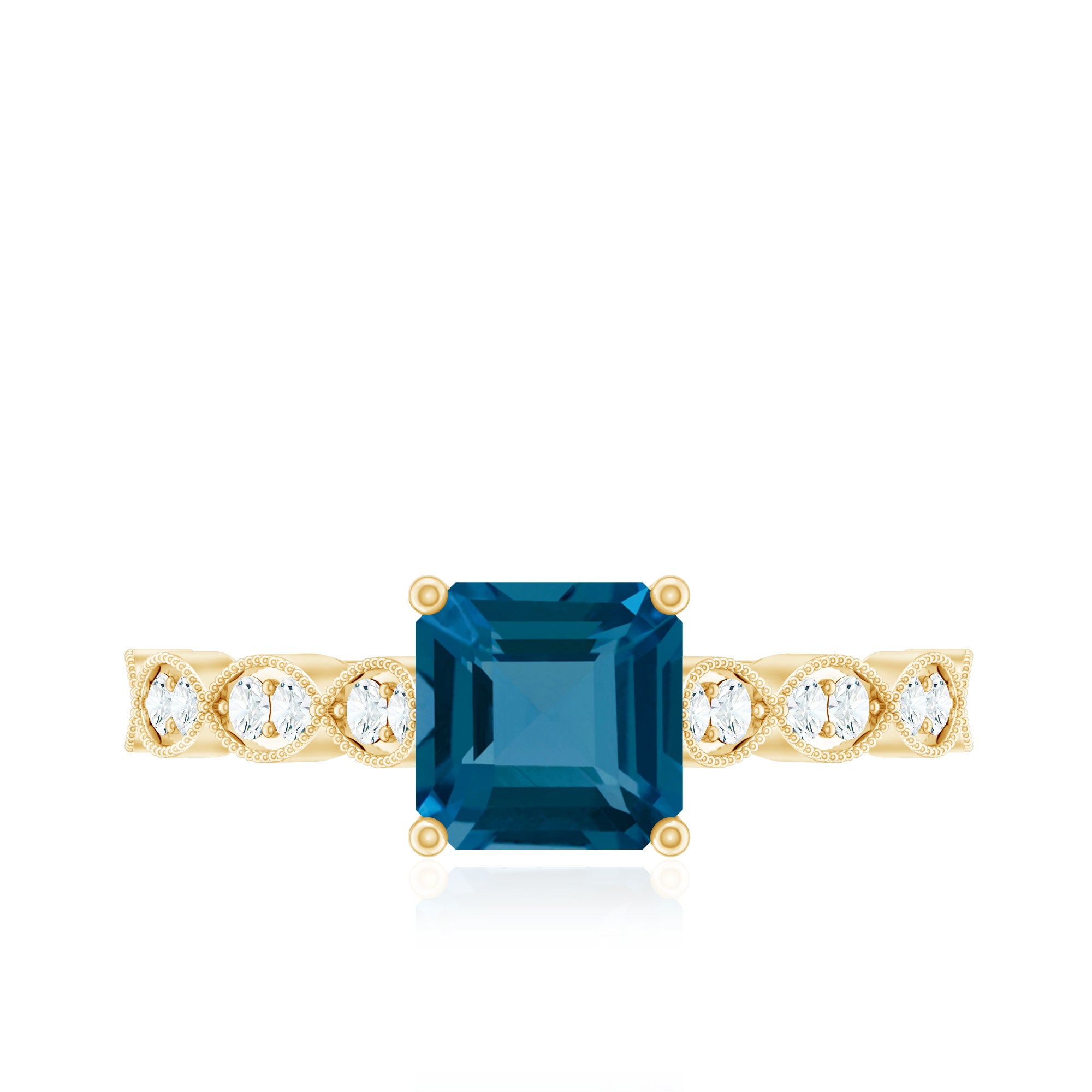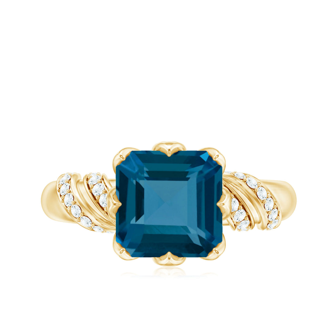 Turning back time, a Vintage London Blue Topaz Ring boasts iconic designs from Edwardian, Victorian, and Art-Deco Eras. It is ornately crafted with Milgrain, filigree, and other retro engravings along with abstract patterns that ooze an old-world vibe. A Vintage-inspired London Blue Topaz Engagement Ring is preferred by those that like an emblem of love that connects with a historic story.