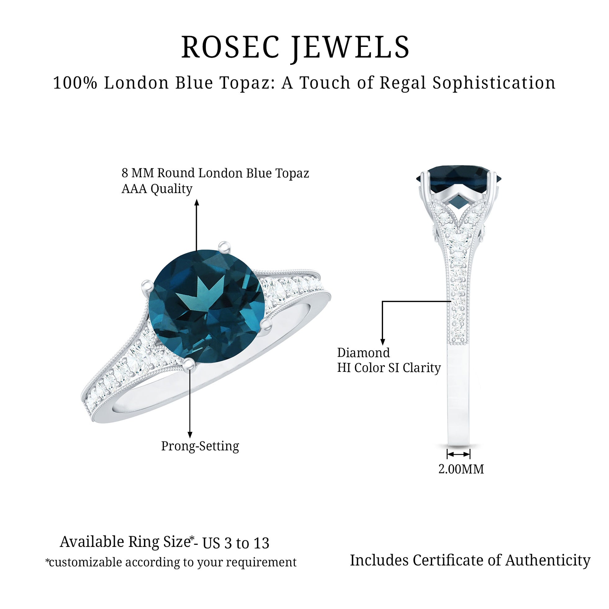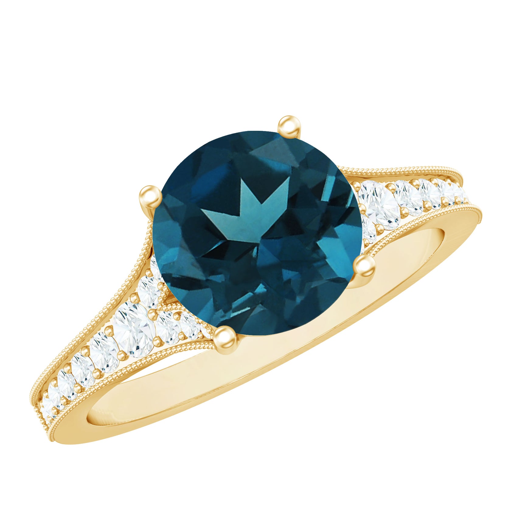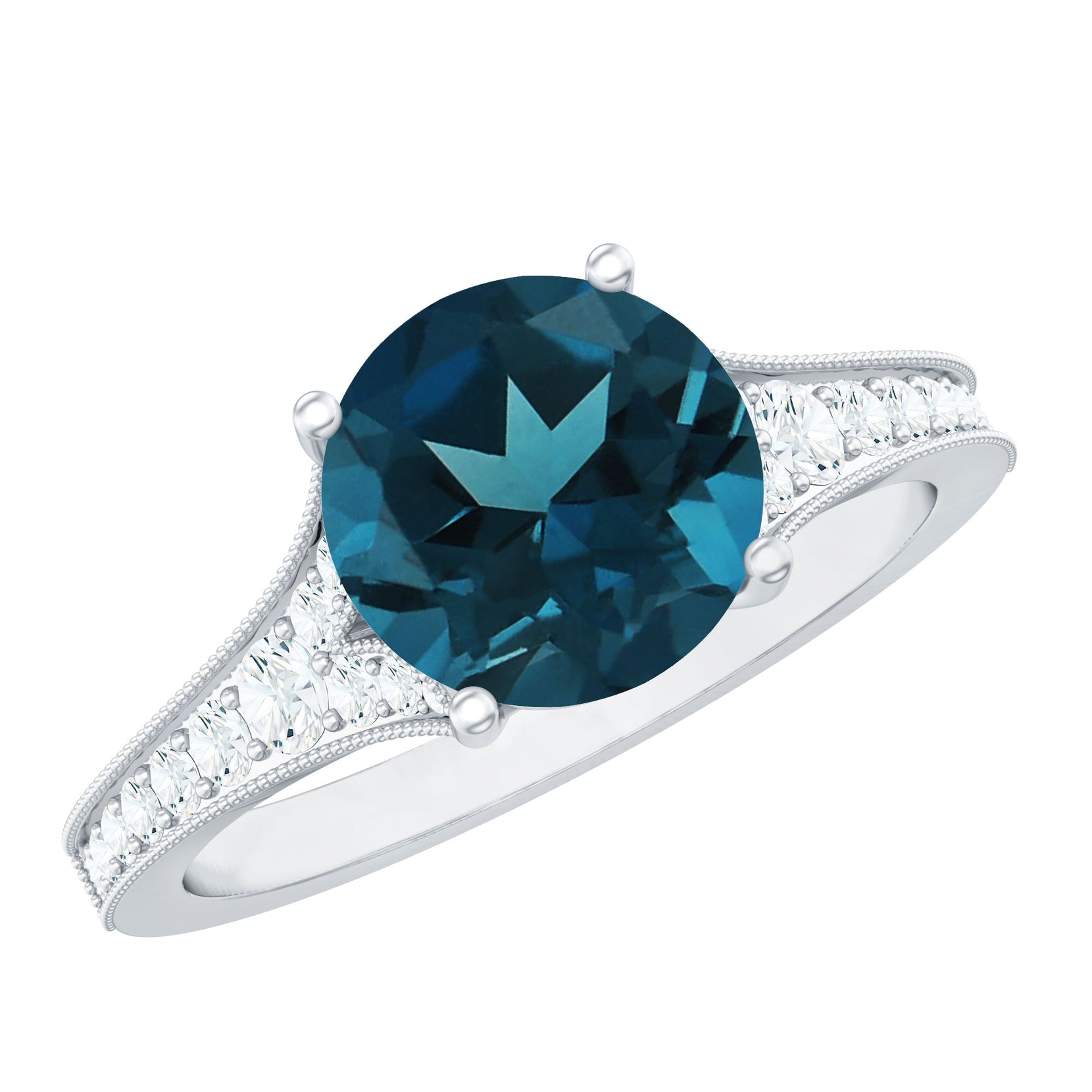 Turning back time, a Vintage London Blue Topaz Ring boasts iconic designs from Edwardian, Victorian, and Art-Deco Eras. It is ornately crafted with Milgrain, filigree, and other retro engravings along with abstract patterns that ooze an old-world vibe. A Vintage-inspired London Blue Topaz Engagement Ring is preferred by those that like an emblem of love that connects with a historic story.