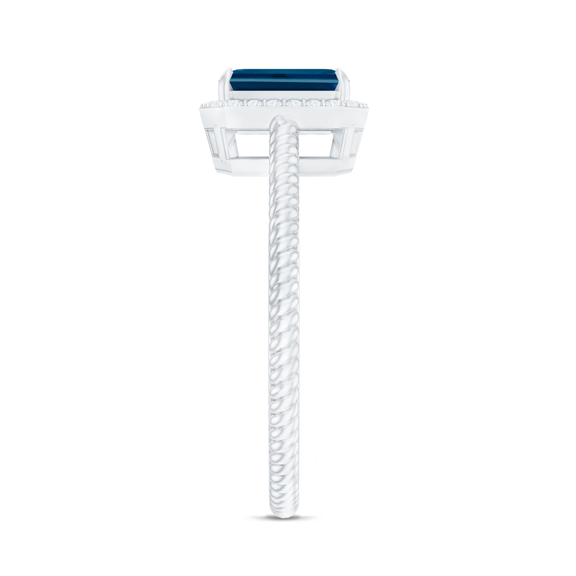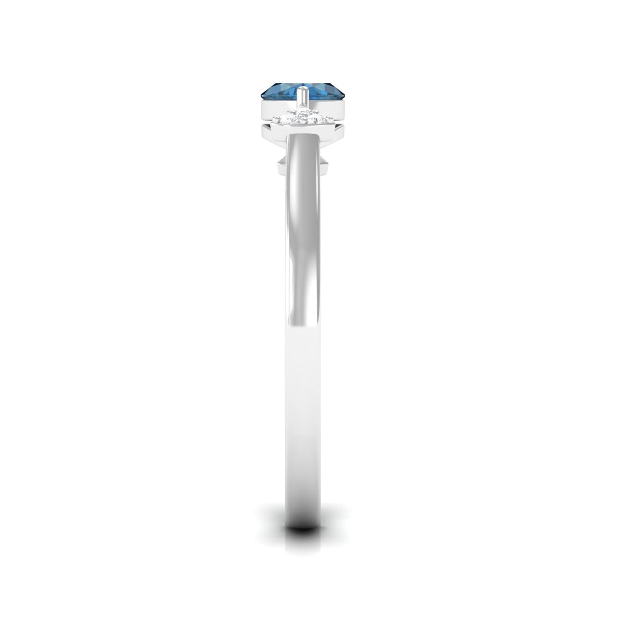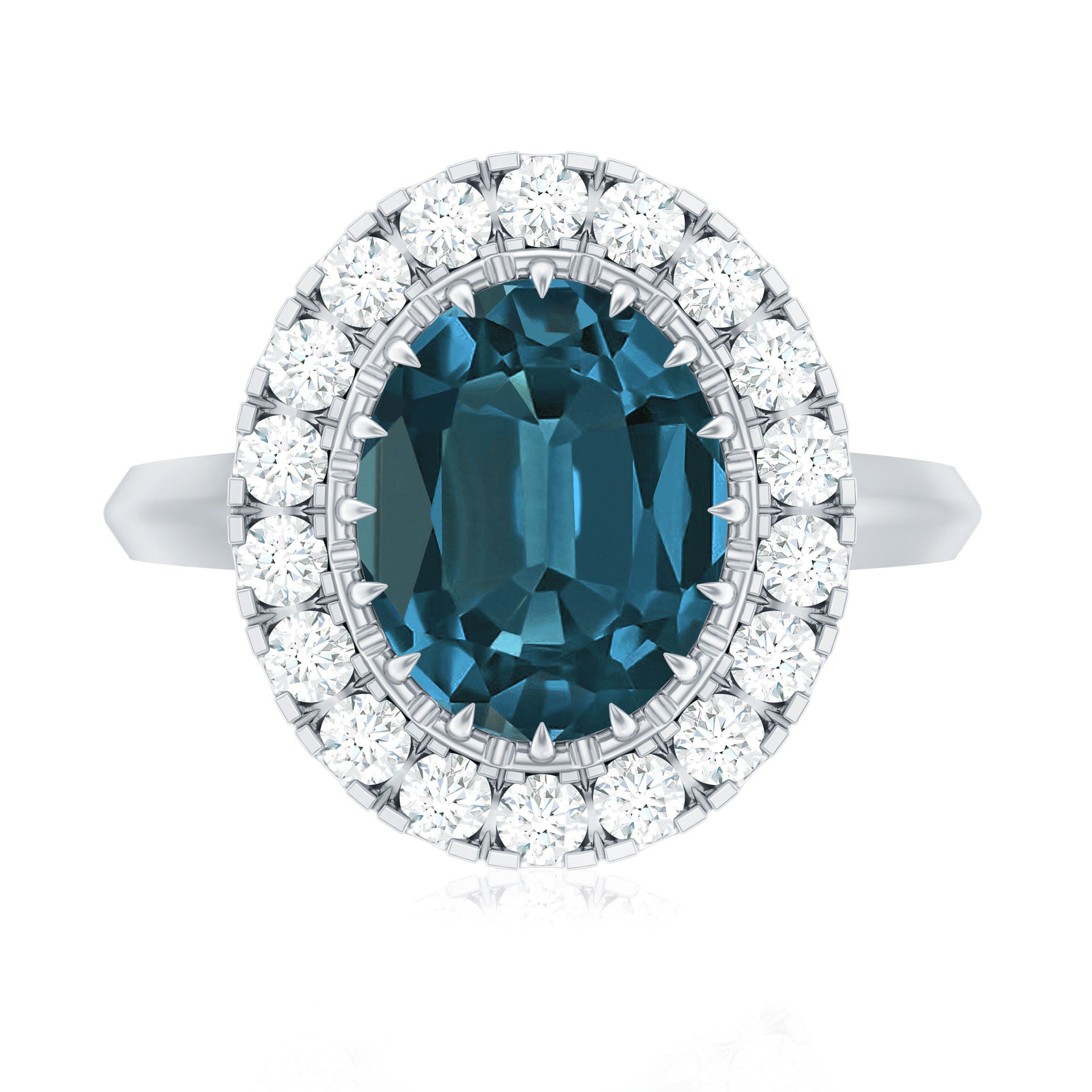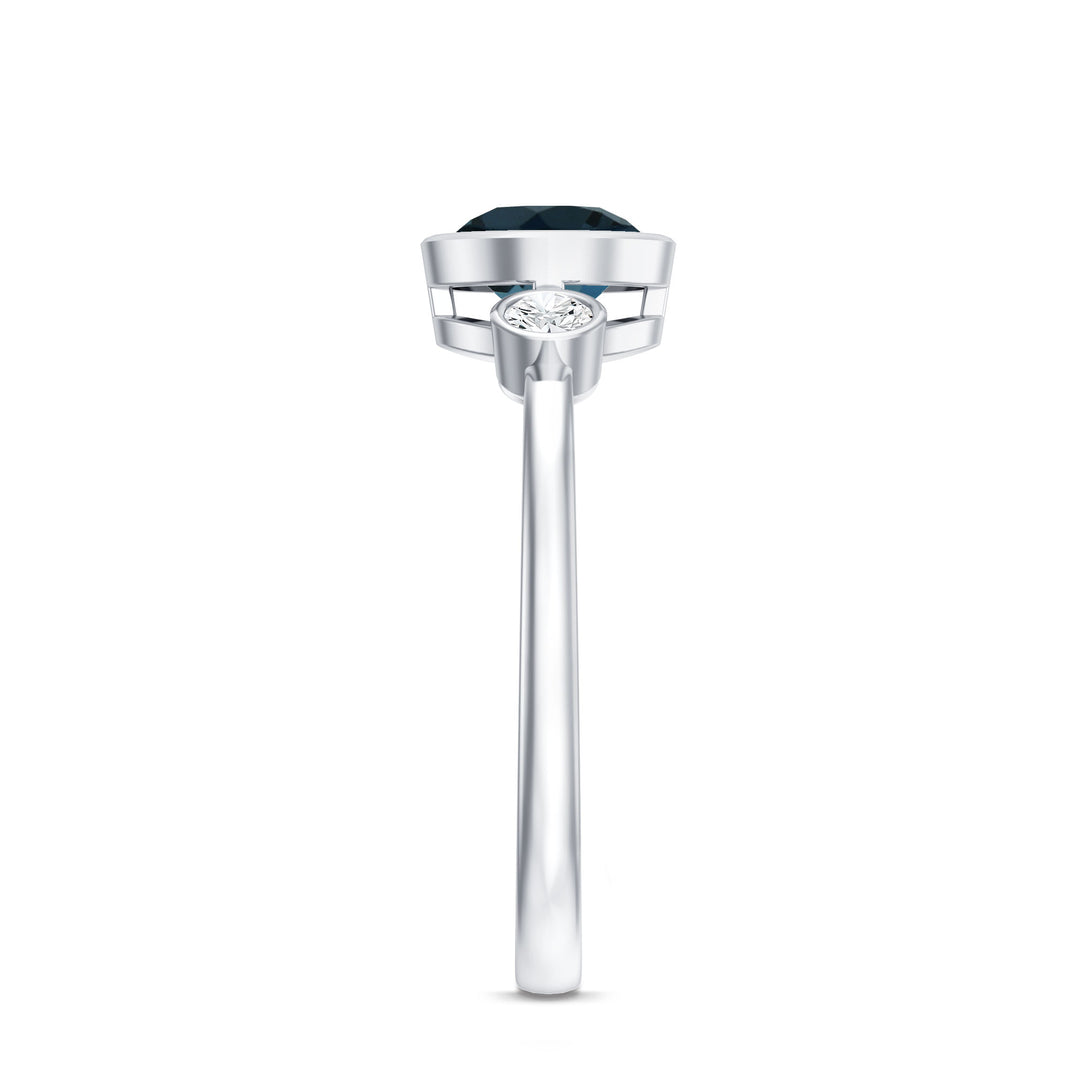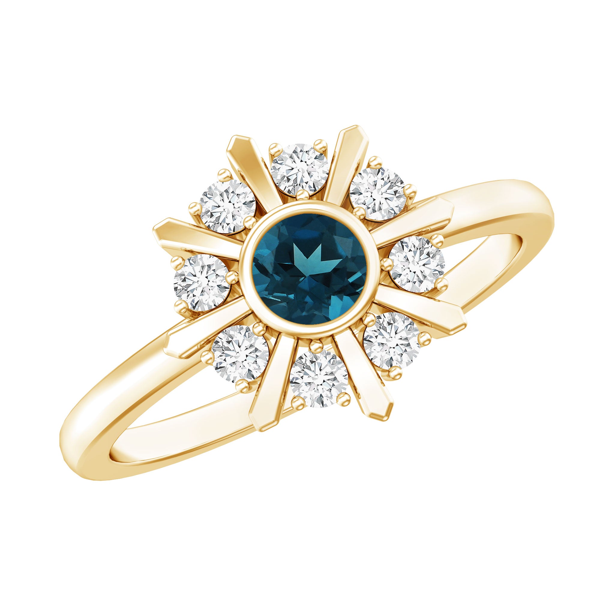 A unique and edgy take to the classic Solitaire style, the Center Stone of London Blue Topaz here is adorned by a shimmering row of Diamond/Moissanite all around. The Halo doesn’t just lend more character to the Blue Topaz Ring, but also deceives your eyes by making your Topaz appear slightly bigger in size. It is the go-to style for those who fancy a London Blue Topaz and Diamond Ring.