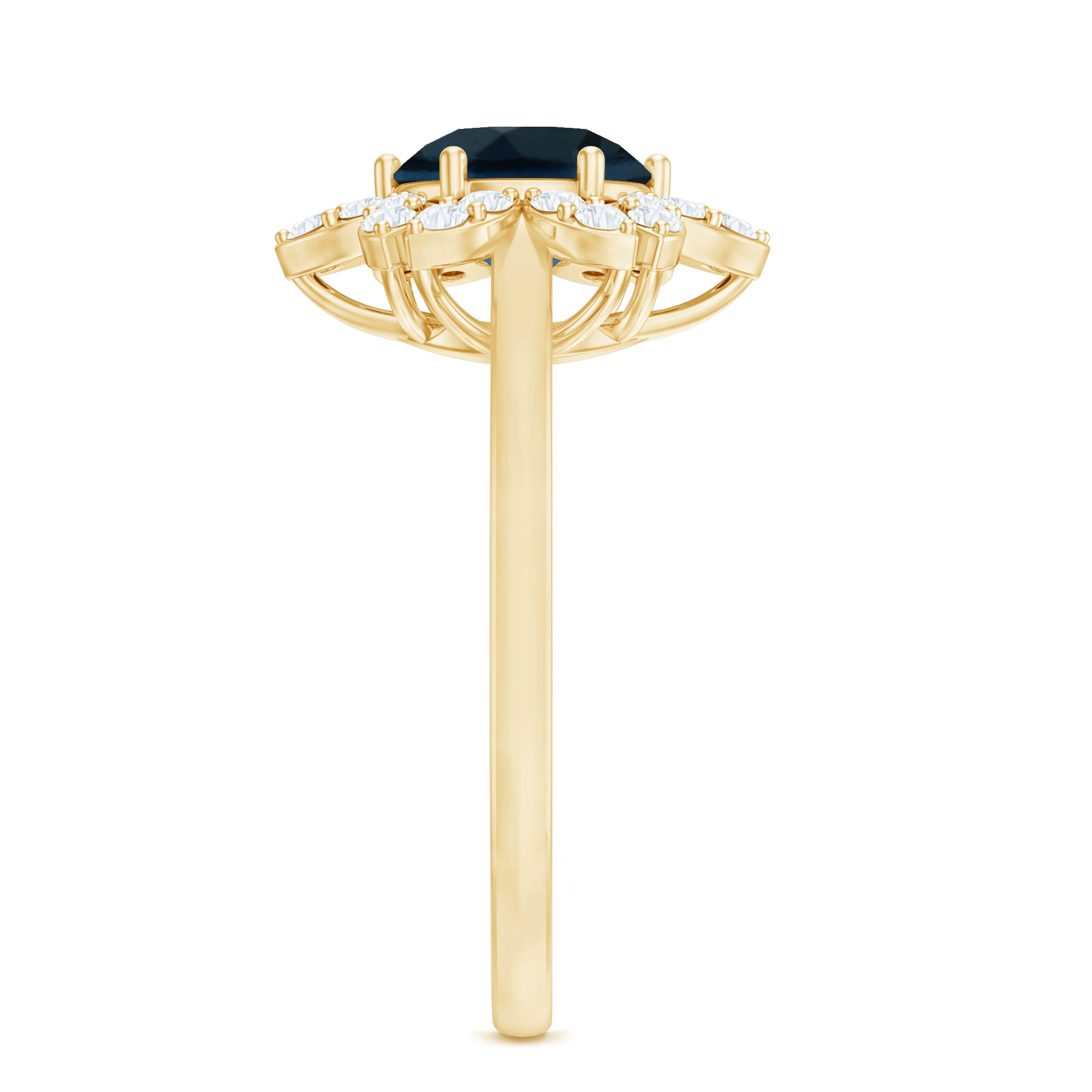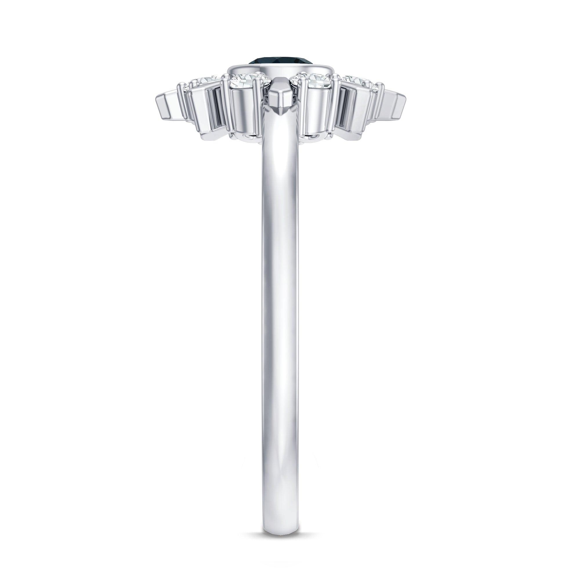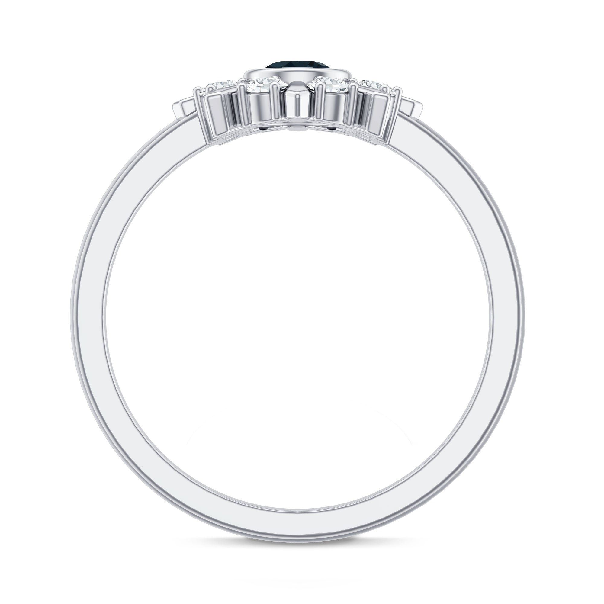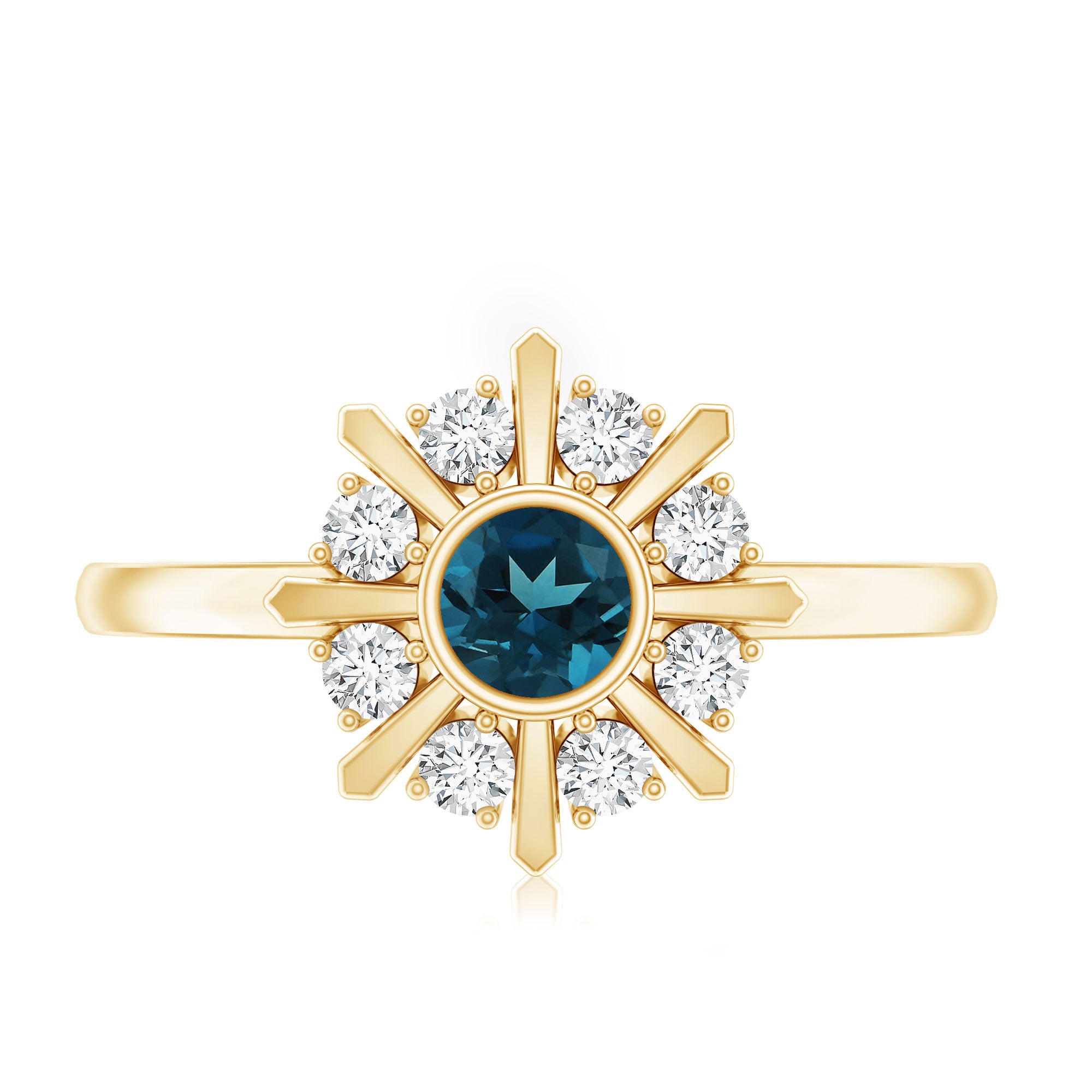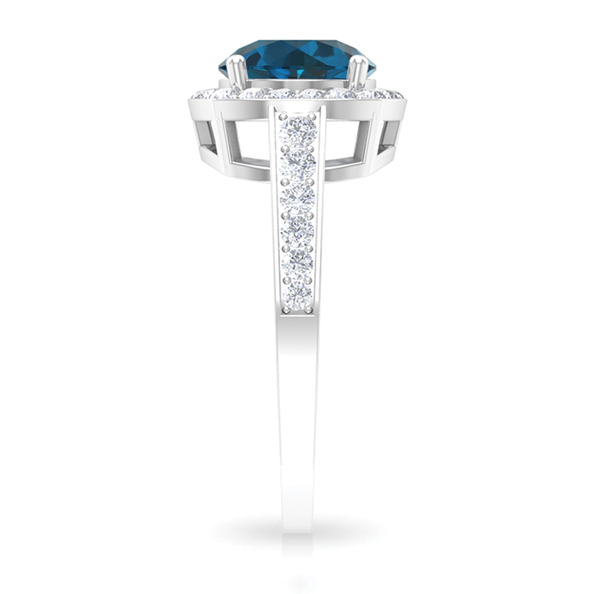 A unique and edgy take to the classic Solitaire style, the Center Stone of London Blue Topaz here is adorned by a shimmering row of Diamond/Moissanite all around. The Halo doesn’t just lend more character to the Blue Topaz Ring, but also deceives your eyes by making your Topaz appear slightly bigger in size. It is the go-to style for those who fancy a London Blue Topaz and Diamond Ring.