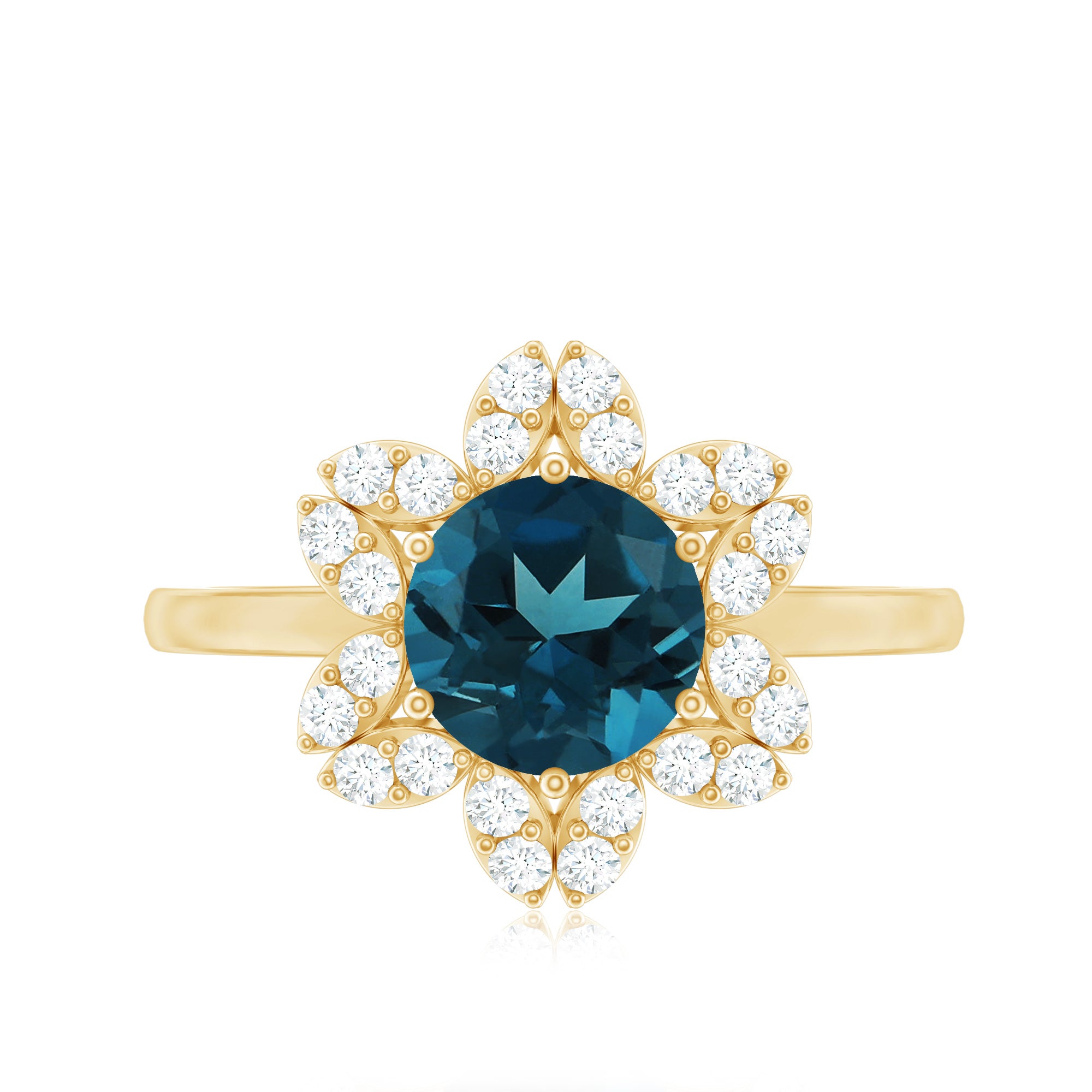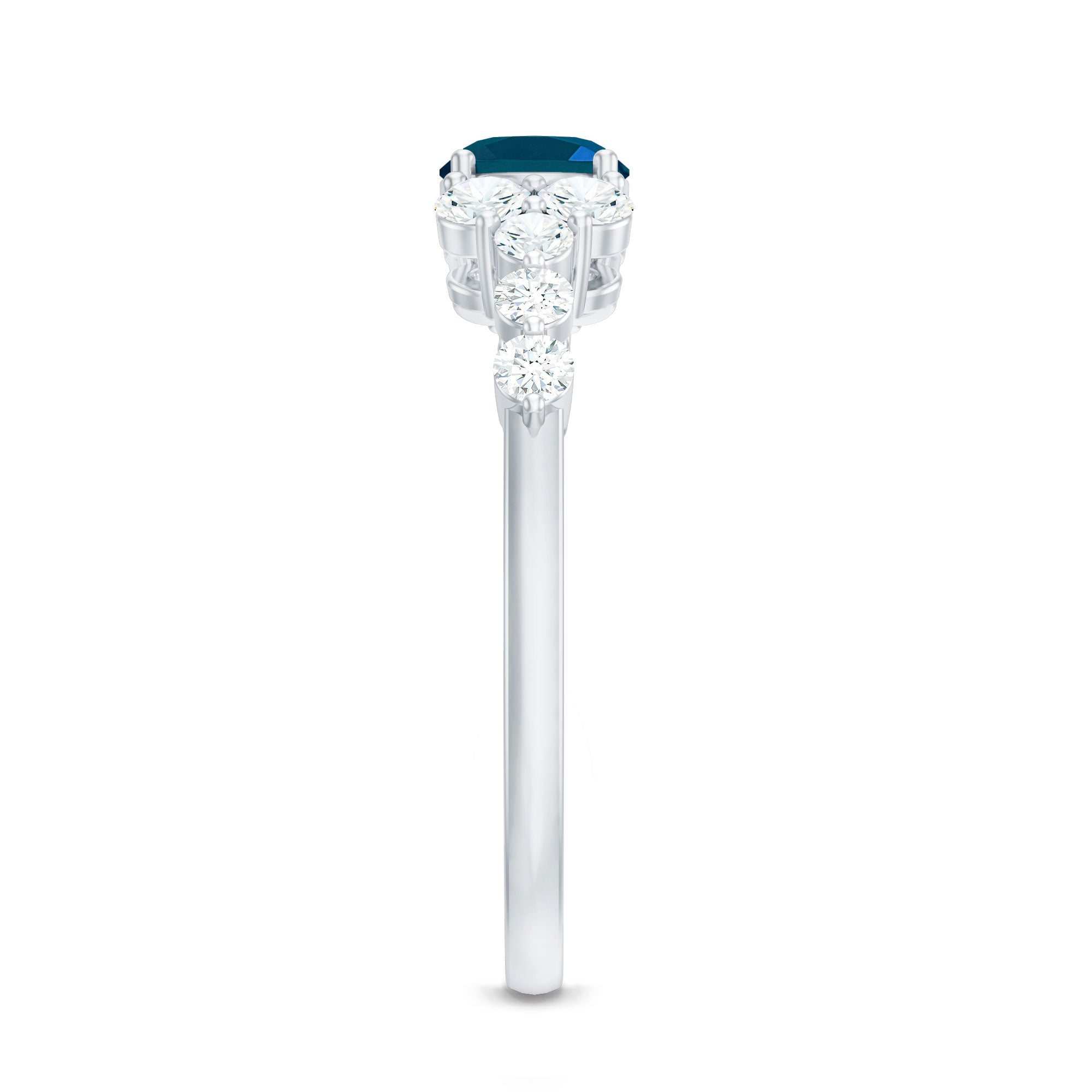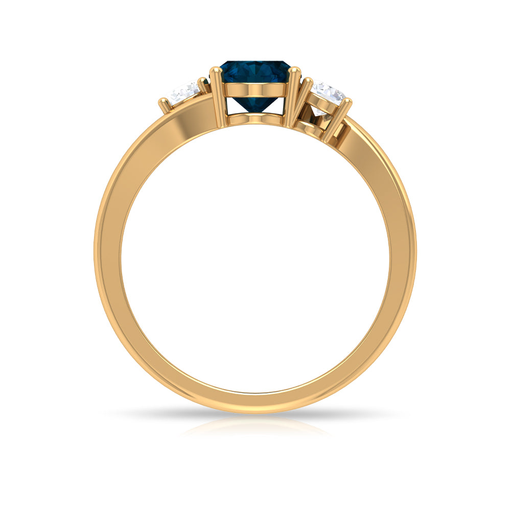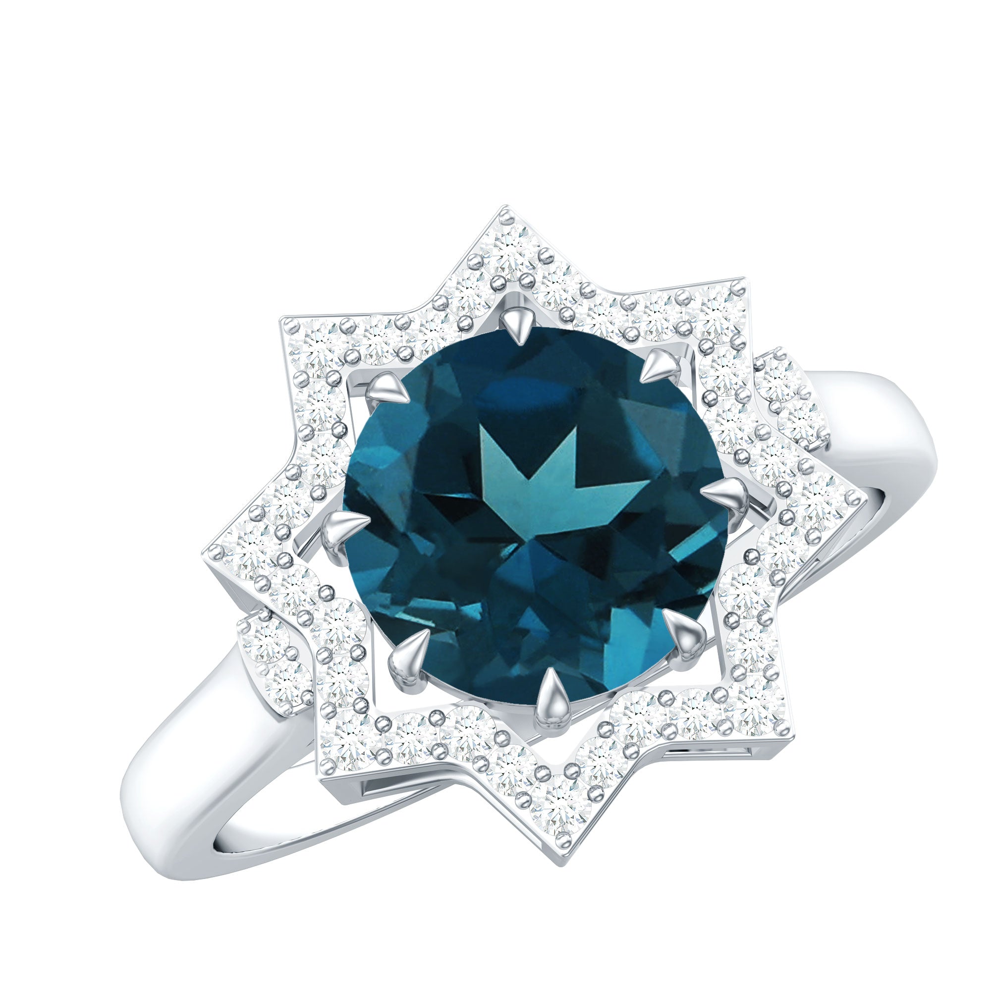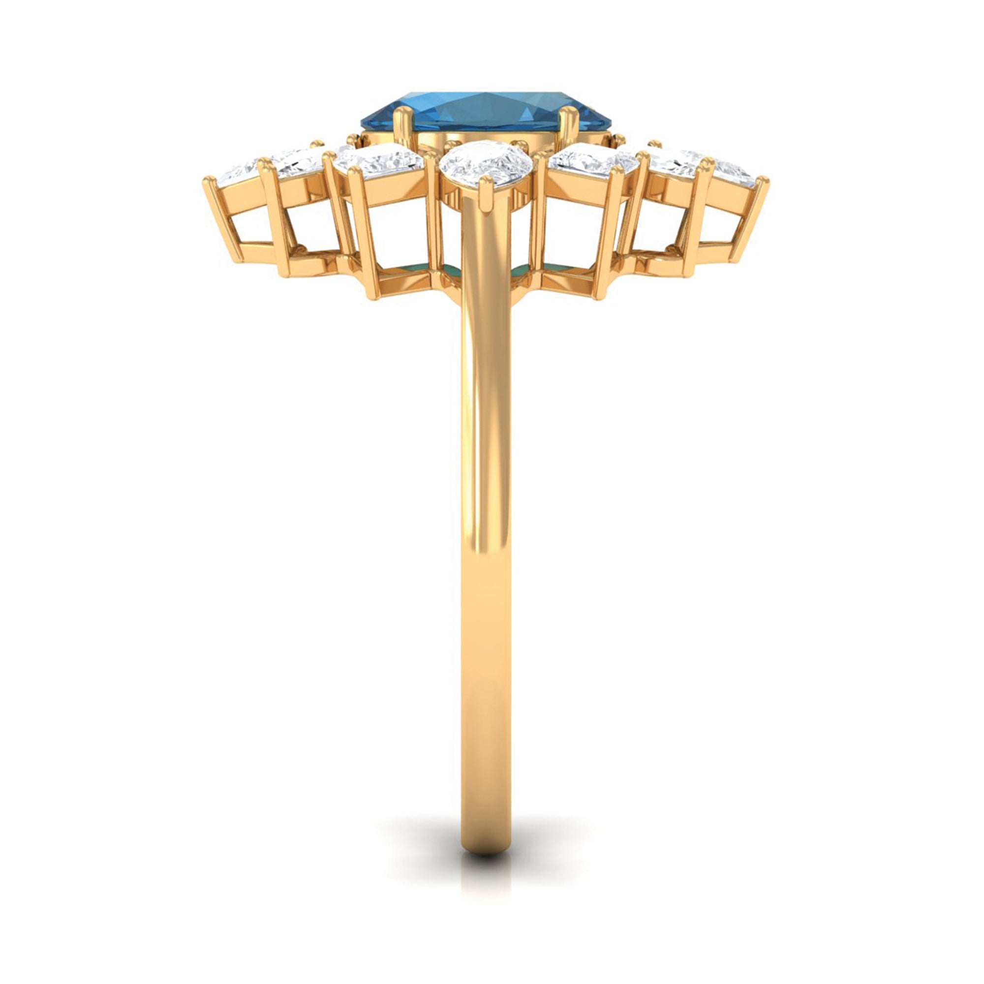 Popularized as the most flashy, flamboyant, and bold ring out there, this Cocktail Ring is adorned with an enormous Center-Stone of London Blue Topaz. It is further accentuated with eye-striking patterns of diamond/moissanite around or as side stones. A London Blue Topaz Cocktail Ring is meant to make a statement with floral and other attention-catching motifs.