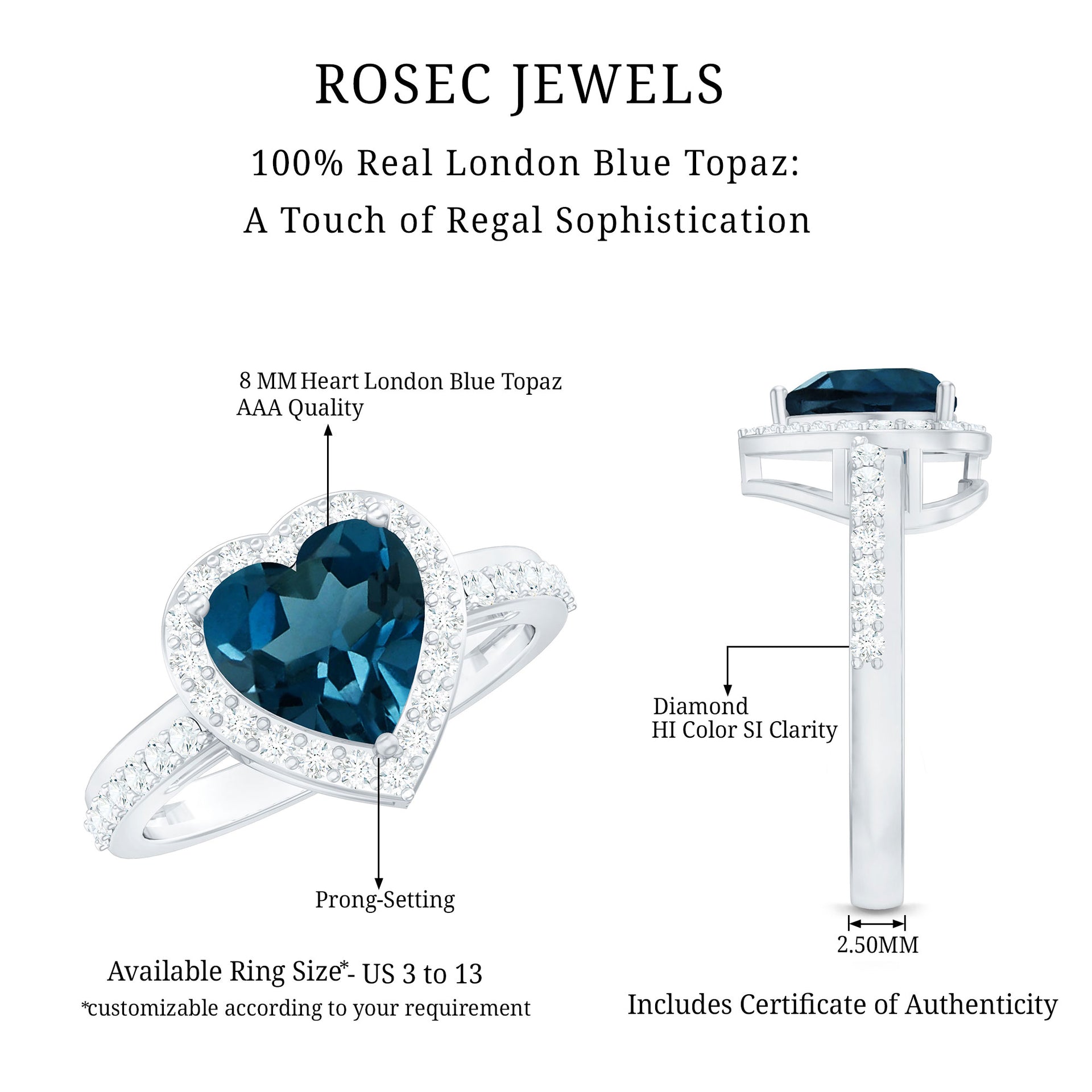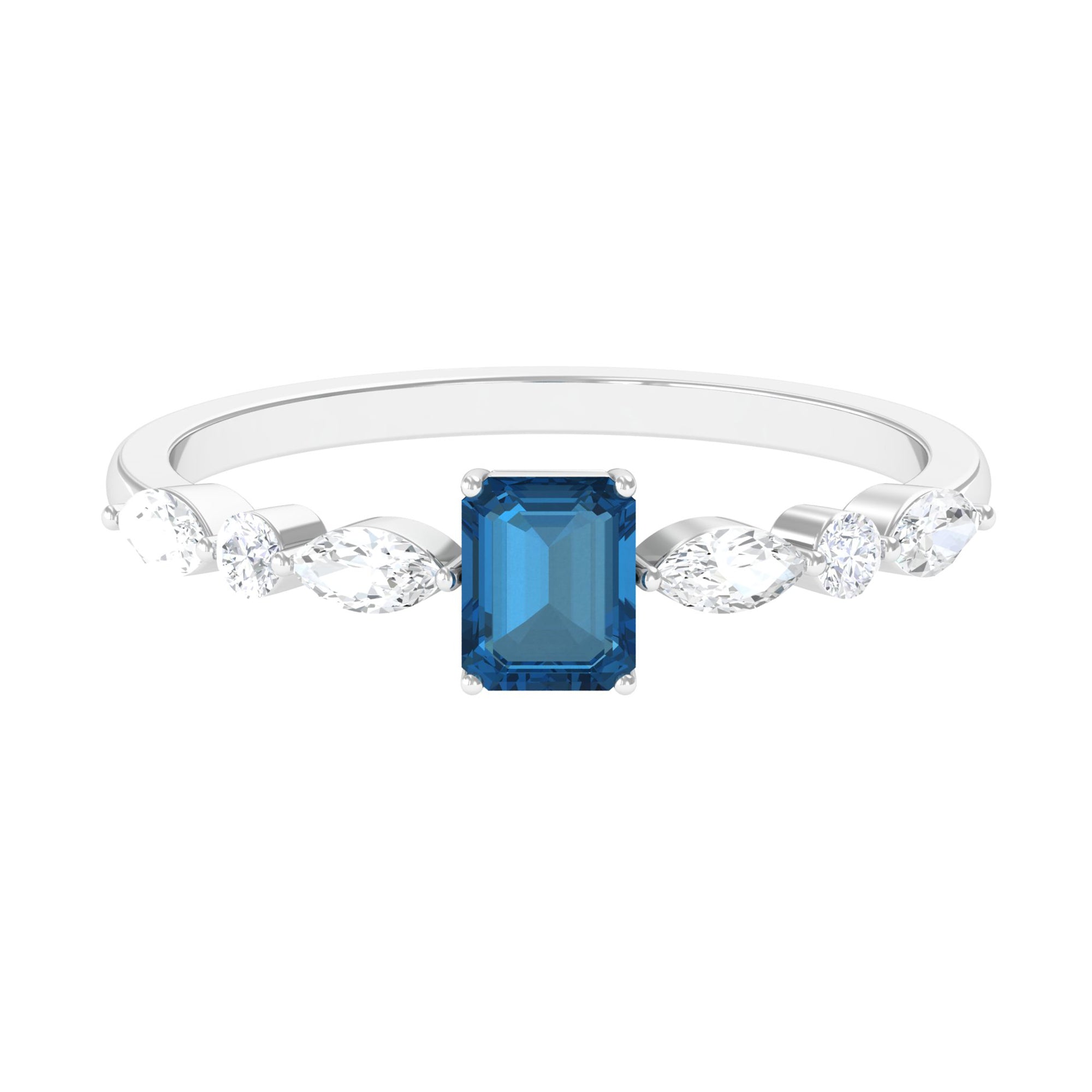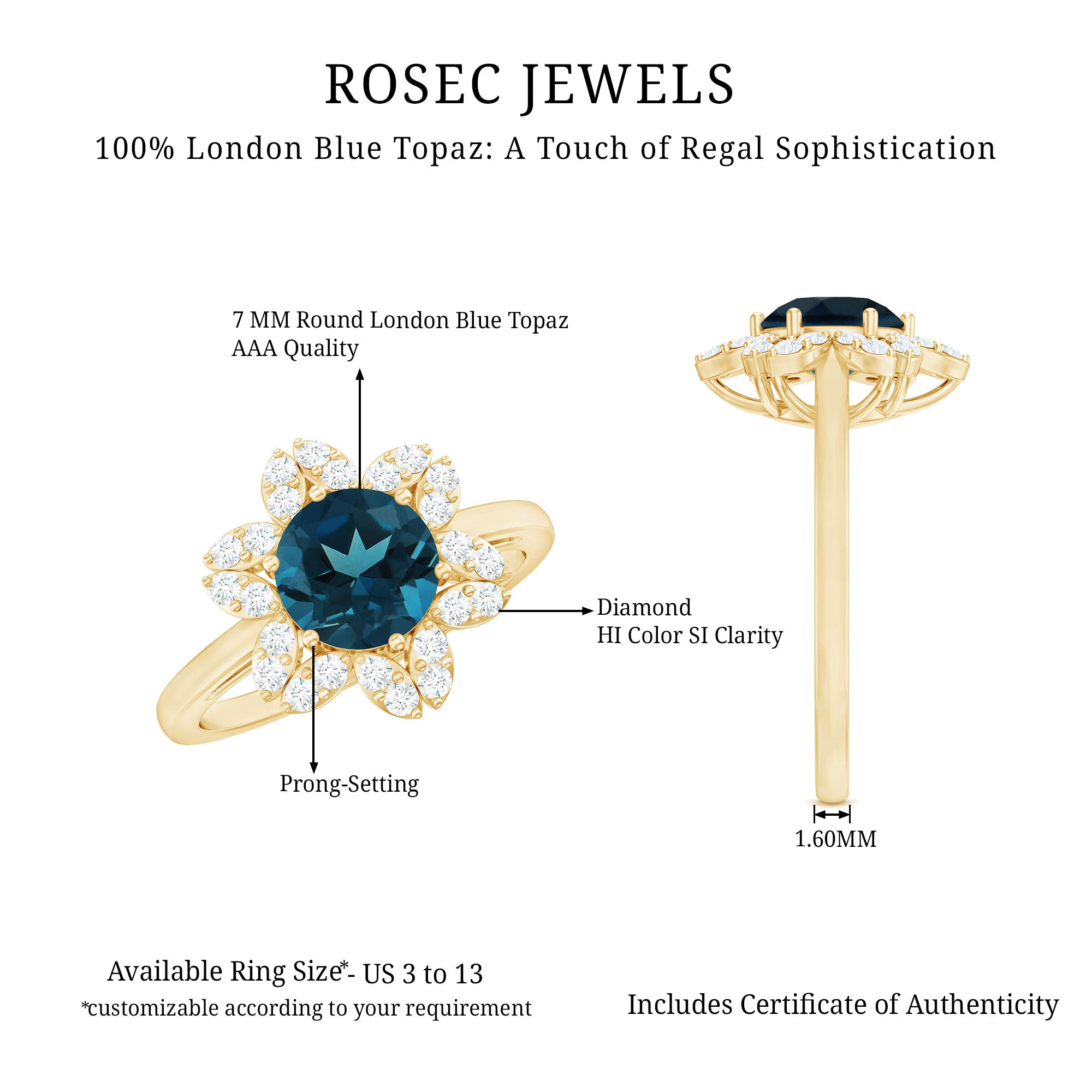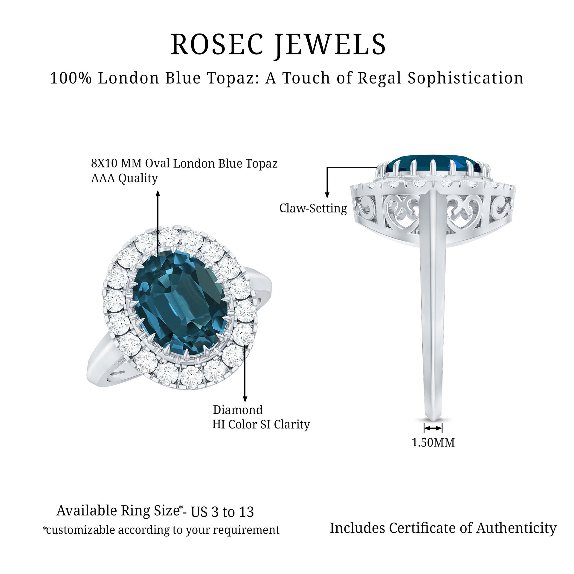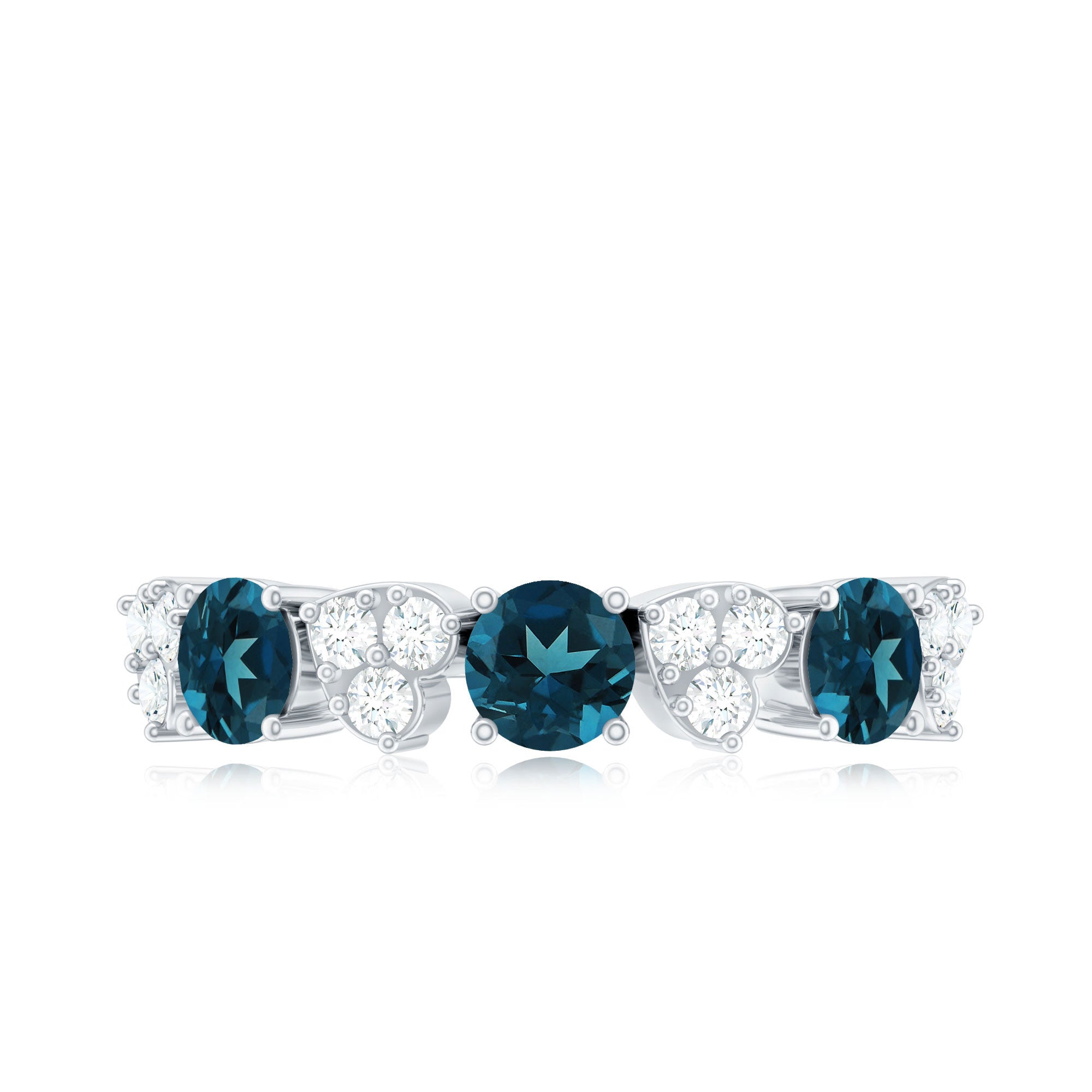 Popularized as the most flashy, flamboyant, and bold ring out there, this Cocktail Ring is adorned with an enormous Center-Stone of London Blue Topaz. It is further accentuated with eye-striking patterns of diamond/moissanite around or as side stones. A London Blue Topaz Cocktail Ring is meant to make a statement with floral and other attention-catching motifs.