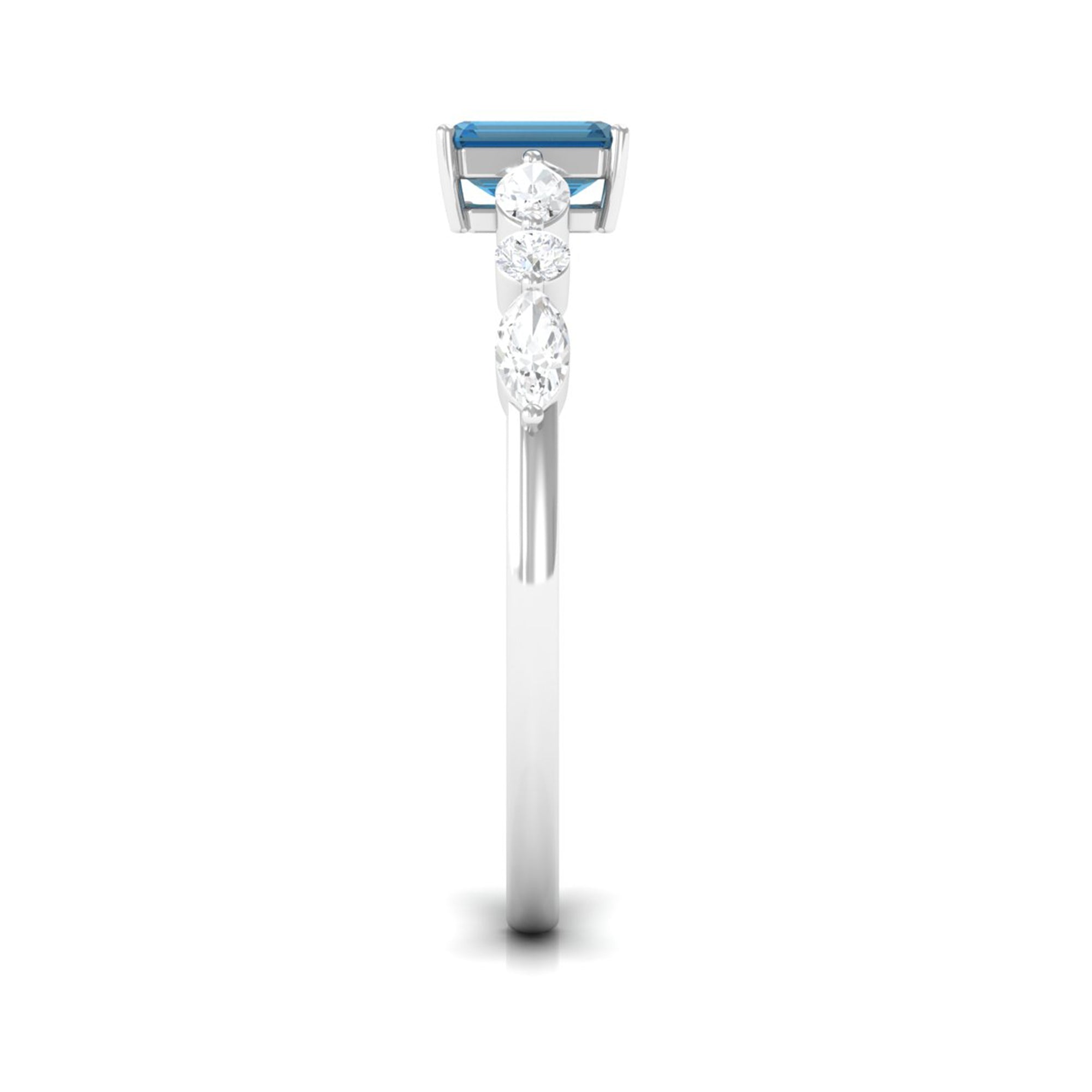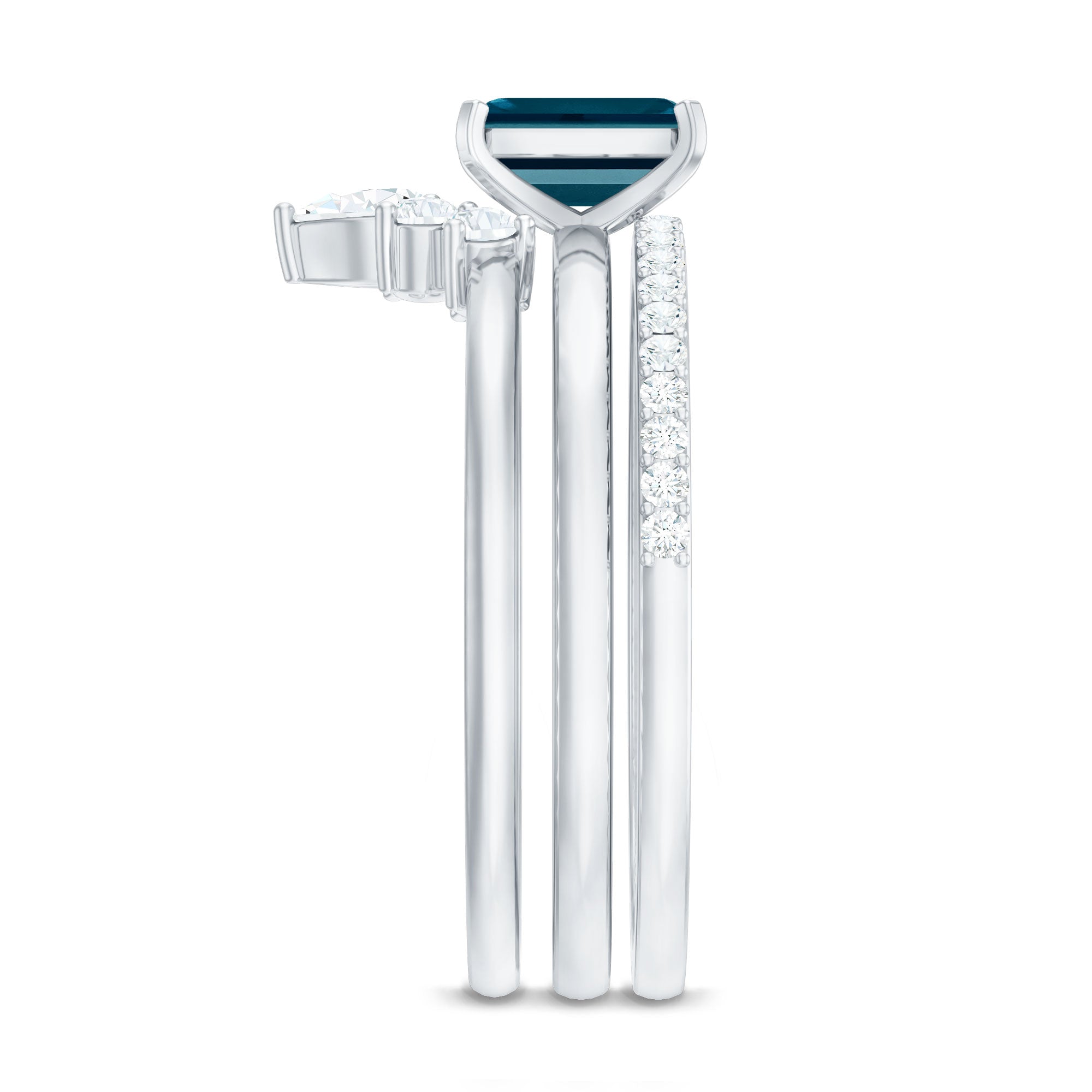 This Solitaire Ring is solely beautified by the Single Centerpiece of London Blue Topaz that takes away all the attention. Speaking of the Solitaire more precisely, the size of London Blue Topaz here is at least 6 MM. That lends it a classic yet eye-catching appeal, making it one of the most conventional styles of London Blue Topaz Engagement Rings. If you like to stick to basics, go for a Round Cut London Blue Topaz Ring. While if you’re more into unconventional trends, a Marquise, Pear, and Princess Cut London Blue Topaz Ring might work best. And for a nice old-school touch, nothing better than a Blue Topaz Solitaire Ring fashioned in Asscher, Emerald, or Cushion Cut.