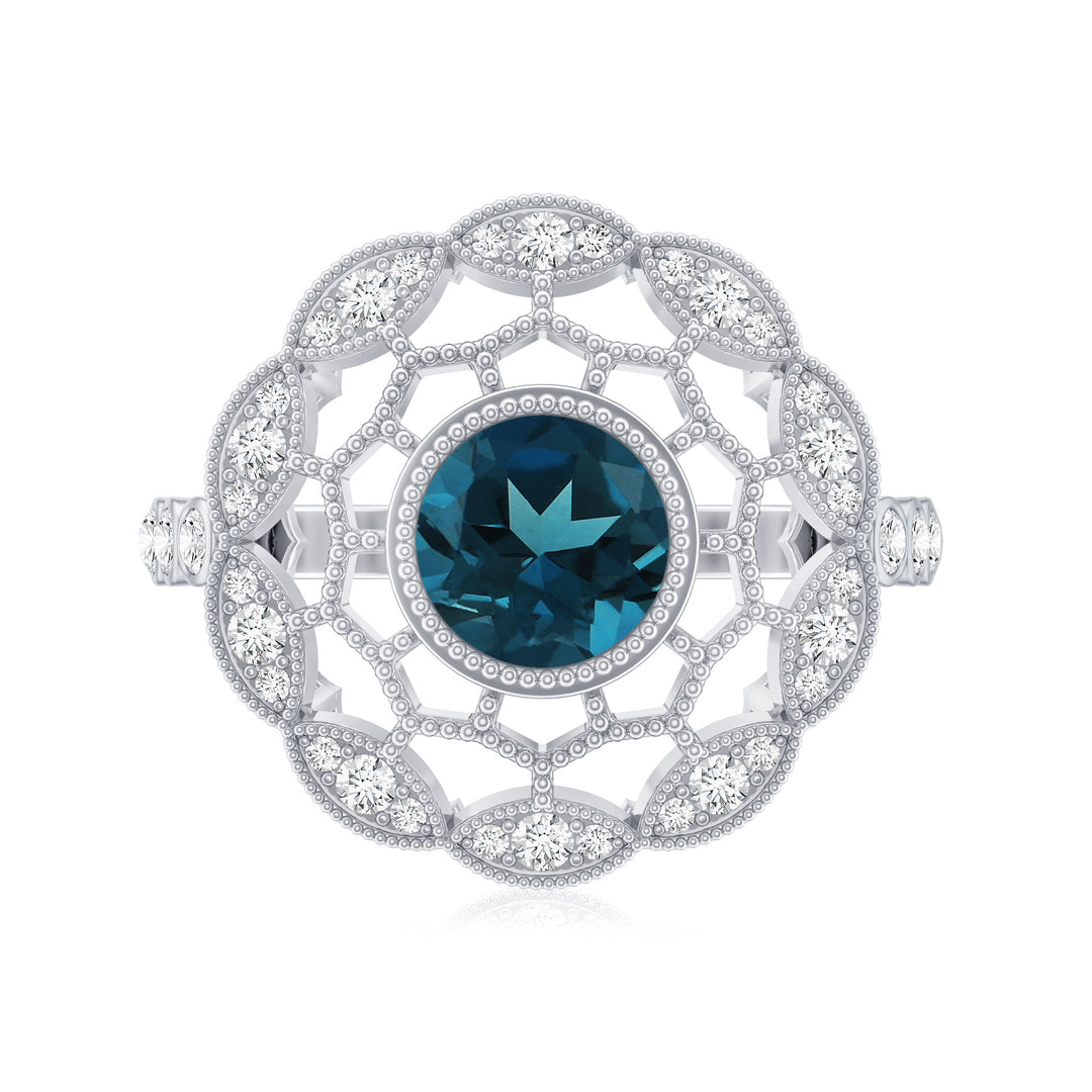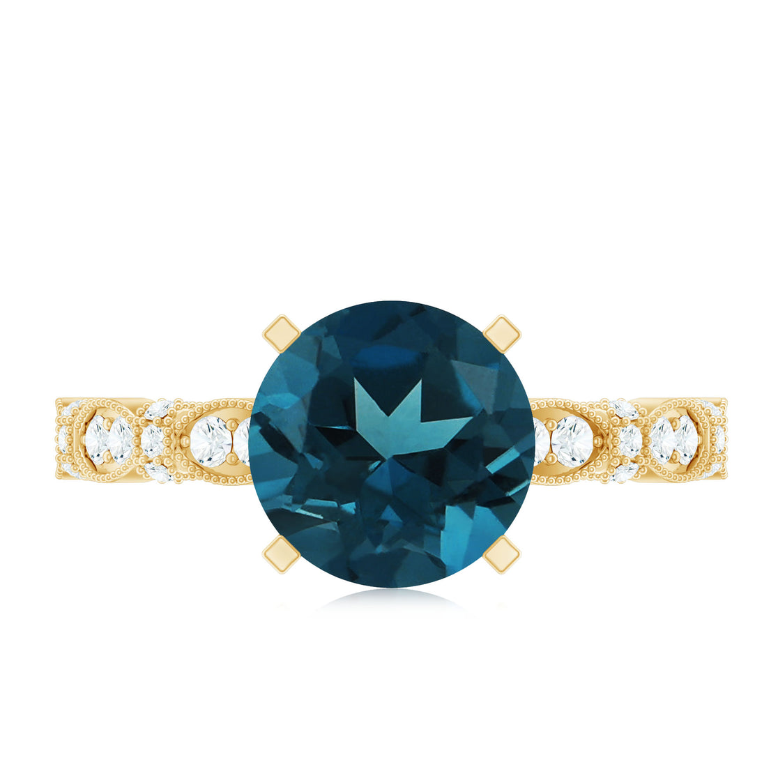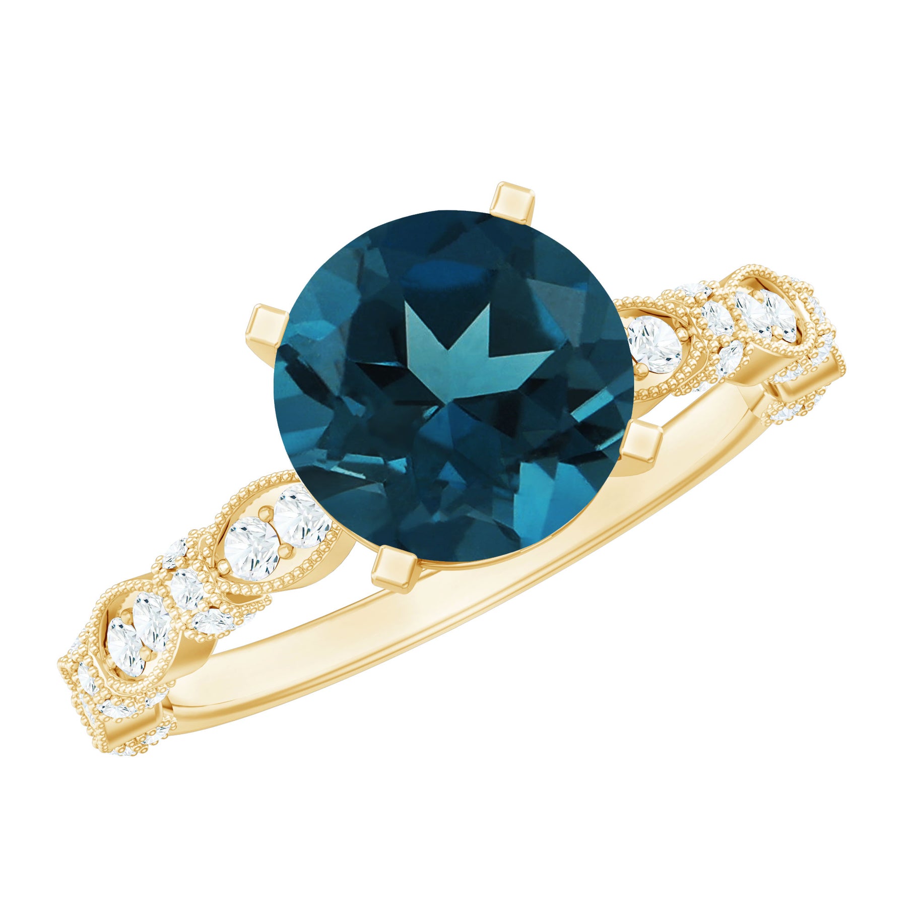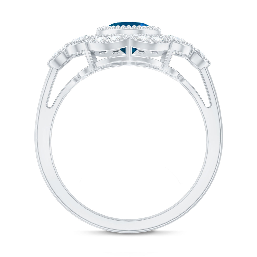 Turning back time, a Vintage London Blue Topaz Ring boasts iconic designs from Edwardian, Victorian, and Art-Deco Eras. It is ornately crafted with Milgrain, filigree, and other retro engravings along with abstract patterns that ooze an old-world vibe. A Vintage-inspired London Blue Topaz Engagement Ring is preferred by those that like an emblem of love that connects with a historic story.