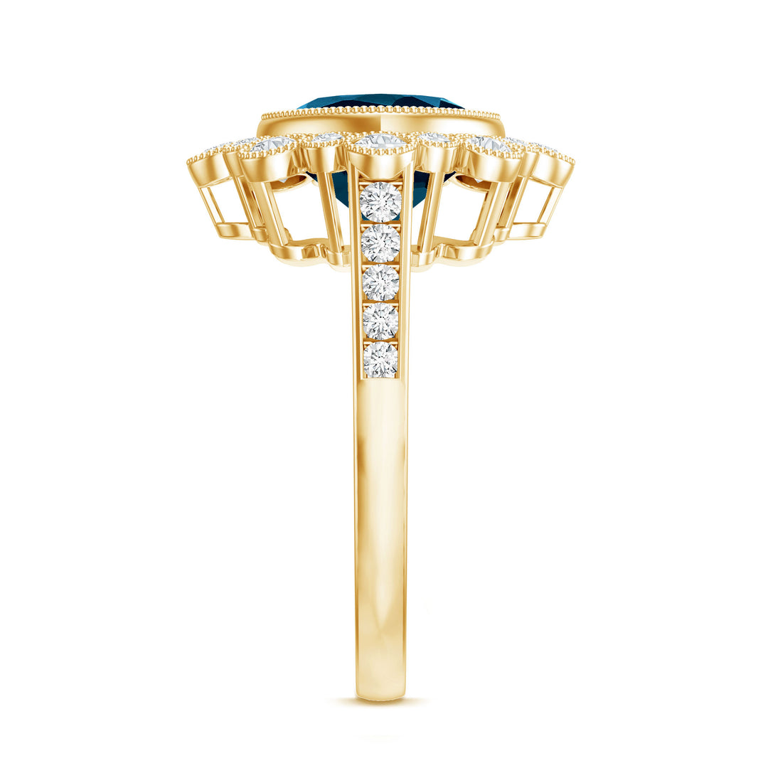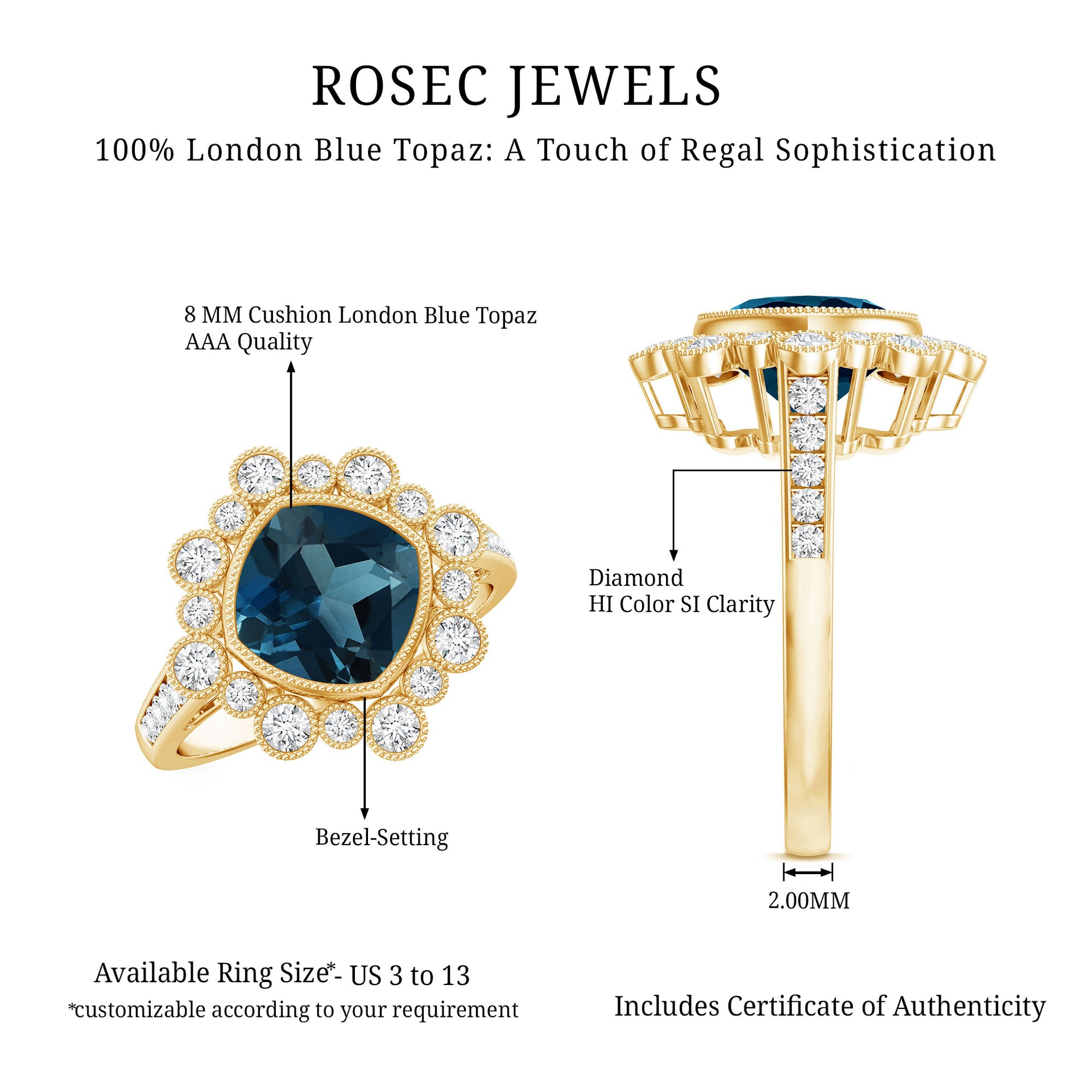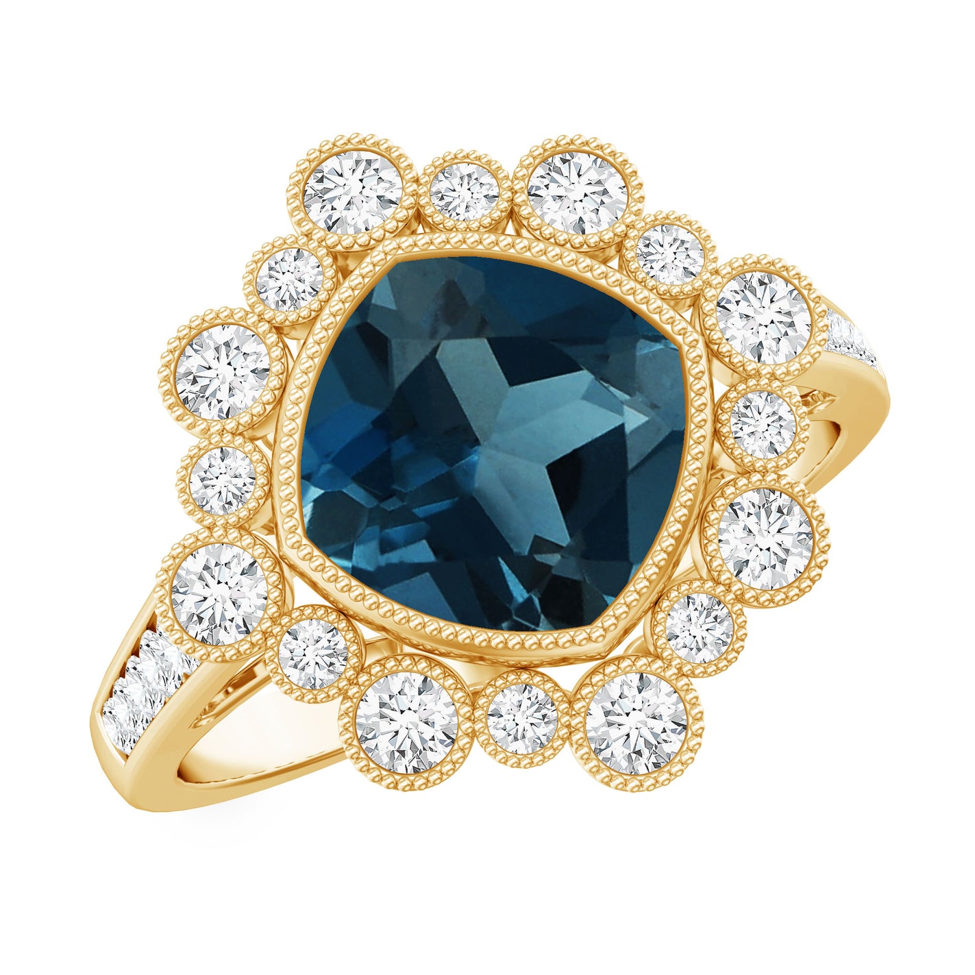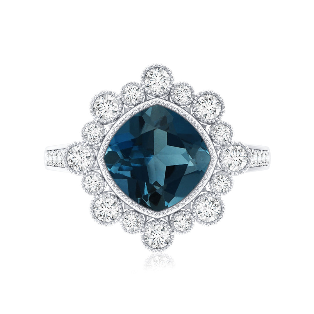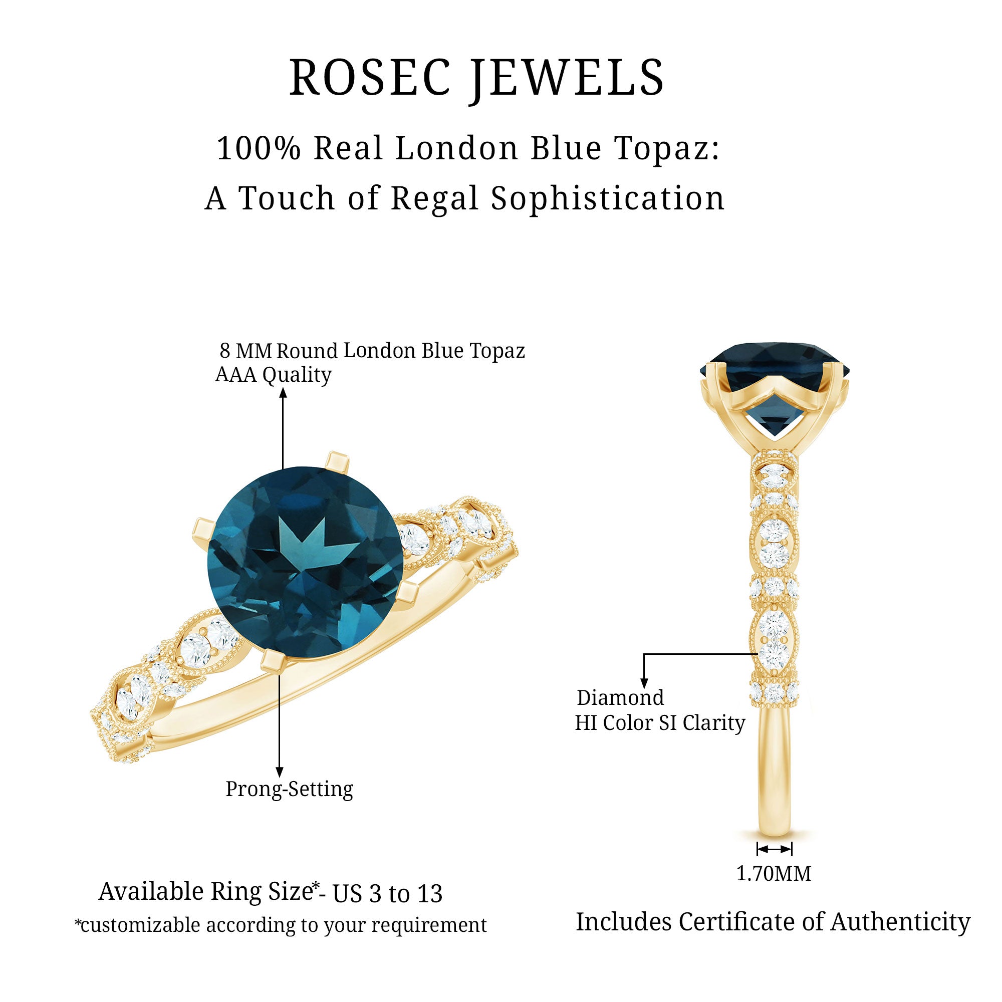 Turning back time, a Vintage London Blue Topaz Ring boasts iconic designs from Edwardian, Victorian, and Art-Deco Eras. It is ornately crafted with Milgrain, filigree, and other retro engravings along with abstract patterns that ooze an old-world vibe. A Vintage-inspired London Blue Topaz Engagement Ring is preferred by those that like an emblem of love that connects with a historic story.