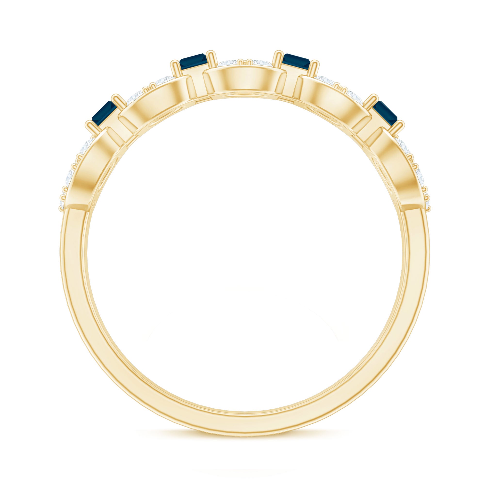 Just like the name suggests, this style is encrusted with uniformly-sized London Blue Topaz all over the band. It is meant for the ones who can’t get enough of the royal pop of Topaz. Typically, you’ll find a Round or Oval London Blue Topaz Ring fashioned in this style. But for those who like a little playful touch, fancier cuts like princess, marquise, and pear have also surged in popularity. The meaning that this style carries is just as beautiful. It commemorates the kind of love that is meant to last a lifetime.