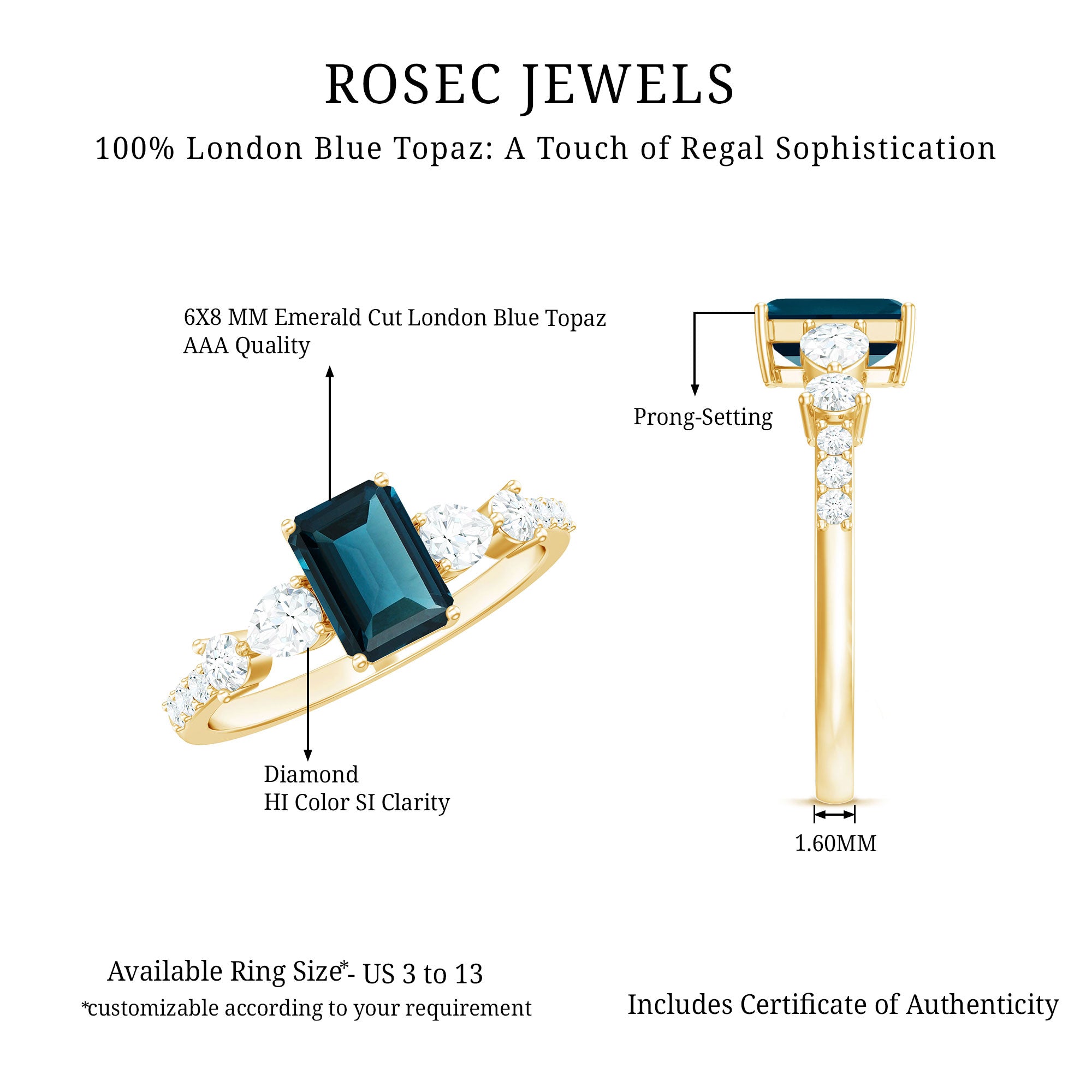 London blue topaz rings are loved for their rich, inky-blue color and elegant glow—making them a standout choice for December birthstone rings and everyday statement jewelry. This collection is built for shopping: use filters to narrow by style (solitaire, halo, vintage), gemstone shape (oval, princess, emerald), and metal to find the perfect ring fast.