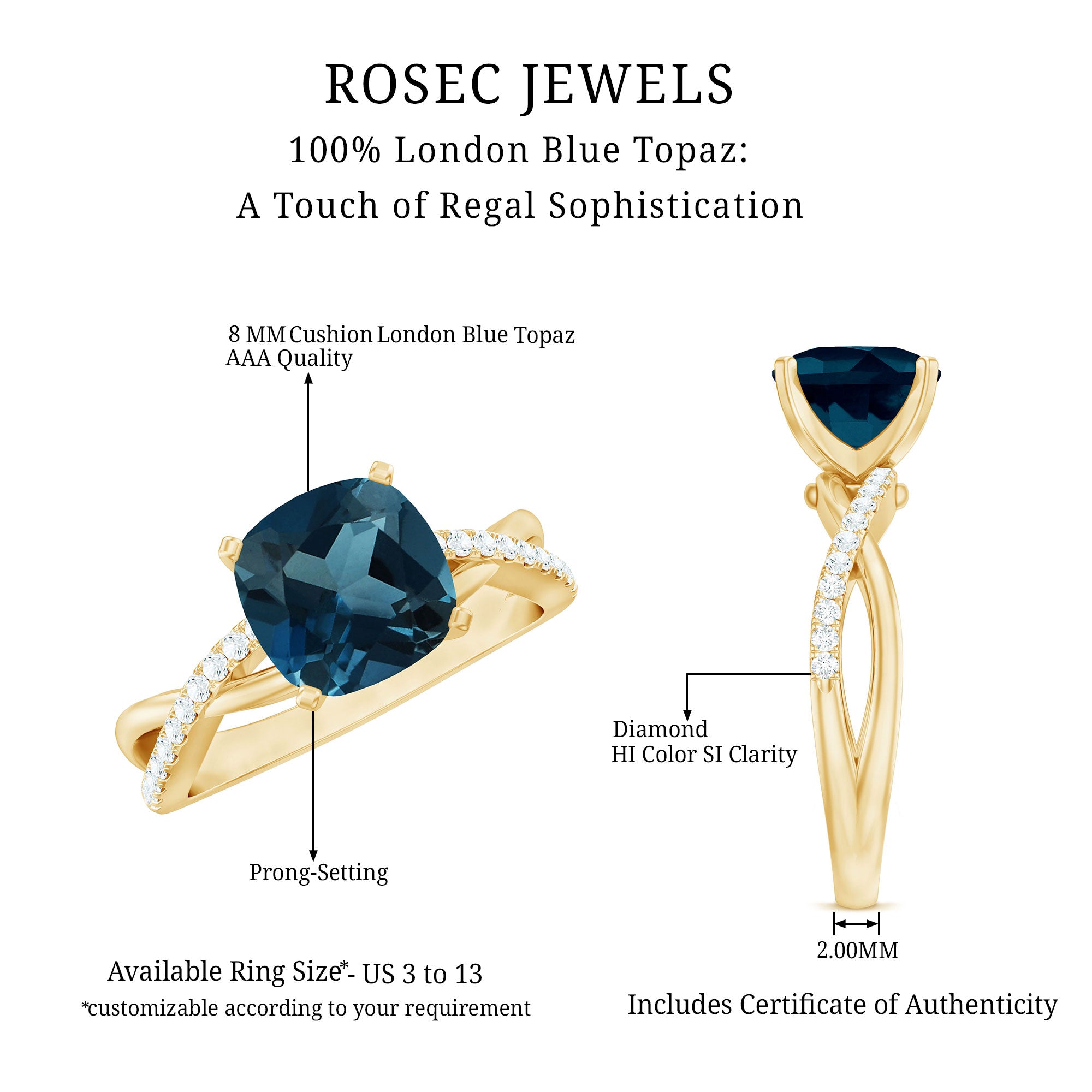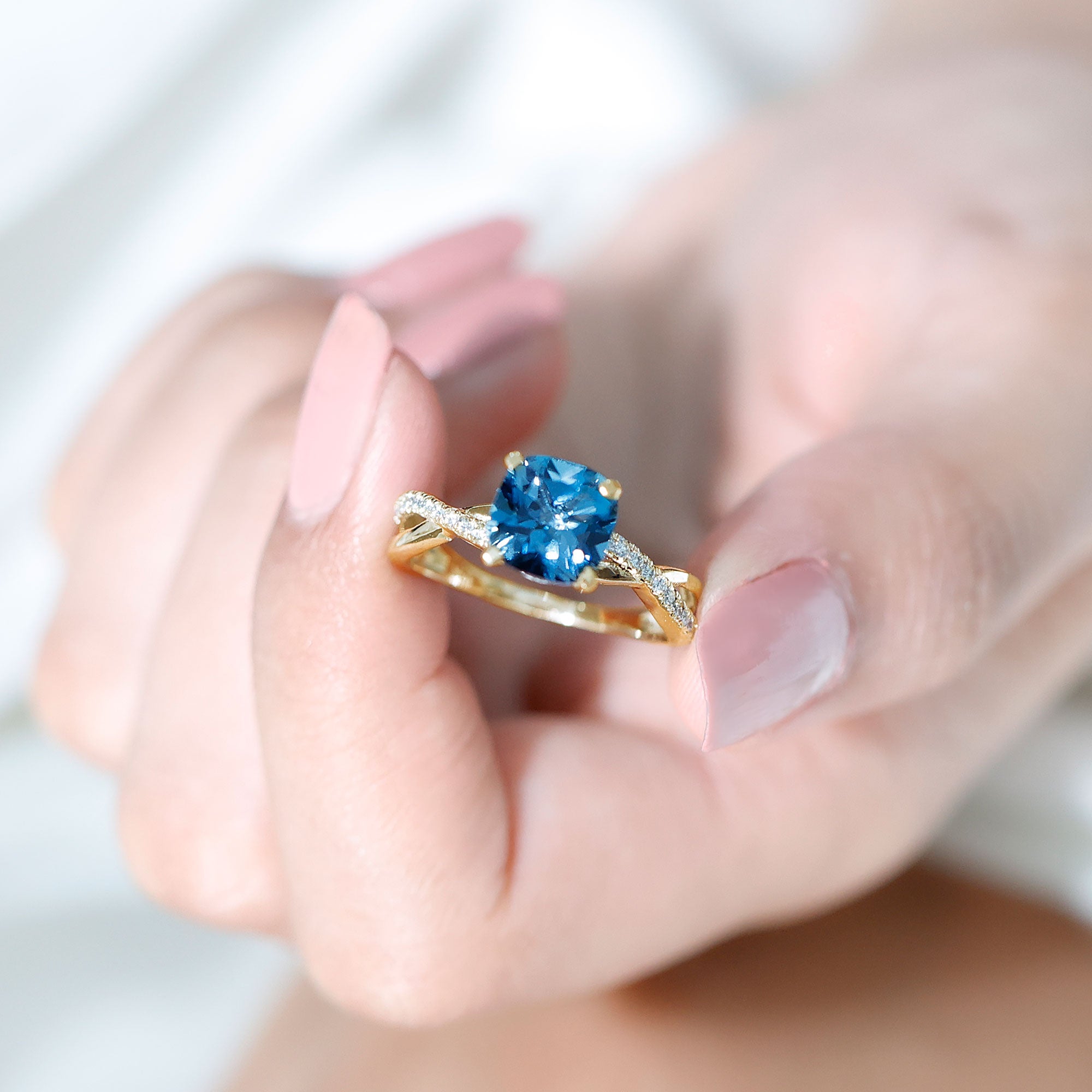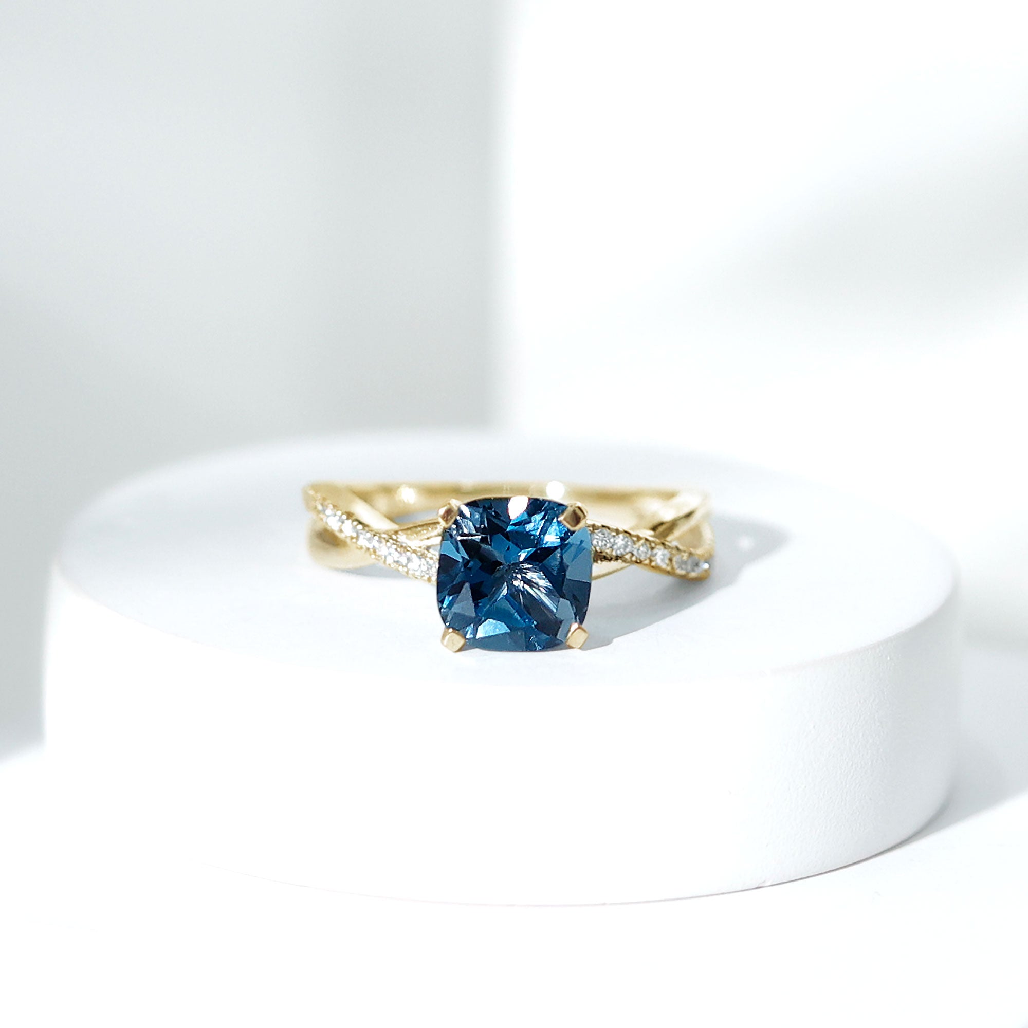 Turning back time, a Vintage London Blue Topaz Ring boasts iconic designs from Edwardian, Victorian, and Art-Deco Eras. It is ornately crafted with Milgrain, filigree, and other retro engravings along with abstract patterns that ooze an old-world vibe. A Vintage-inspired London Blue Topaz Engagement Ring is preferred by those that like an emblem of love that connects with a historic story.